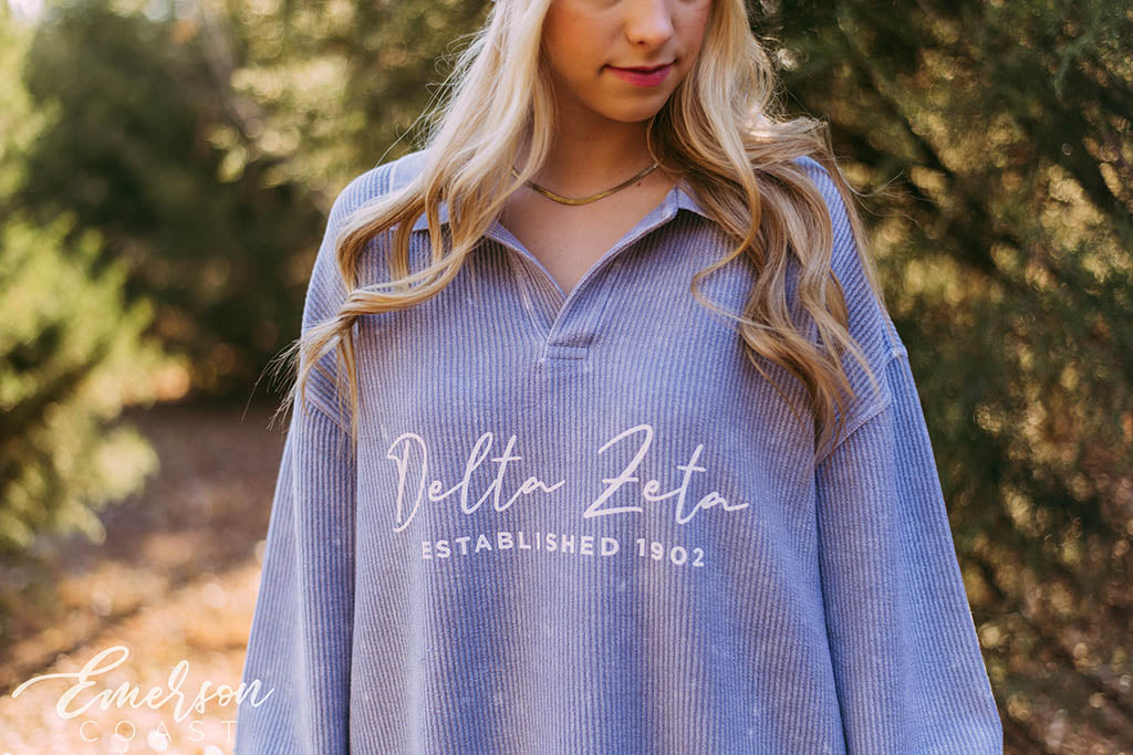 ZTA at Georgia Tech rocked custom teal slouchy tees for Recruitment, pairing them with white denim for a clean, polished look. The bold color choice made a statement while keeping things fun, fresh, and totally on brand.