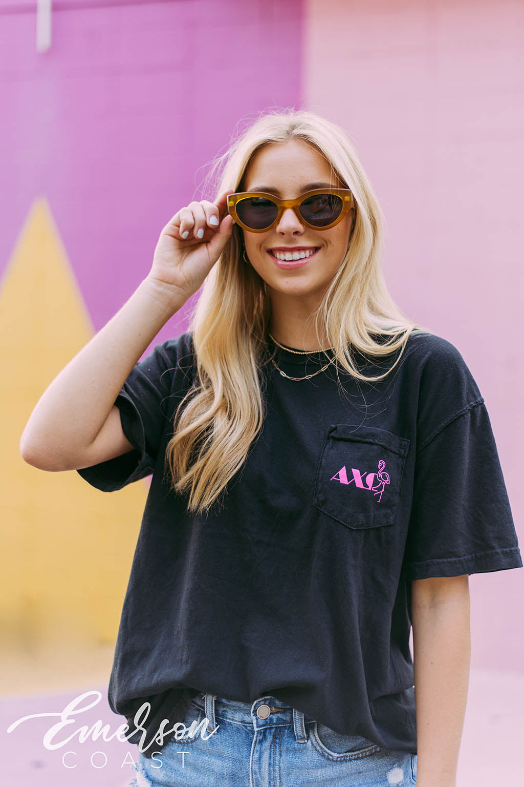 The pocket tee is perfect for any design and will be an instant chapter fav.