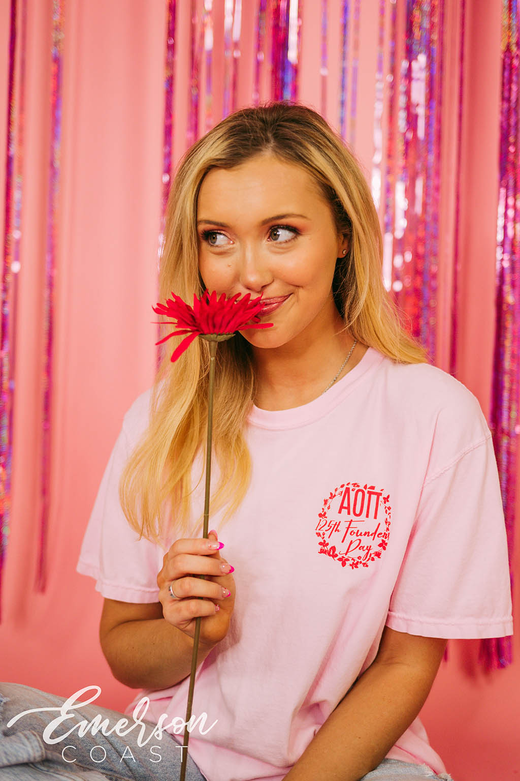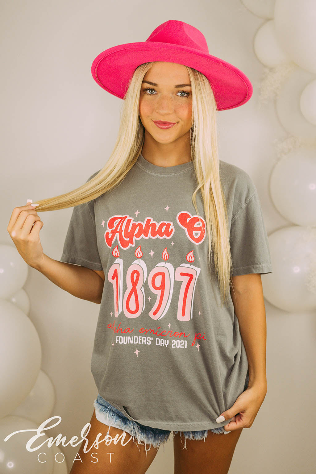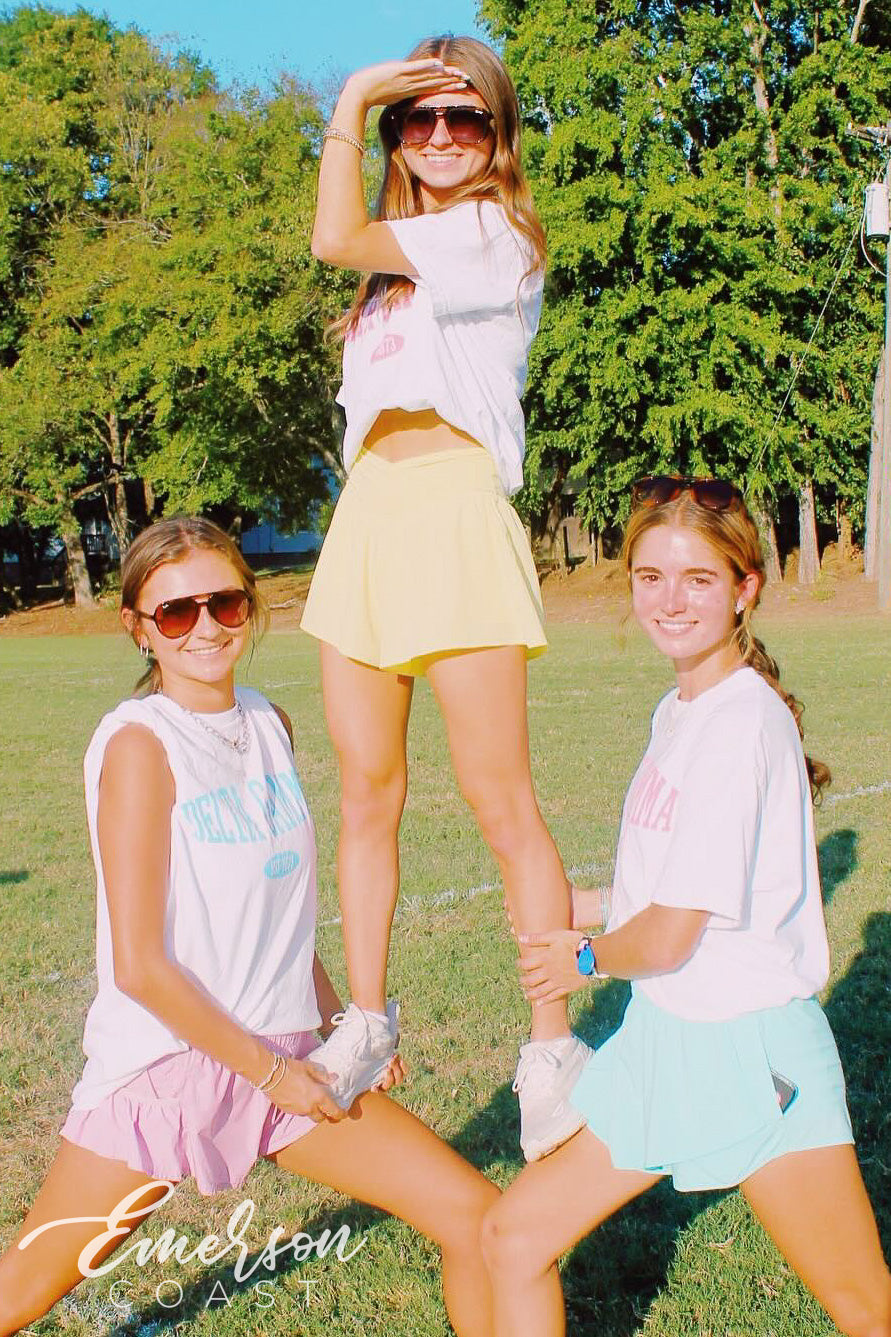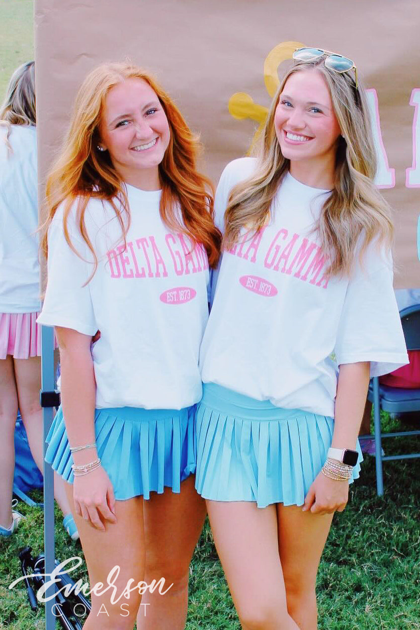 ZTA at Georgia Tech rocked custom teal slouchy tees for Recruitment, pairing them with white denim for a clean, polished look. The bold color choice made a statement while keeping things fun, fresh, and totally on brand.