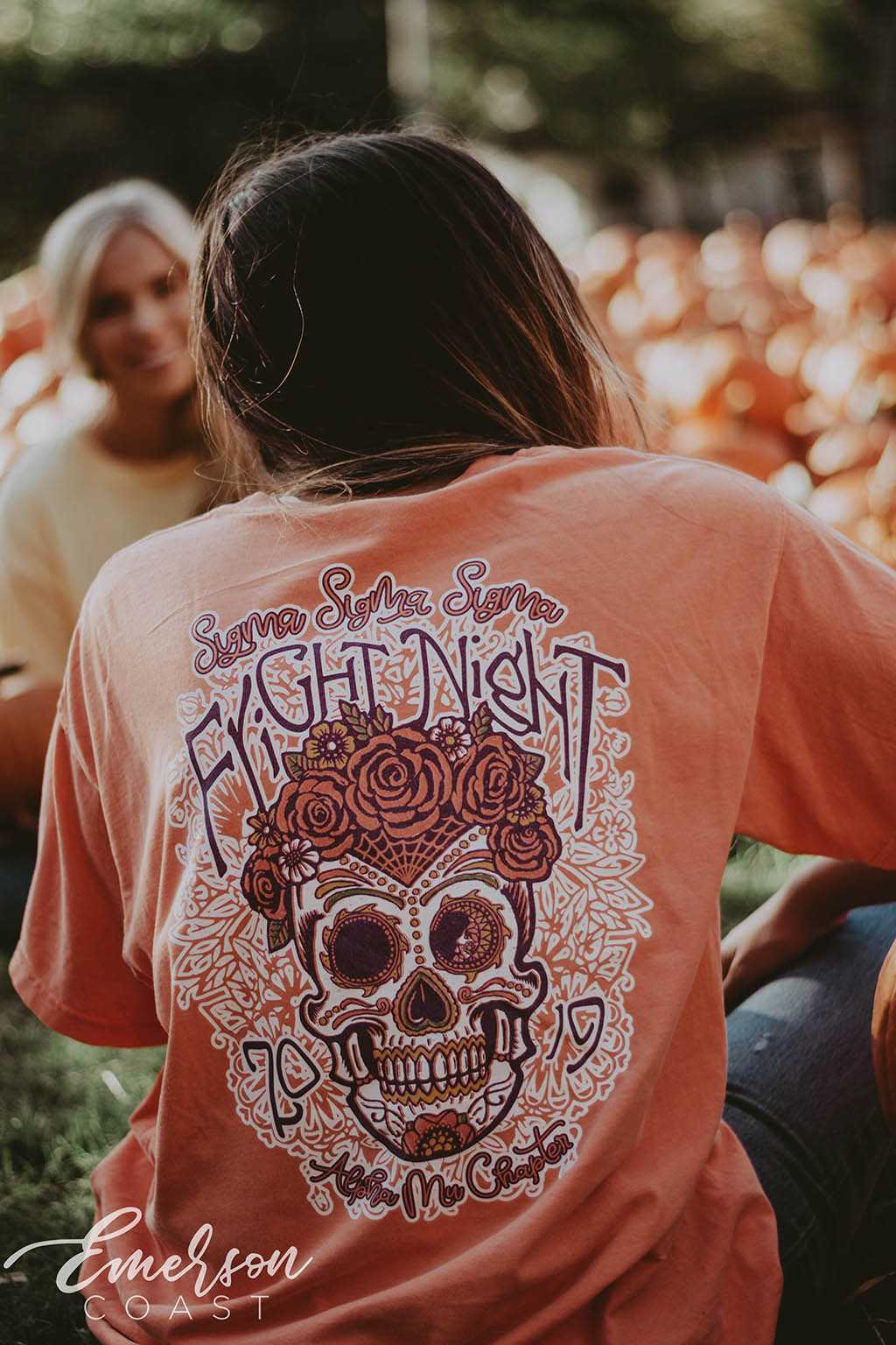 Tri Delta at Arkansas captured the magic of the Amalfi Coast for Bid Day with custom slouchy tees — white for members, cloud blue for new girls. Styled with flowy skirts and neck scarves, the whole vibe was straight out of a summer postcard.