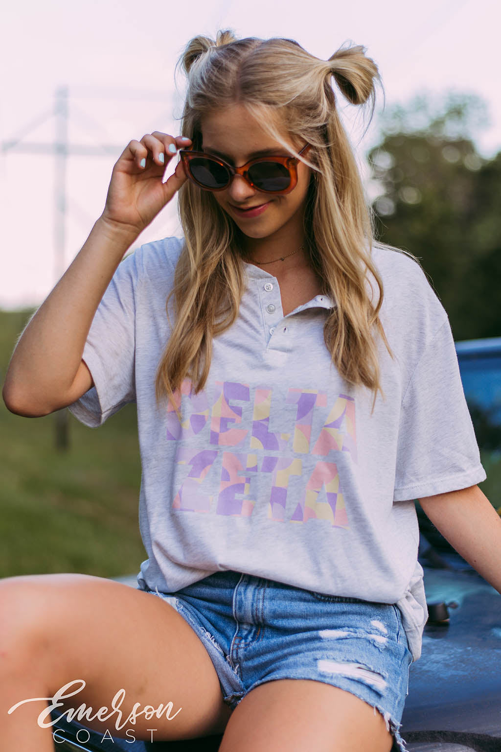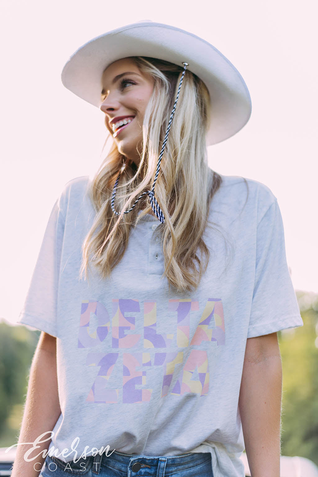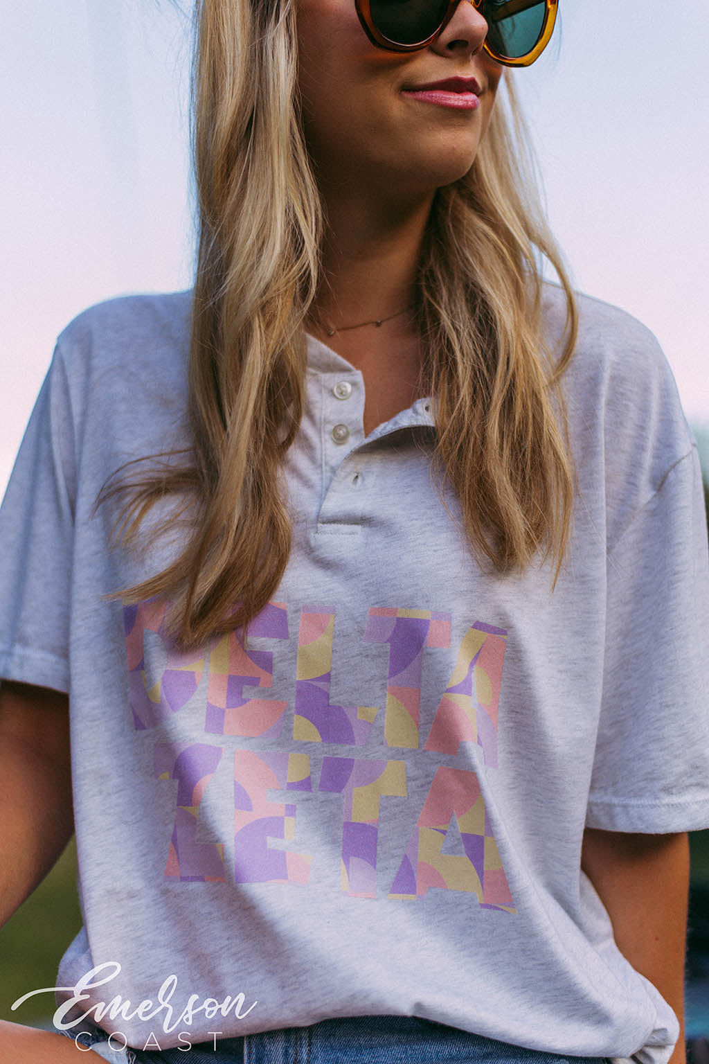 Make a pastel statement in the Delta Zeta PR Henley Tee!