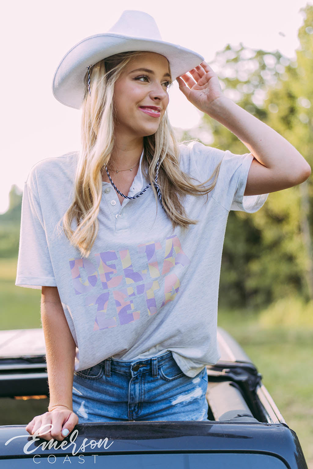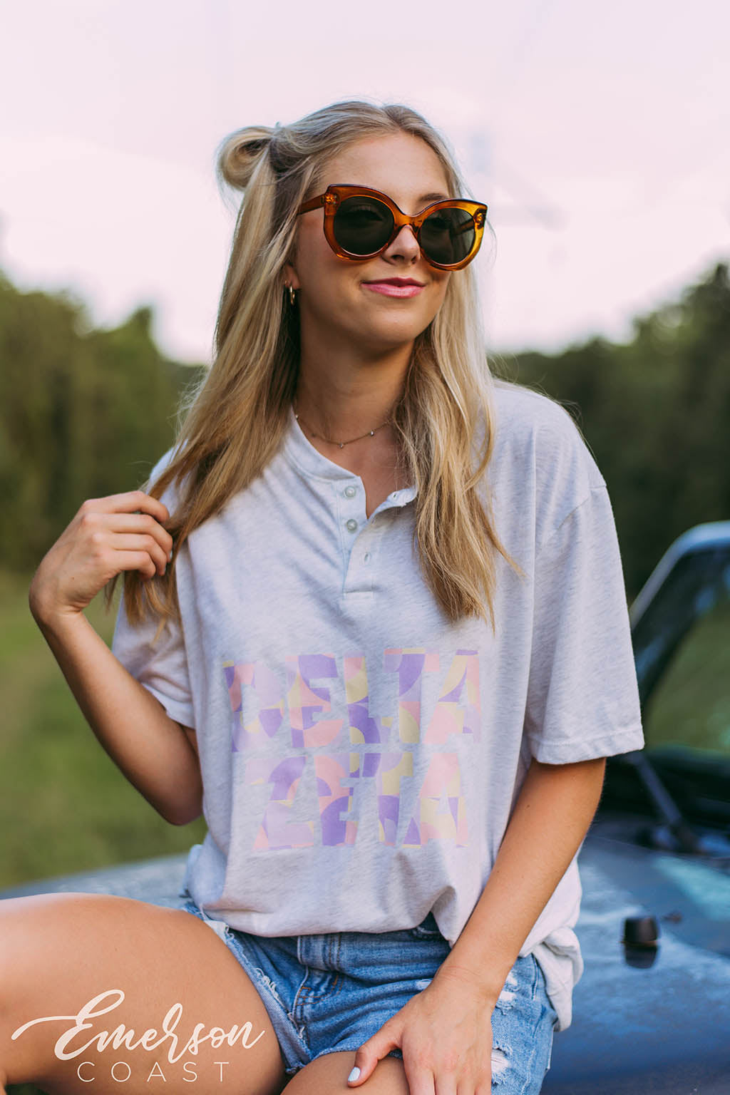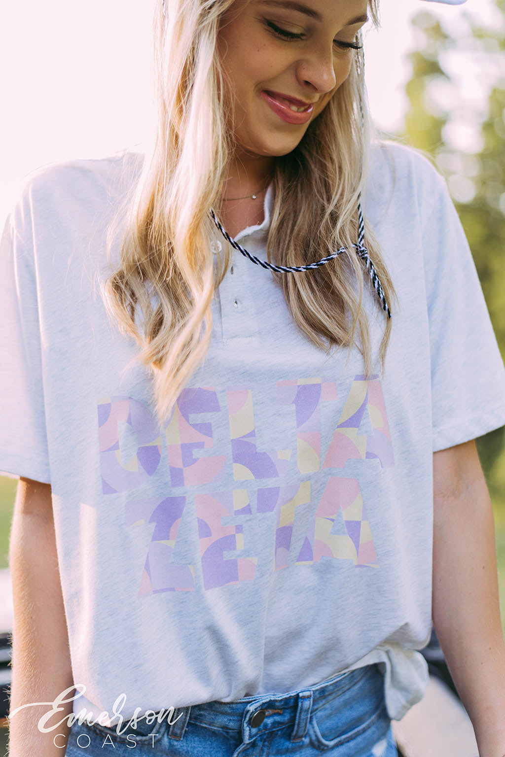 Make a pastel statement in the Delta Zeta PR Henley Tee!