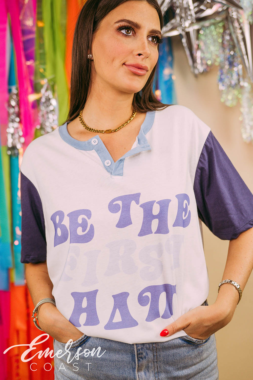 Delta Gamma at Texas A&M kept things timeless with custom white letter jerseys featuring bold Greek letters, paired with crisp white tanks for Bid Day. Clean, elevated, and full of spirit — their new members definitely felt the love in style!