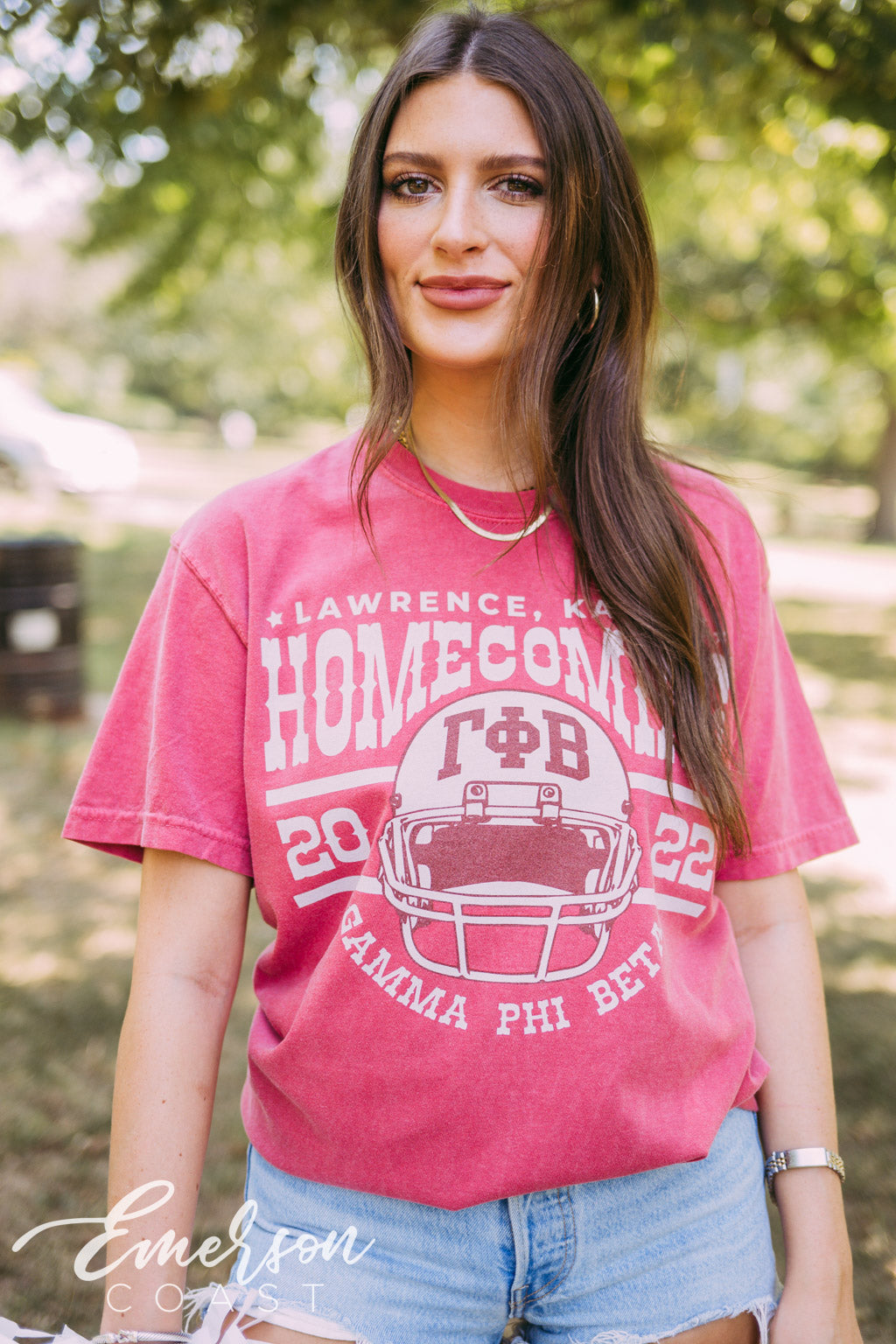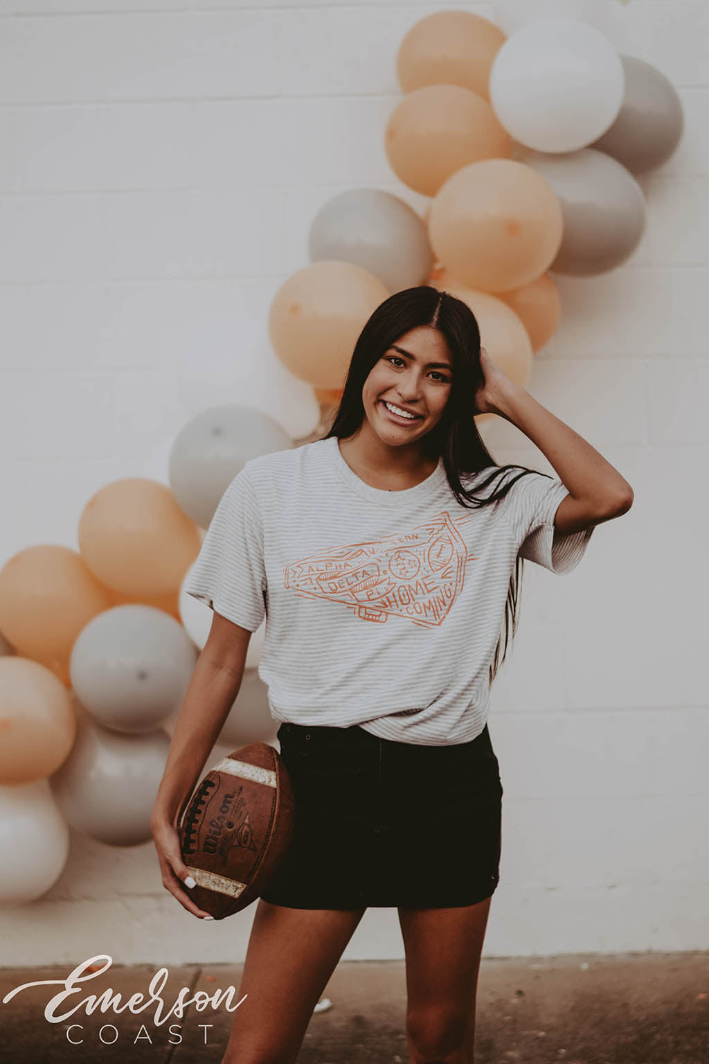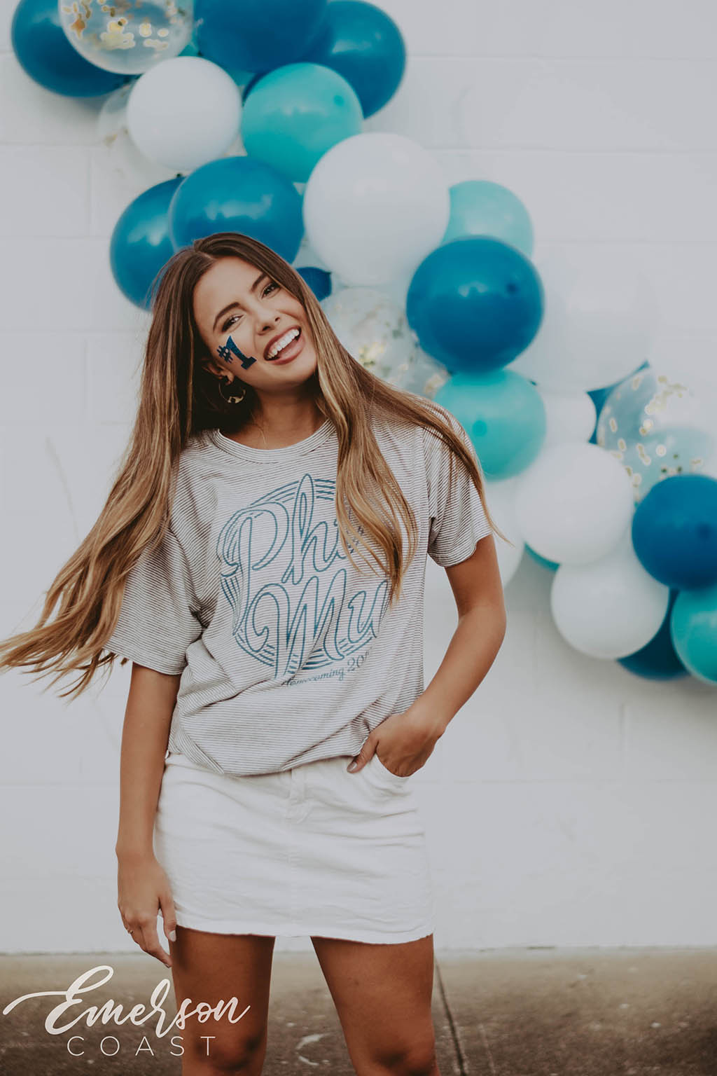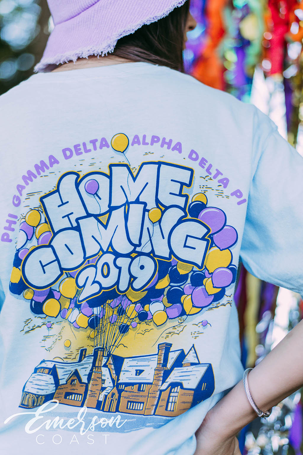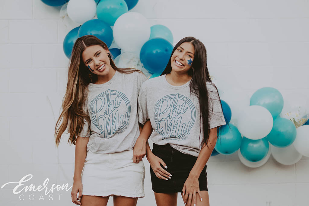Gamma Phi at Oklahoma State floated into Bid Day with the dreamiest hot air balloon theme and the cutest pink colorblock ringer tees! Featuring soft pastel Greek letters, these tops added a fun pop of retro charm to an already magical day.