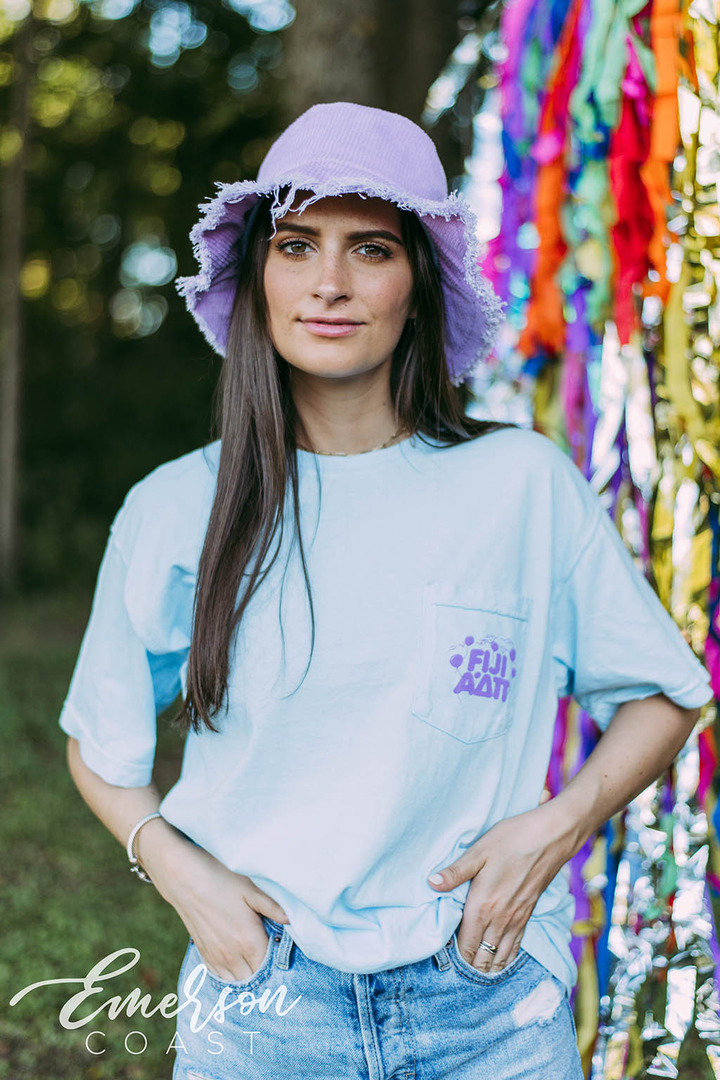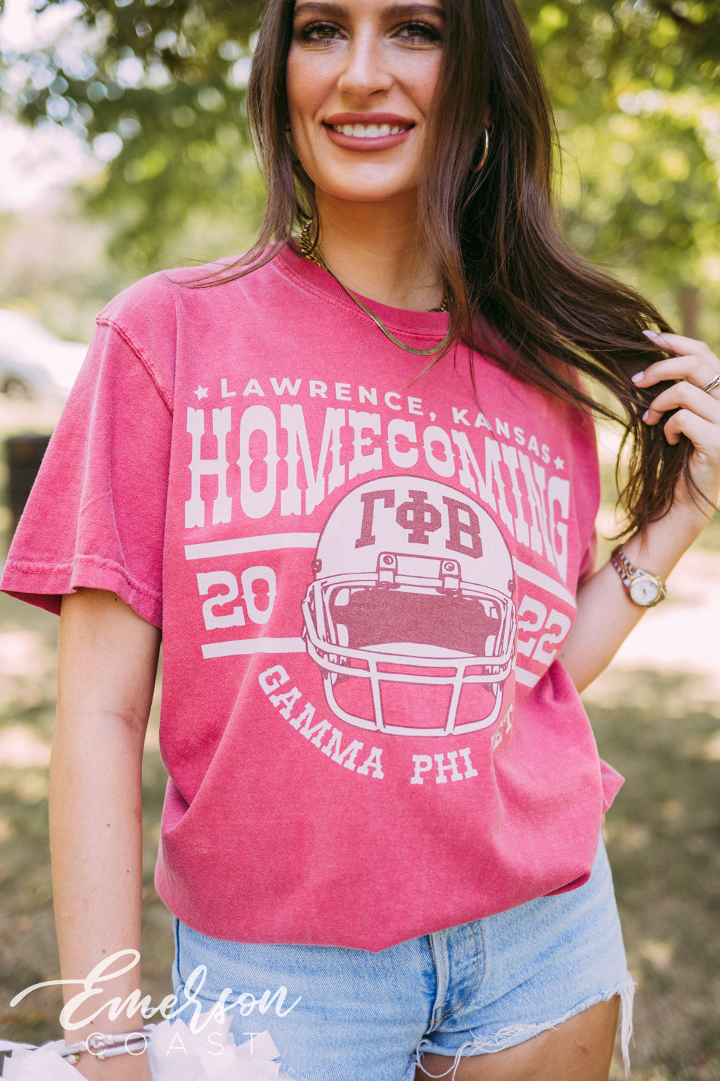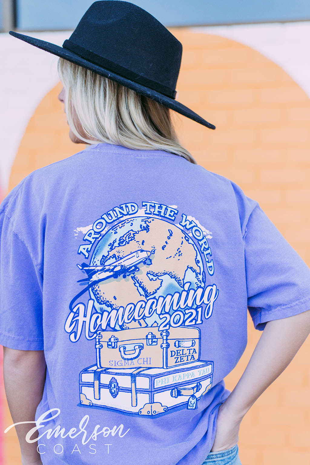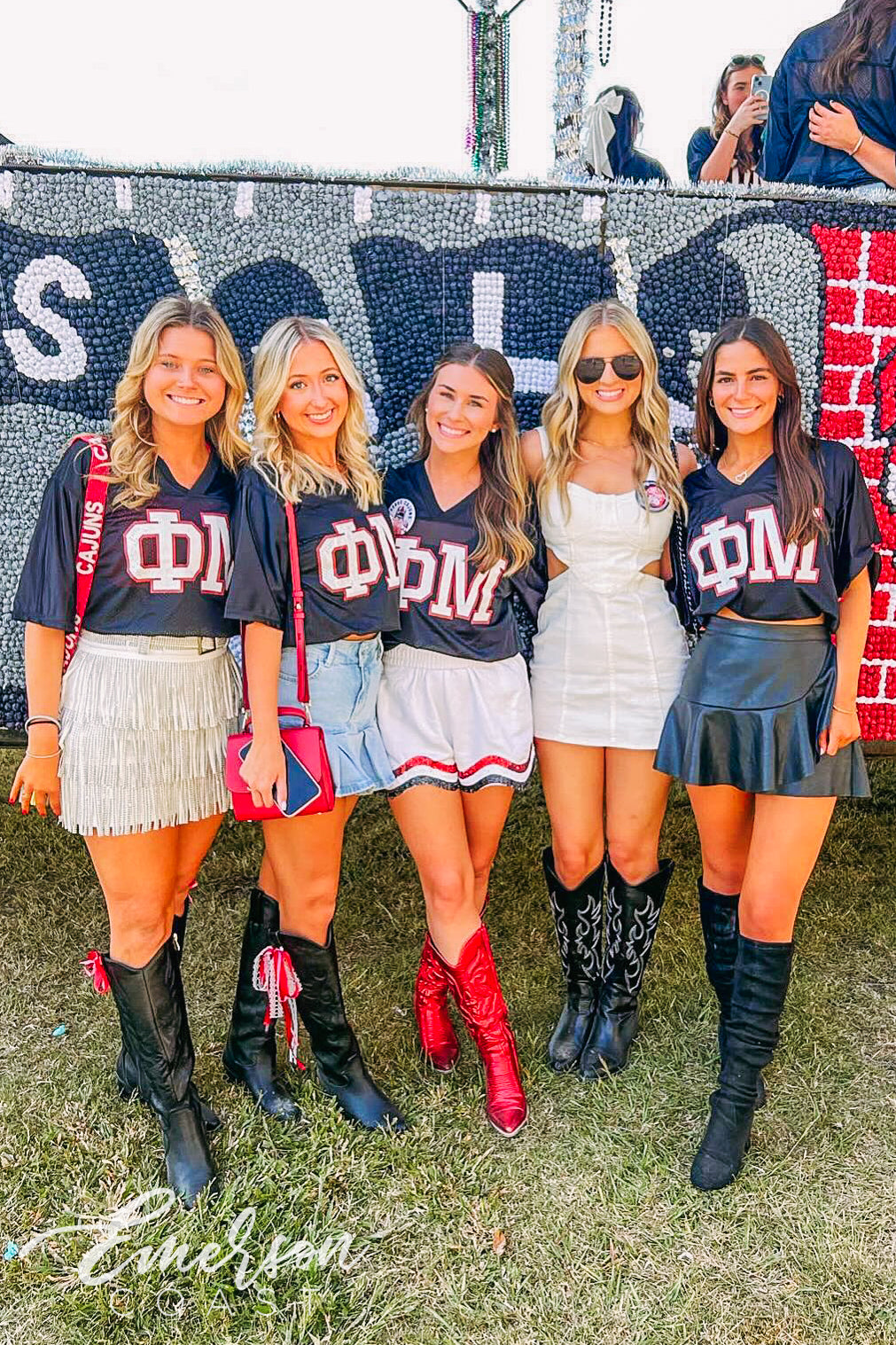 Gamma Phi at Oklahoma State floated into Bid Day with the dreamiest hot air balloon theme and the cutest pink colorblock ringer tees! Featuring soft pastel Greek letters, these tops added a fun pop of retro charm to an already magical day.