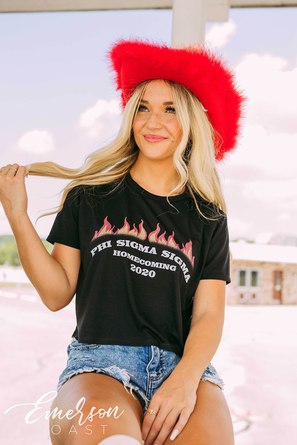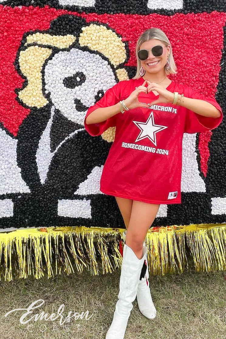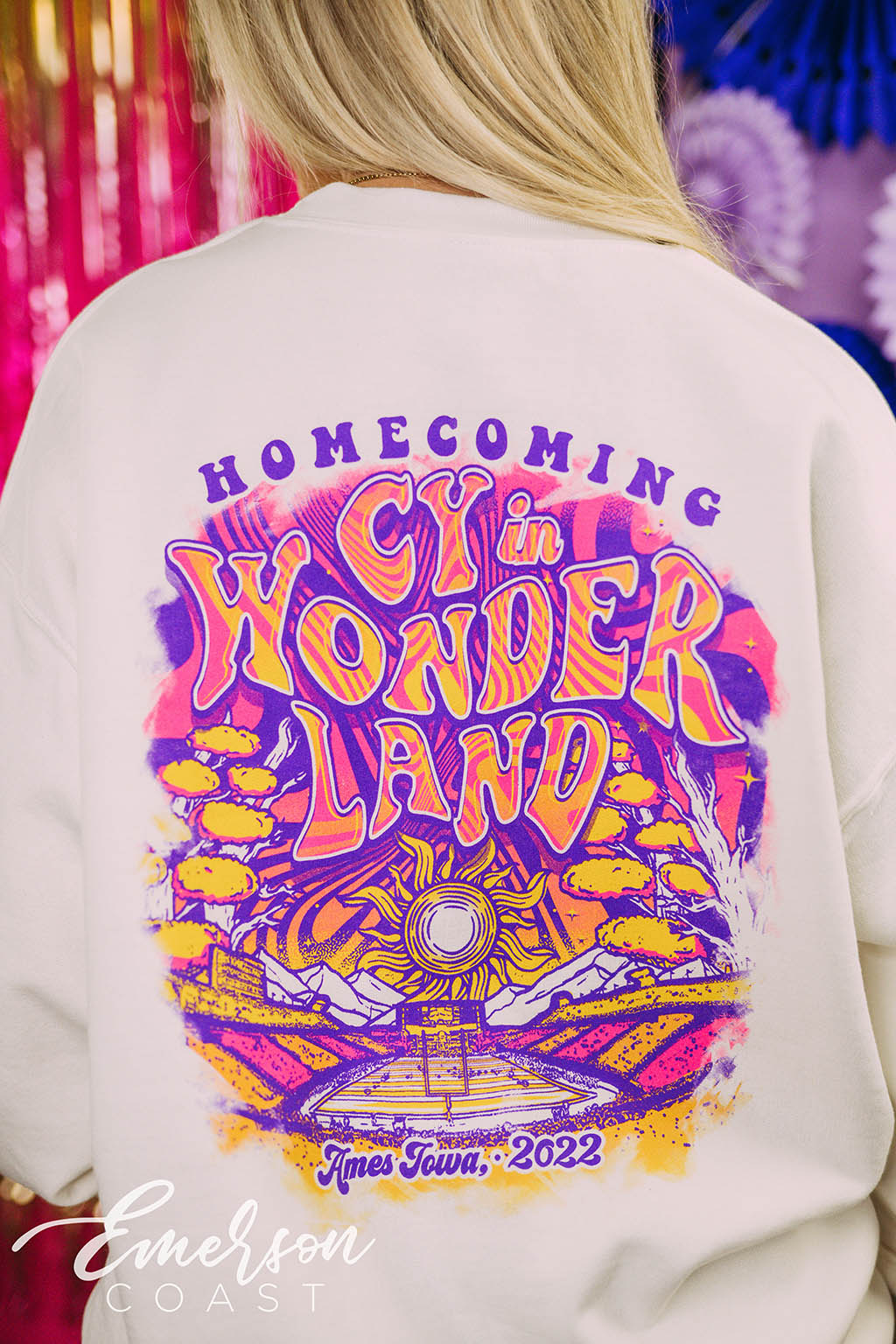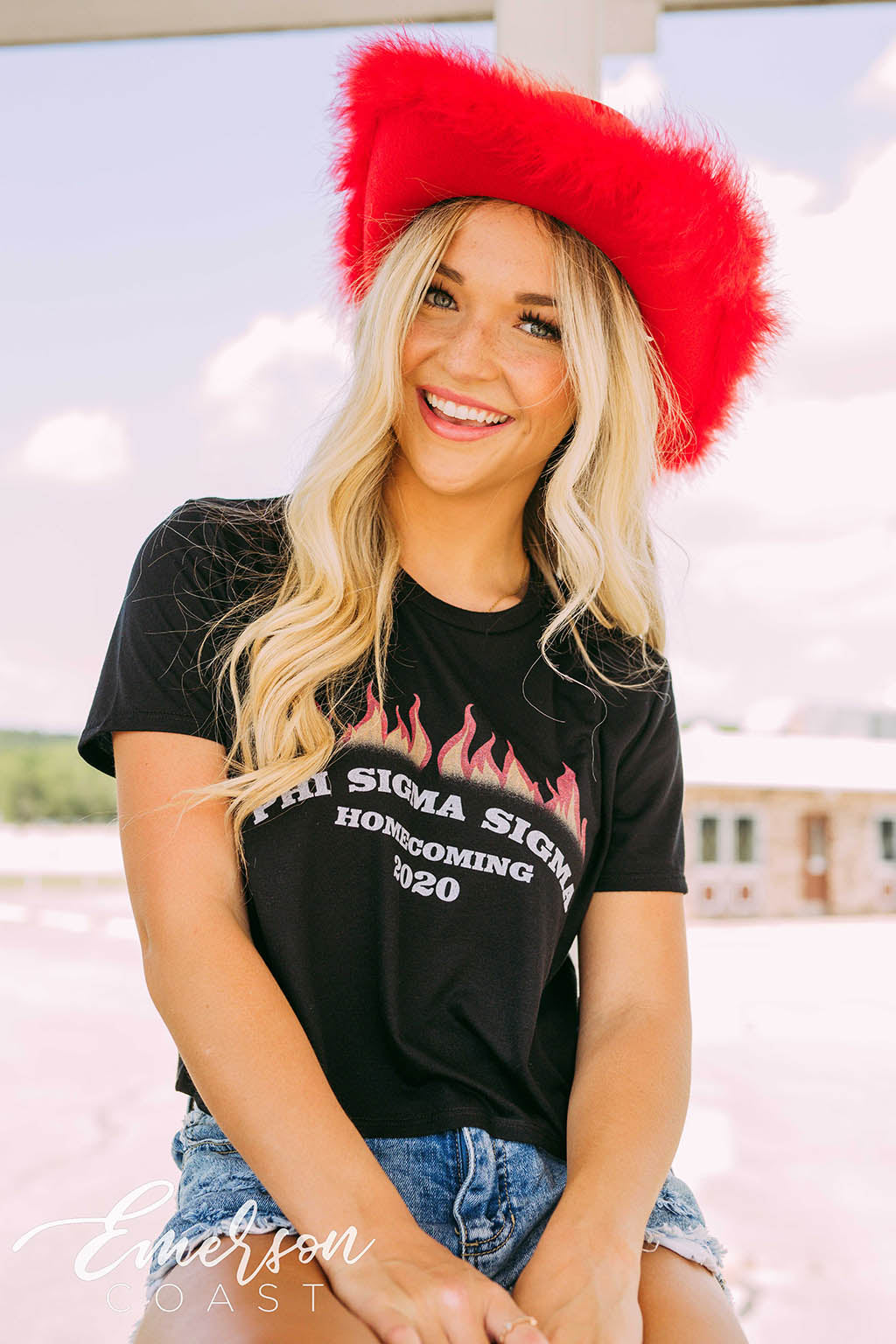 Gamma Phi at Oklahoma State floated into Bid Day with the dreamiest hot air balloon theme and the cutest pink colorblock ringer tees! Featuring soft pastel Greek letters, these tops added a fun pop of retro charm to an already magical day.