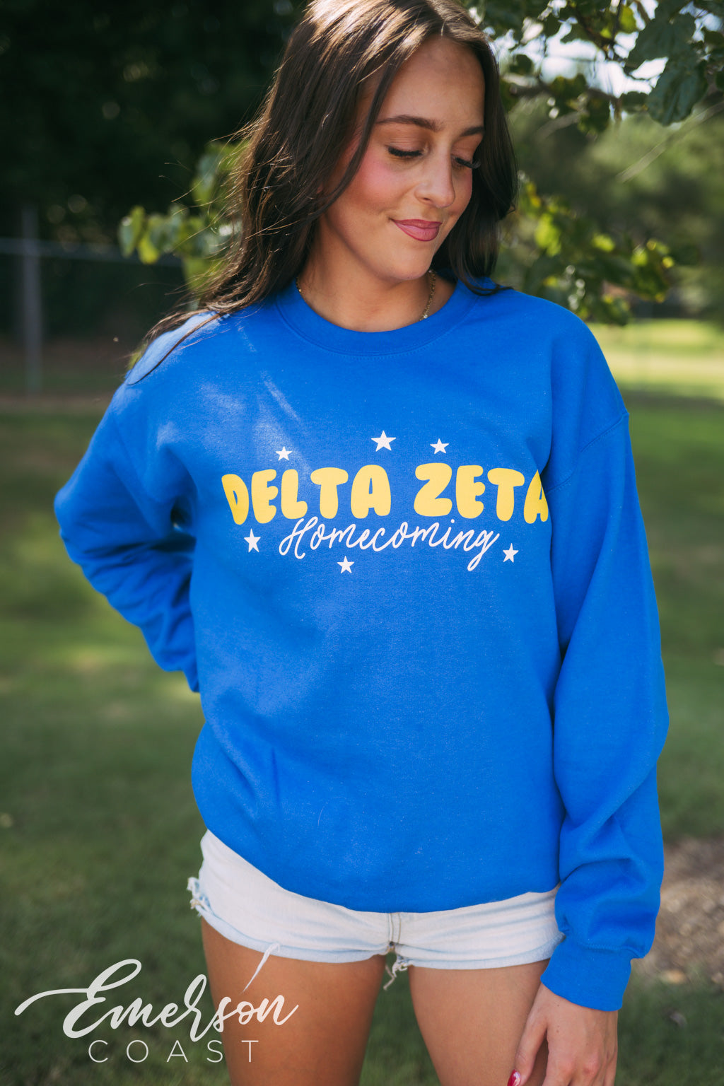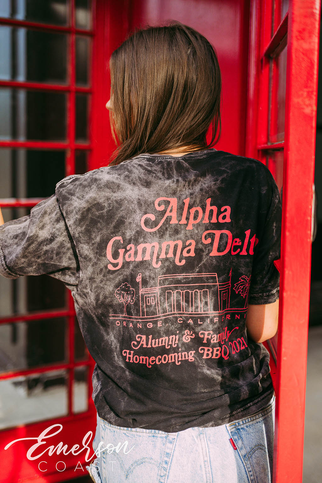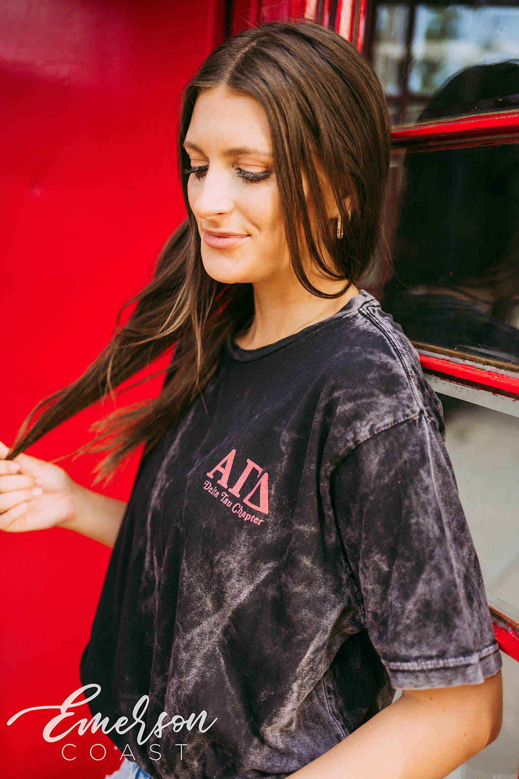 Tri Delta at Arkansas captured the magic of the Amalfi Coast for Bid Day with custom slouchy tees — white for members, cloud blue for new girls. Styled with flowy skirts and neck scarves, the whole vibe was straight out of a summer postcard.