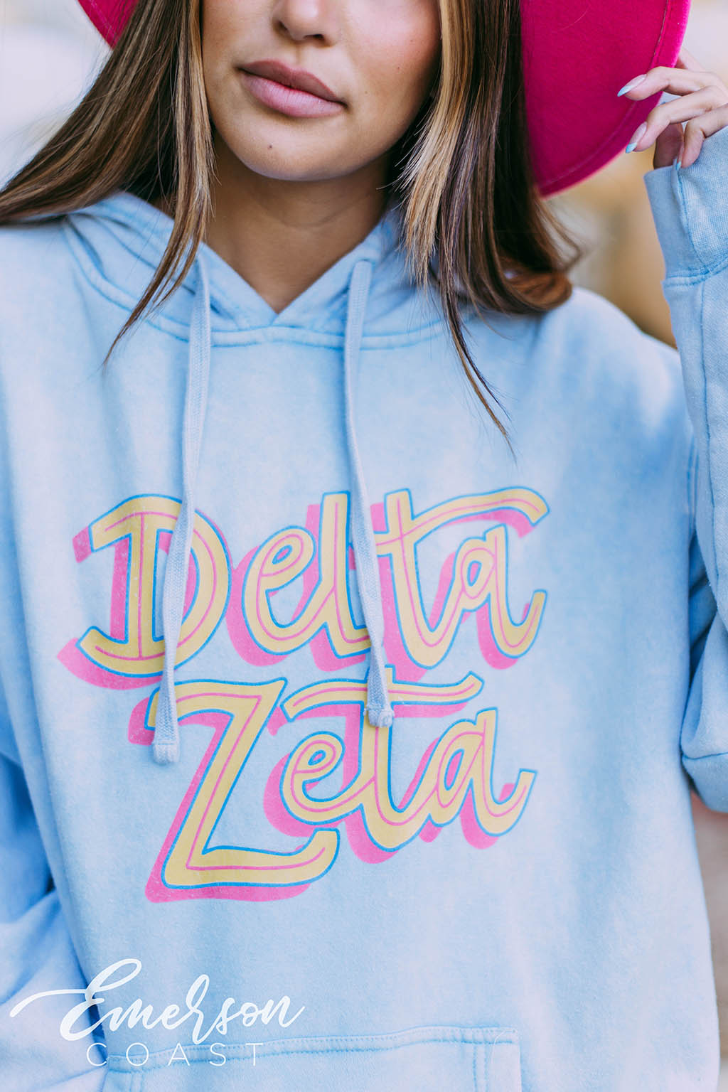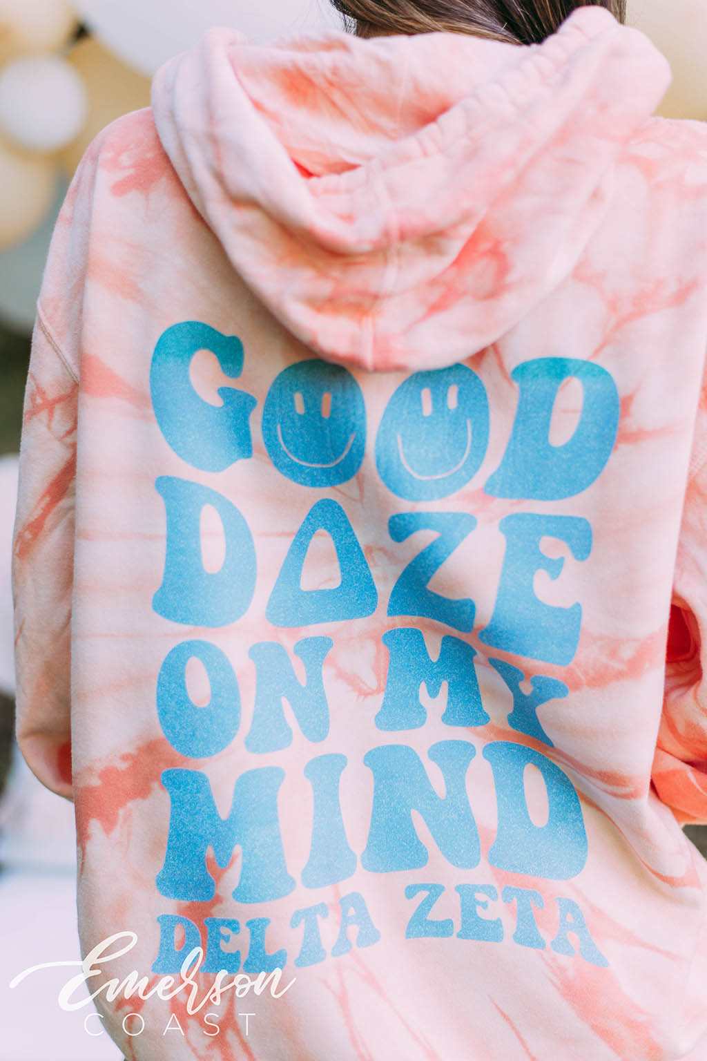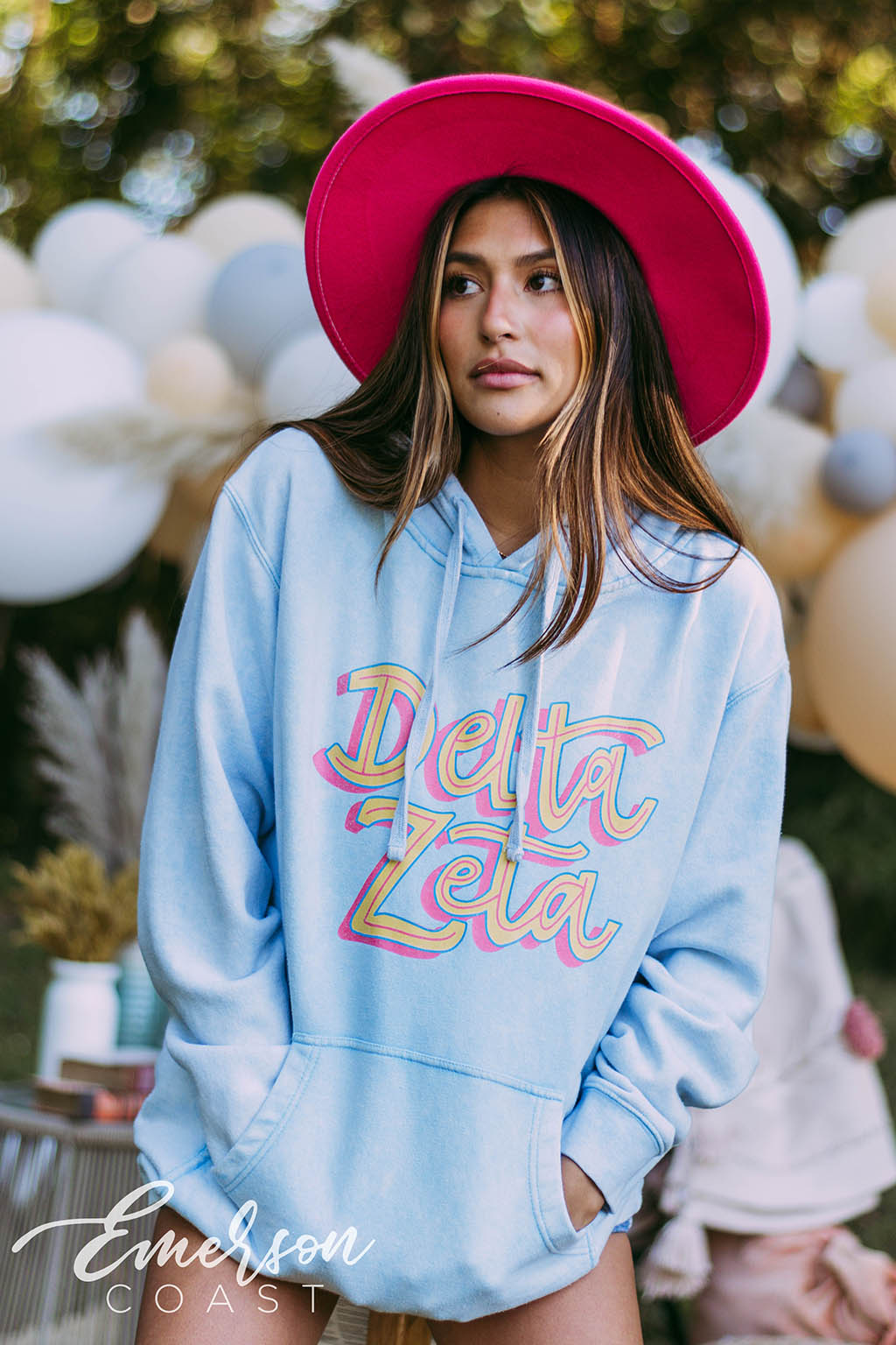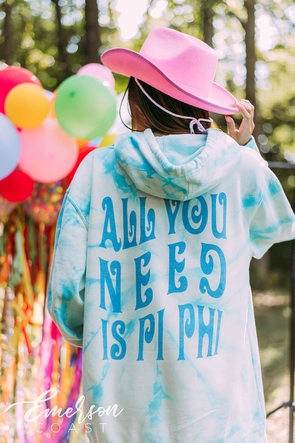 Tri Delta at Arkansas captured the magic of the Amalfi Coast for Bid Day with custom slouchy tees — white for members, cloud blue for new girls. Styled with flowy skirts and neck scarves, the whole vibe was straight out of a summer postcard.