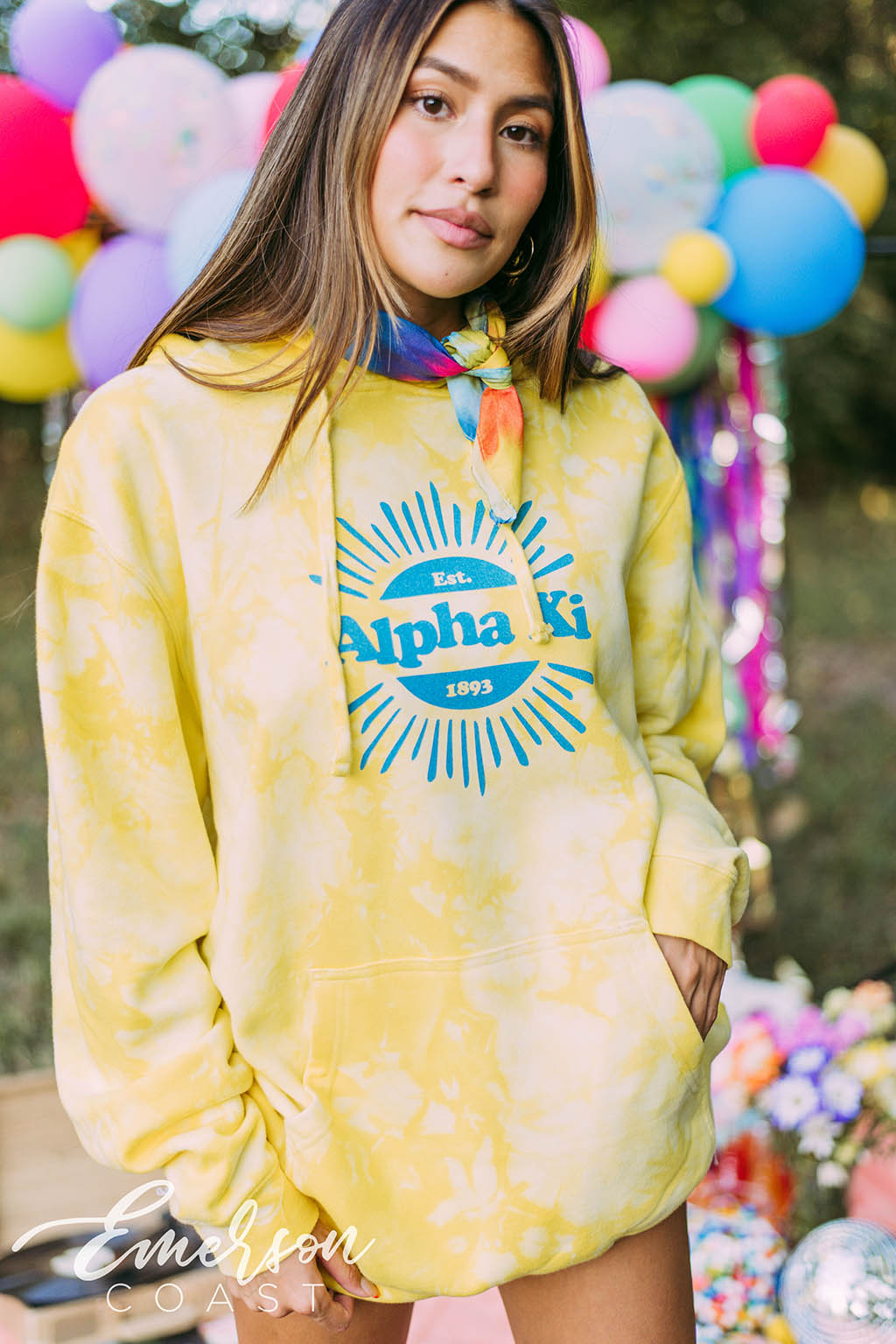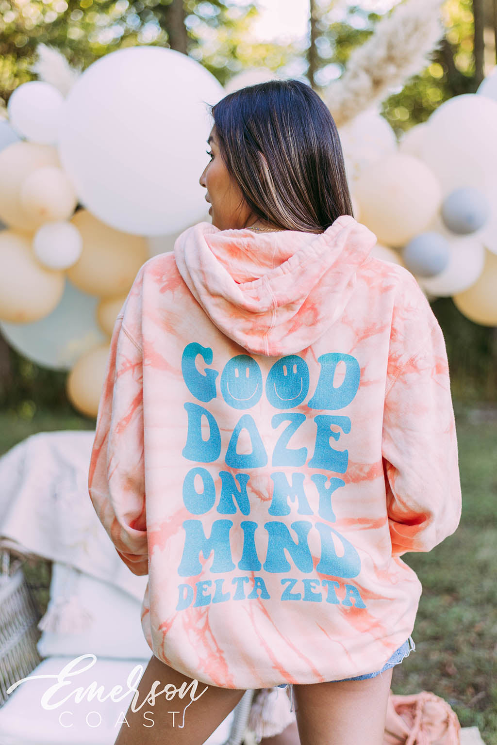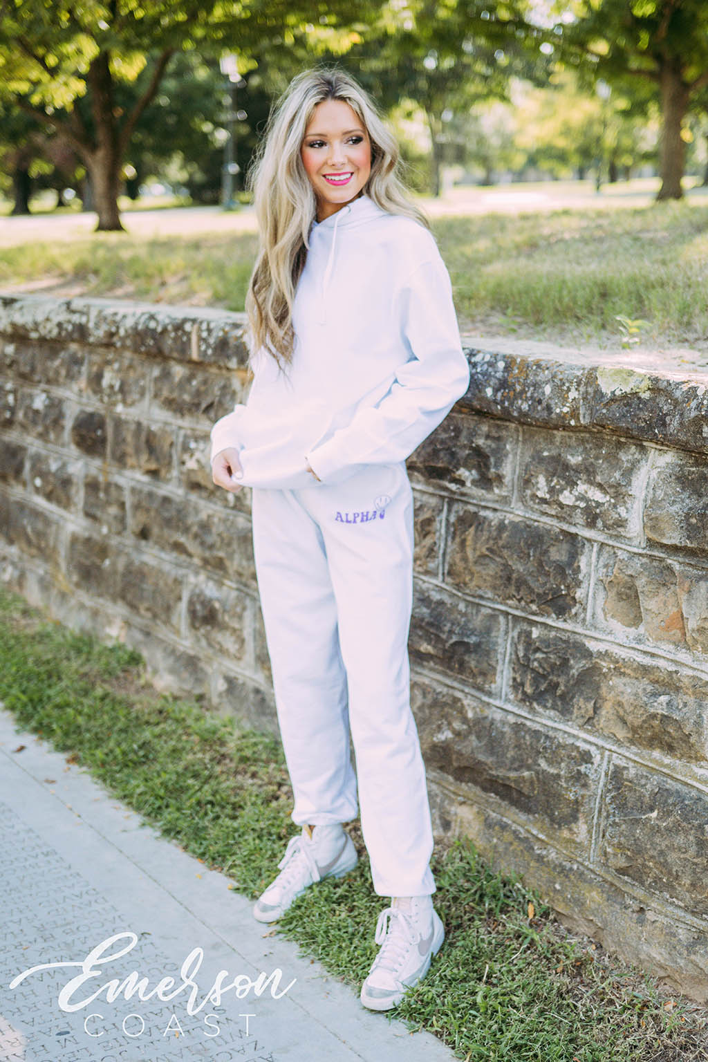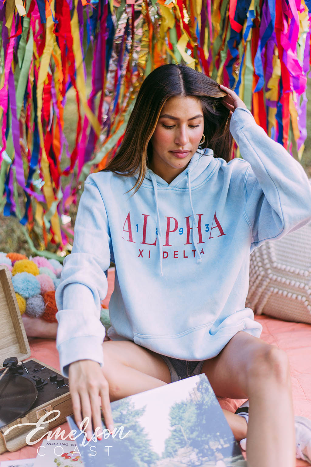 Tri Delta at Arkansas captured the magic of the Amalfi Coast for Bid Day with custom slouchy tees — white for members, cloud blue for new girls. Styled with flowy skirts and neck scarves, the whole vibe was straight out of a summer postcard.