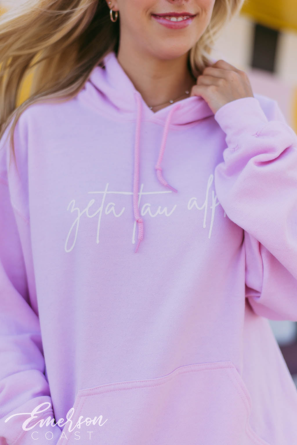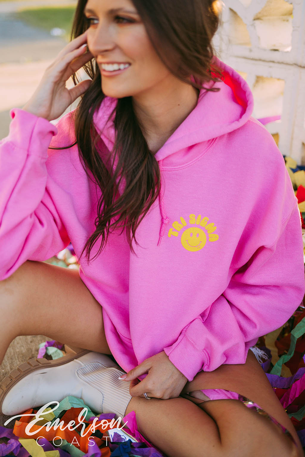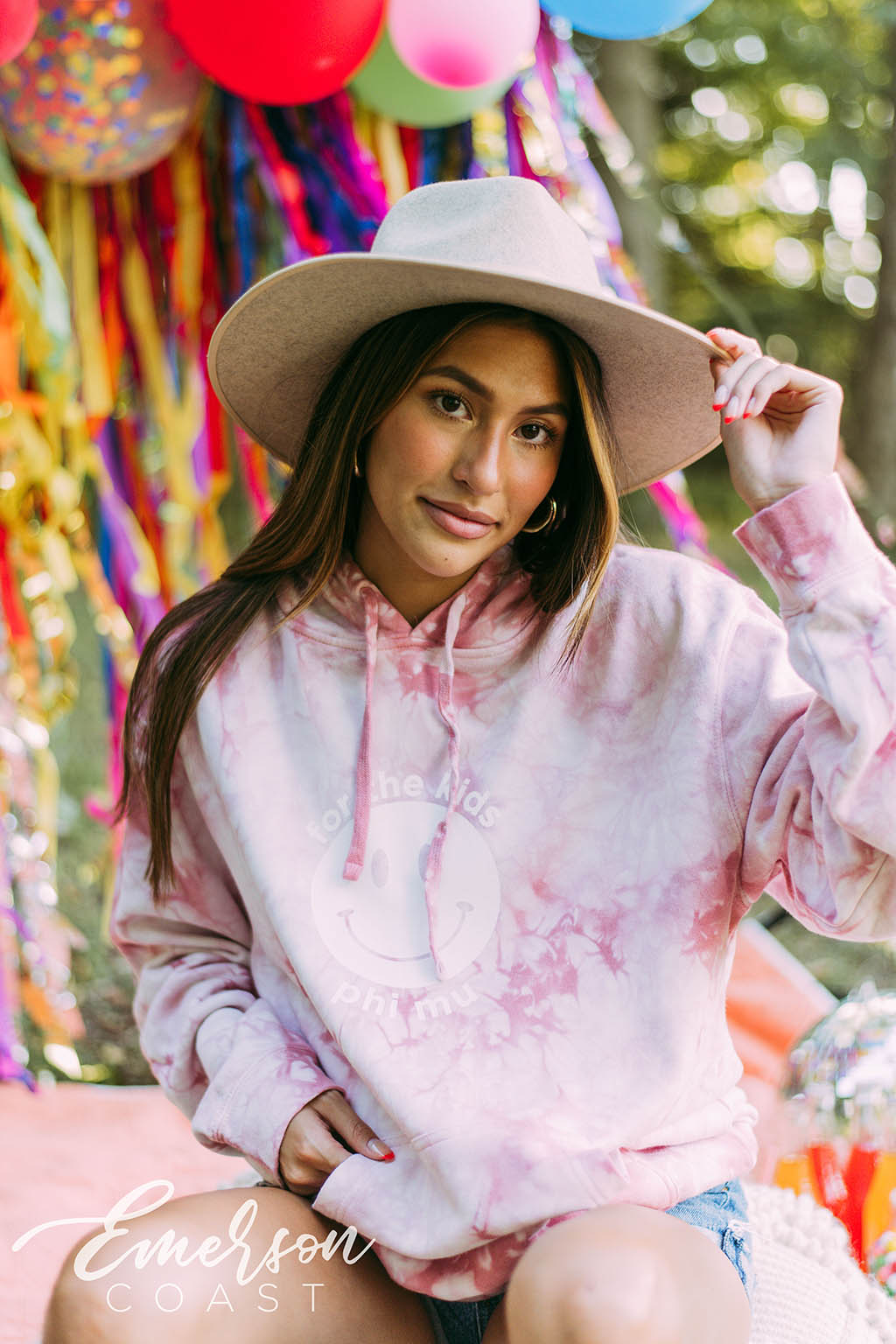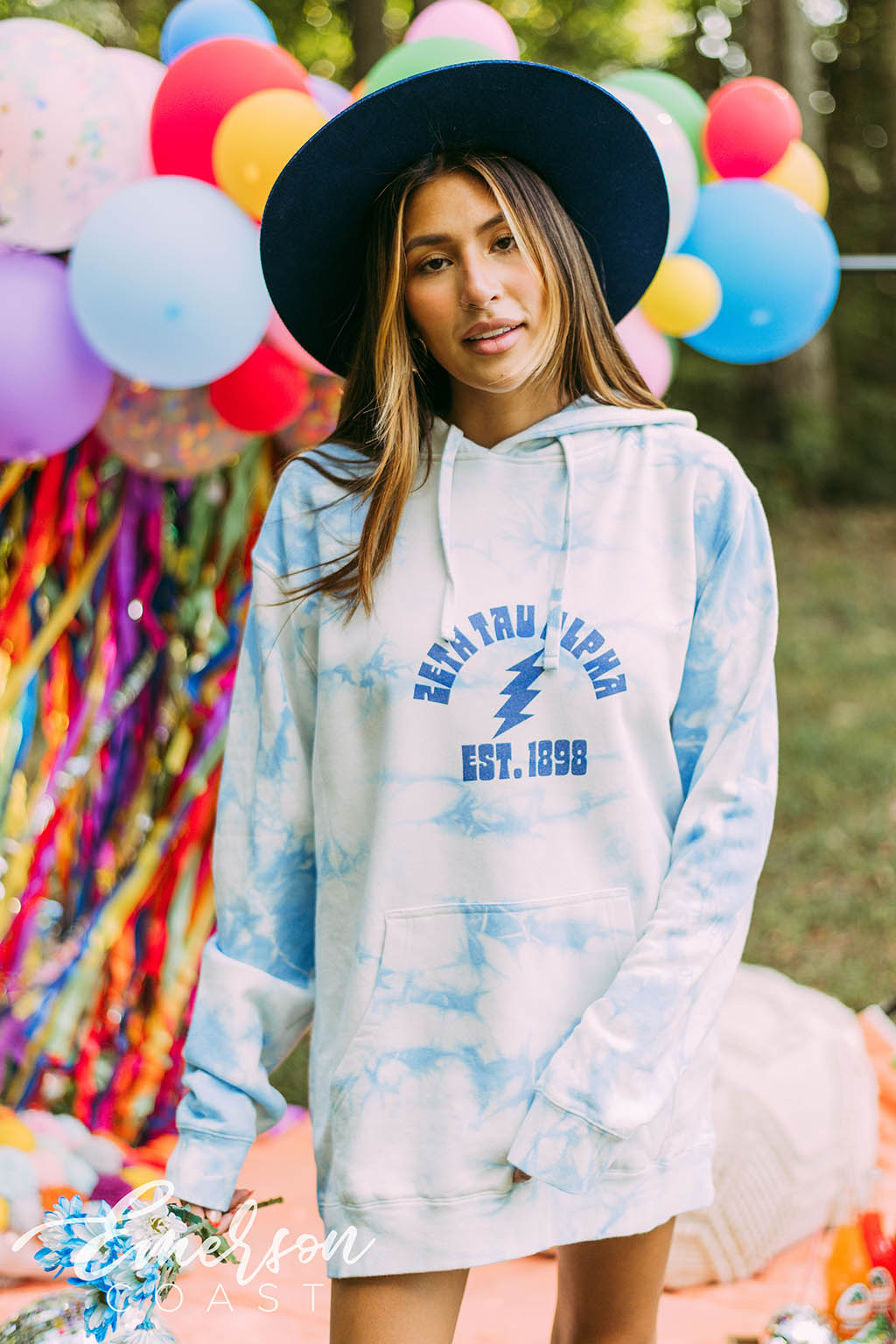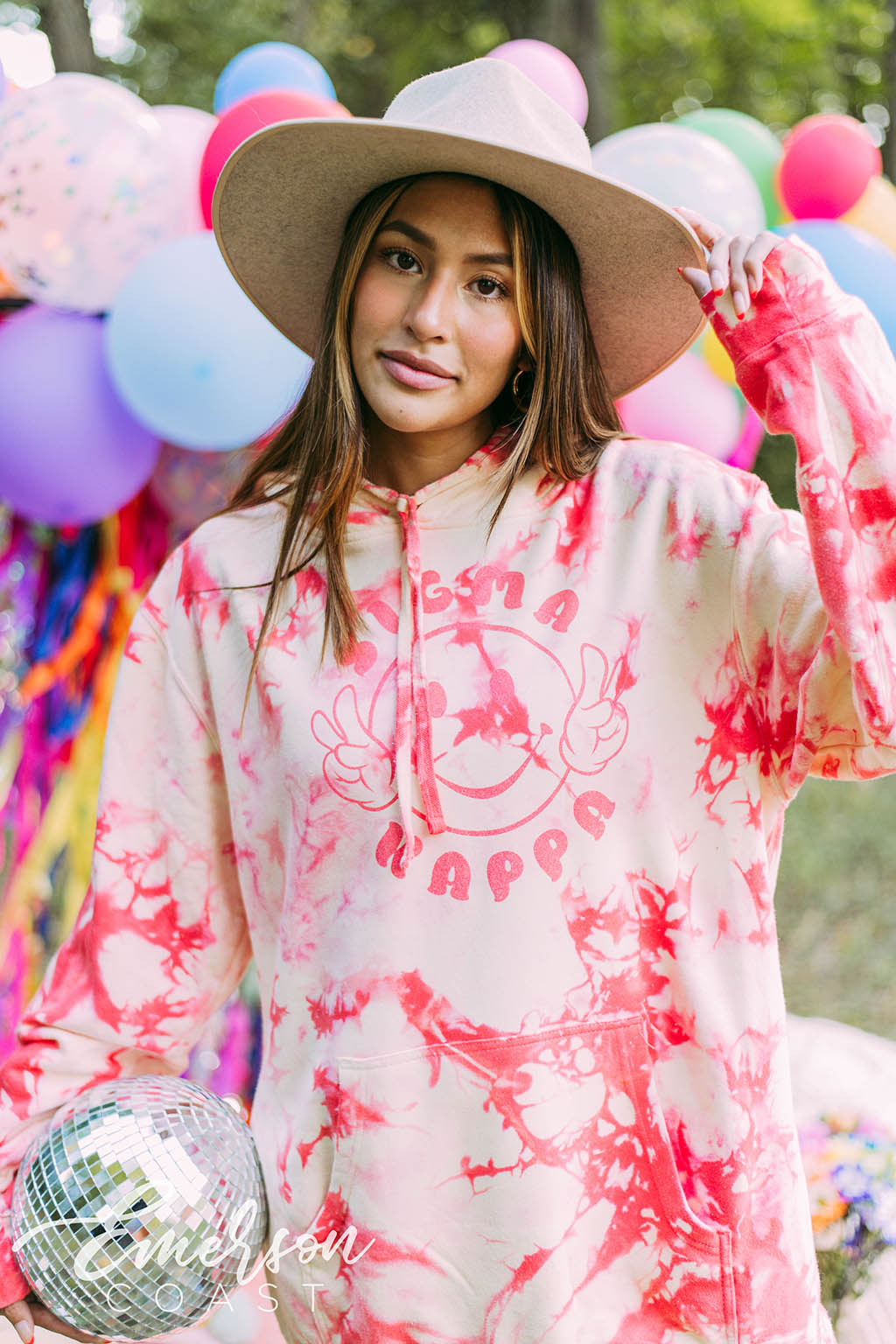 Gamma Phi at Oklahoma State floated into Bid Day with the dreamiest hot air balloon theme and the cutest pink colorblock ringer tees! Featuring soft pastel Greek letters, these tops added a fun pop of retro charm to an already magical day.