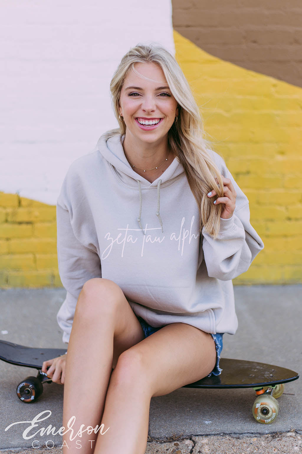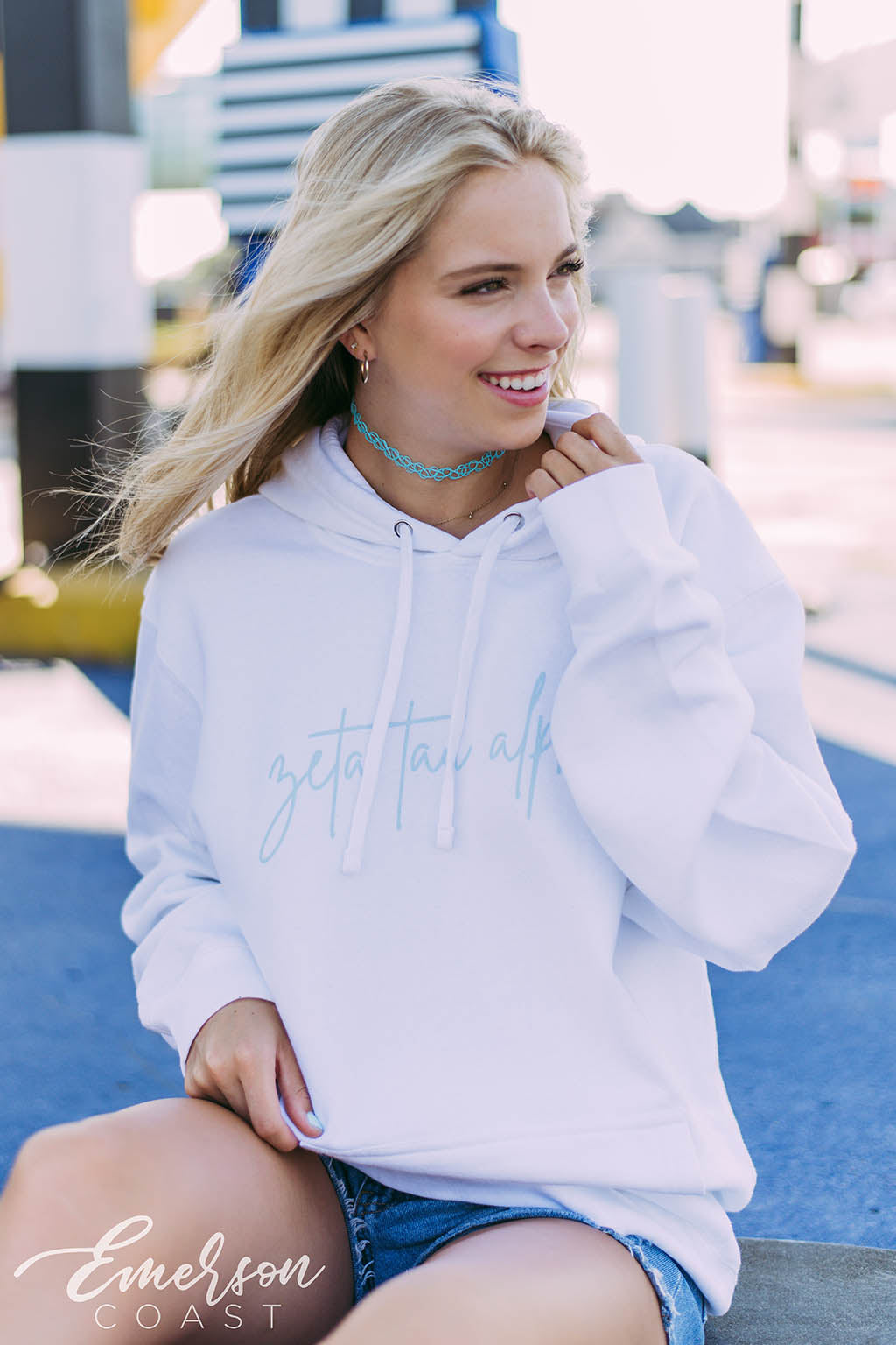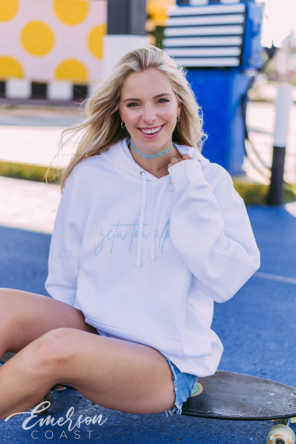 ZTA at Georgia Tech rocked custom teal slouchy tees for Recruitment, pairing them with white denim for a clean, polished look. The bold color choice made a statement while keeping things fun, fresh, and totally on brand.