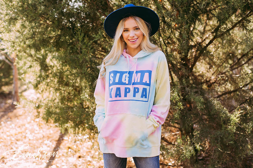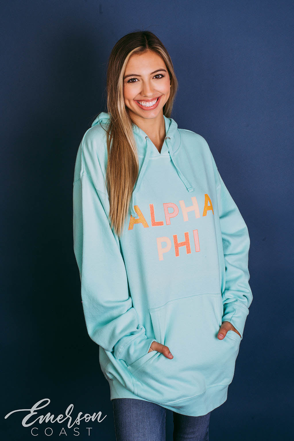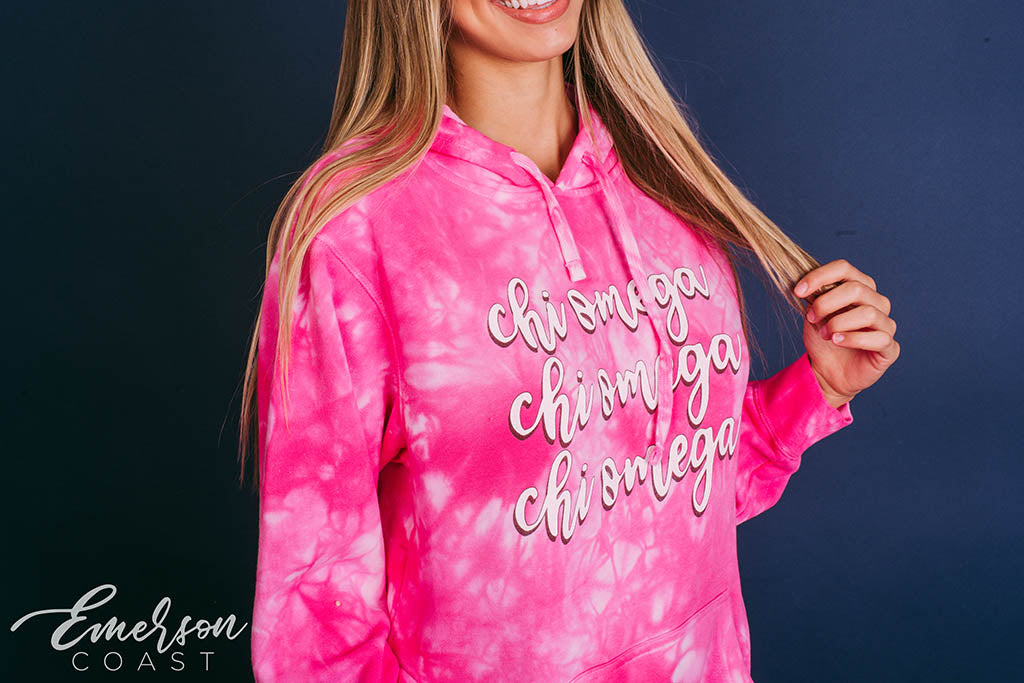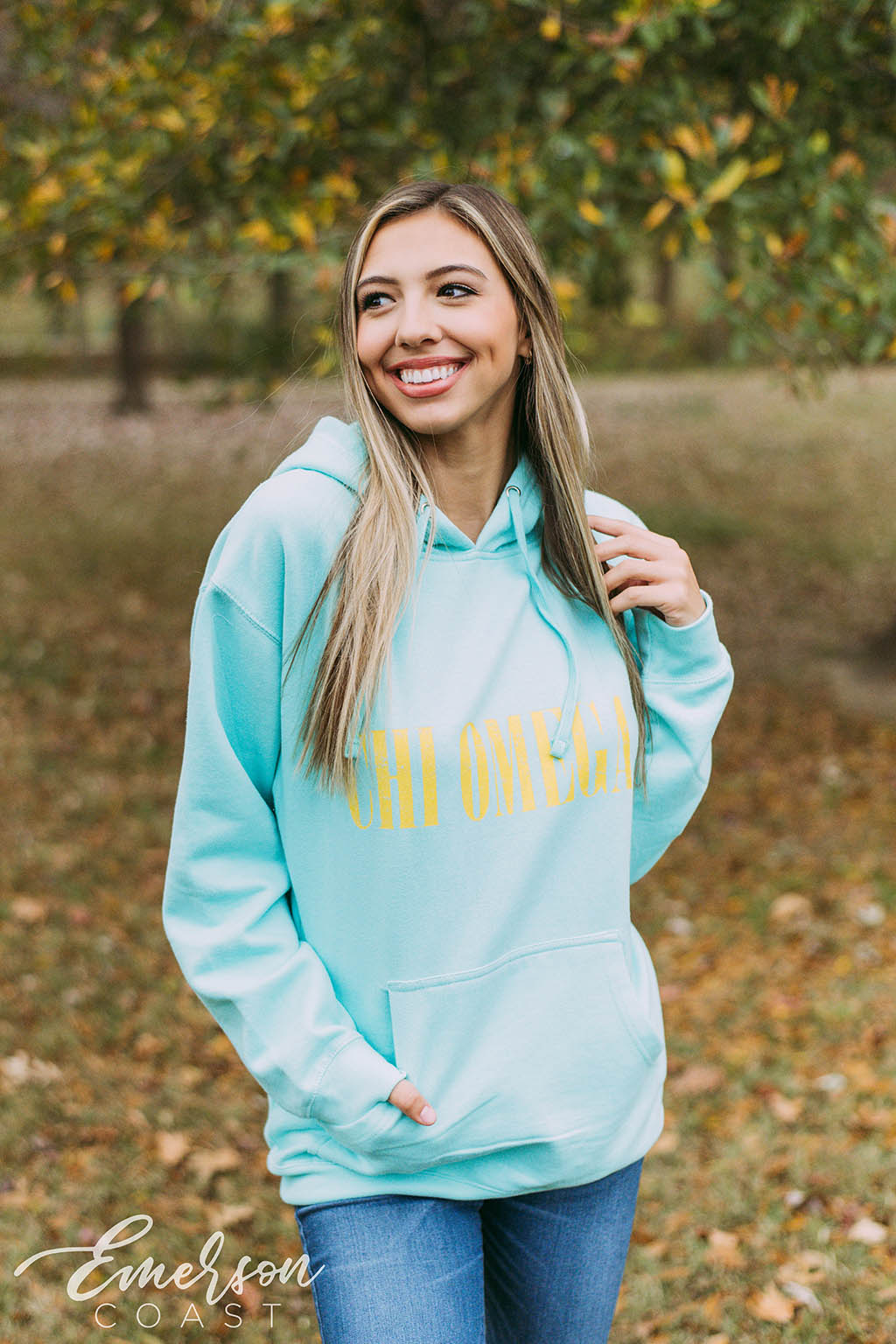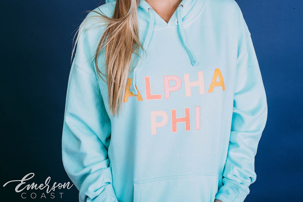 Add a pop of color to your chapter with one of our colorful hoodies!