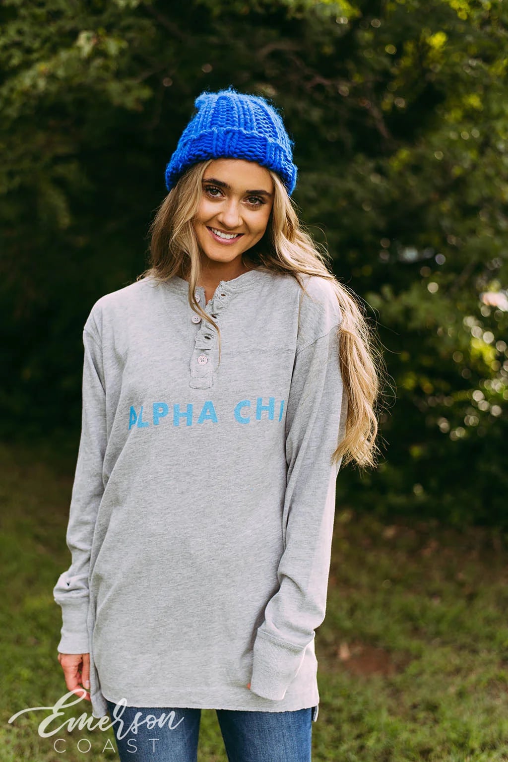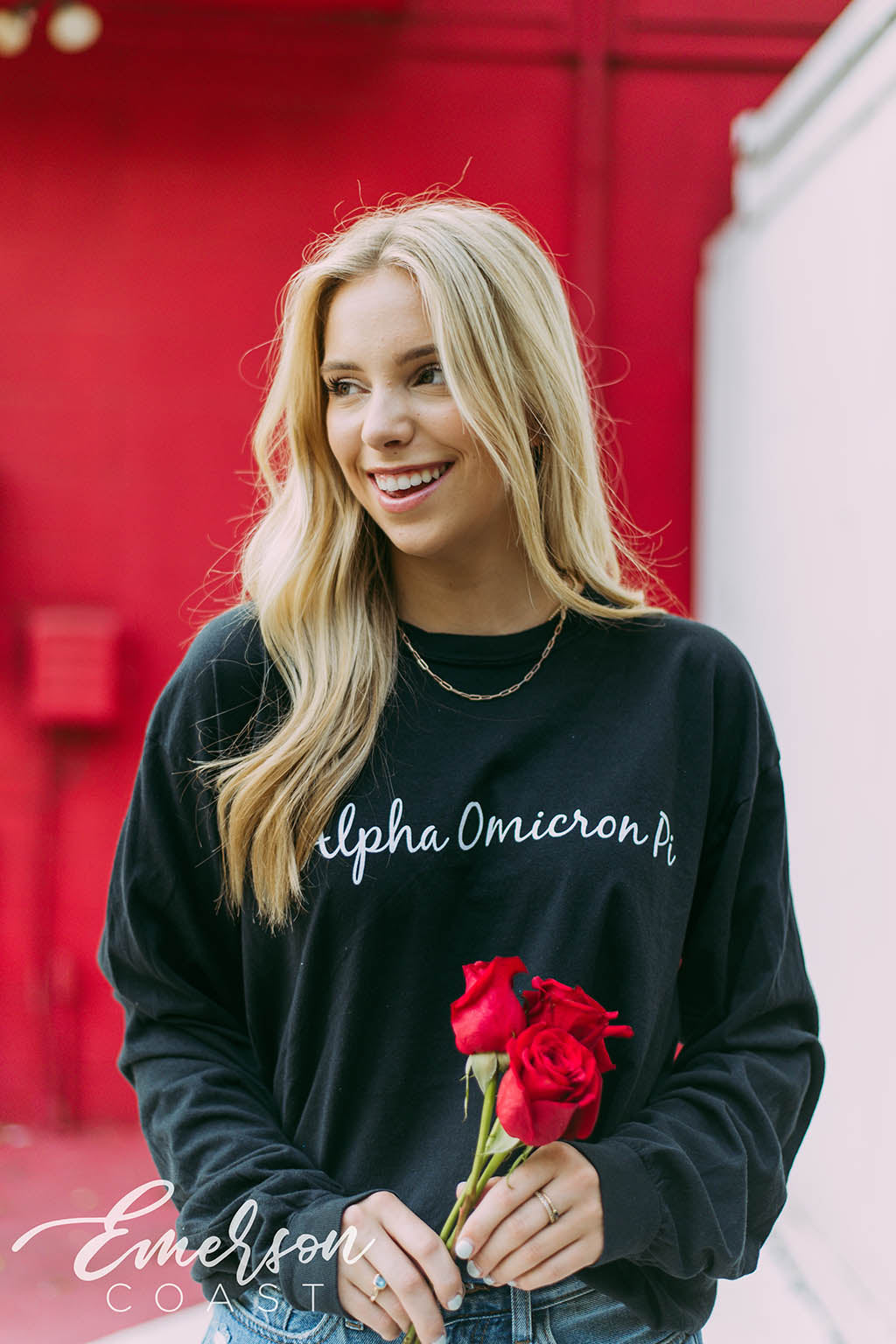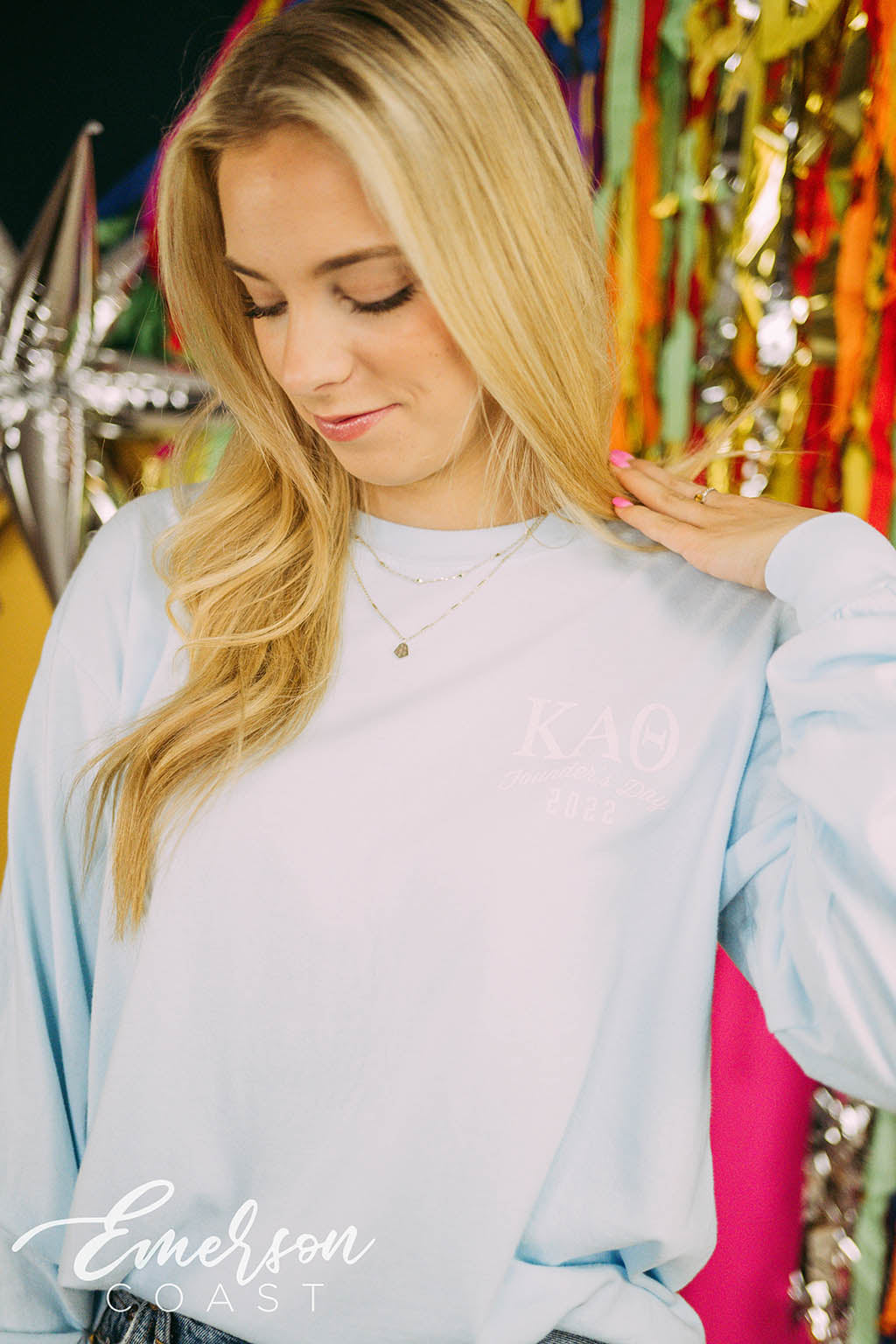 Gamma Phi at Oklahoma State floated into Bid Day with the dreamiest hot air balloon theme and the cutest pink colorblock ringer tees! Featuring soft pastel Greek letters, these tops added a fun pop of retro charm to an already magical day.