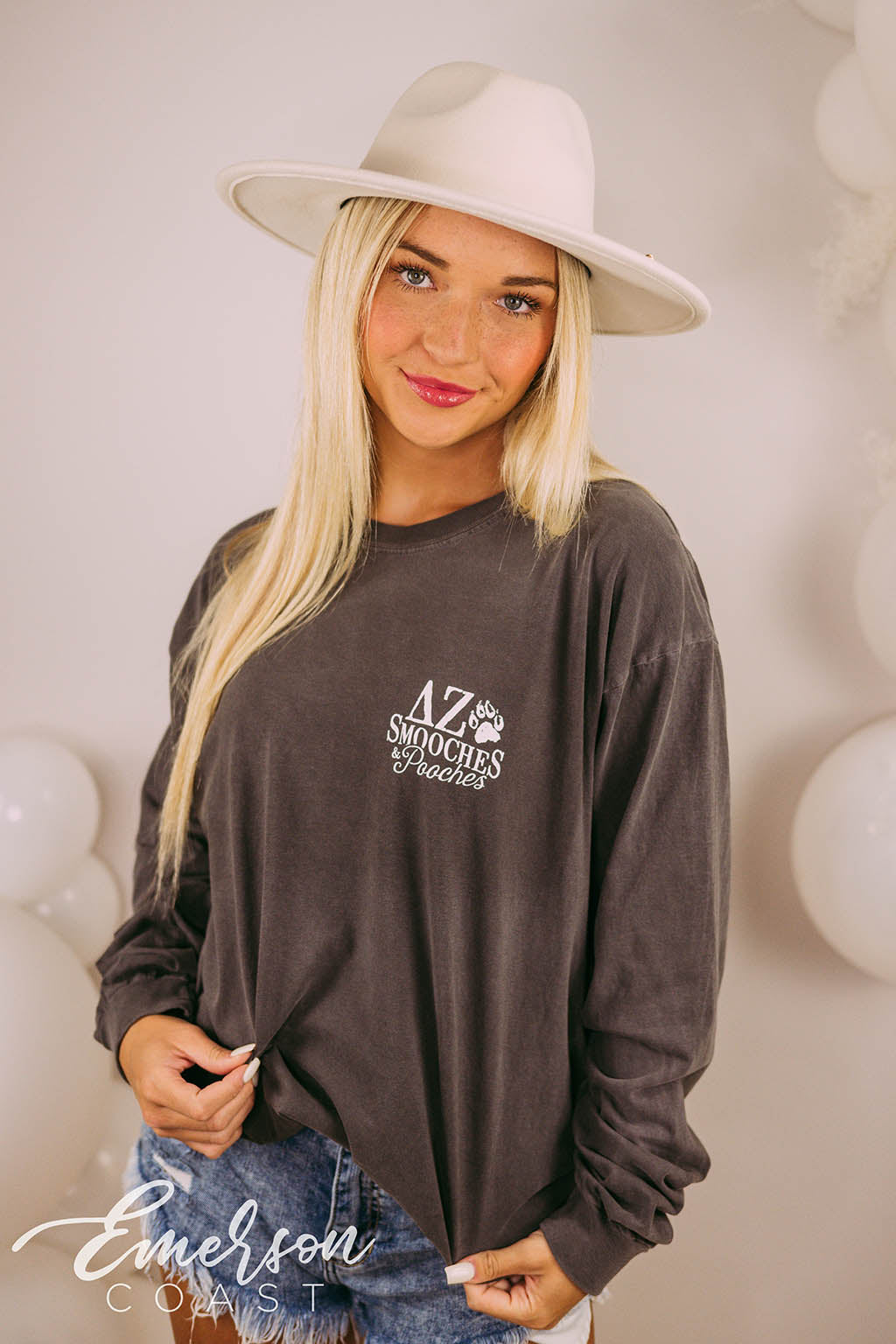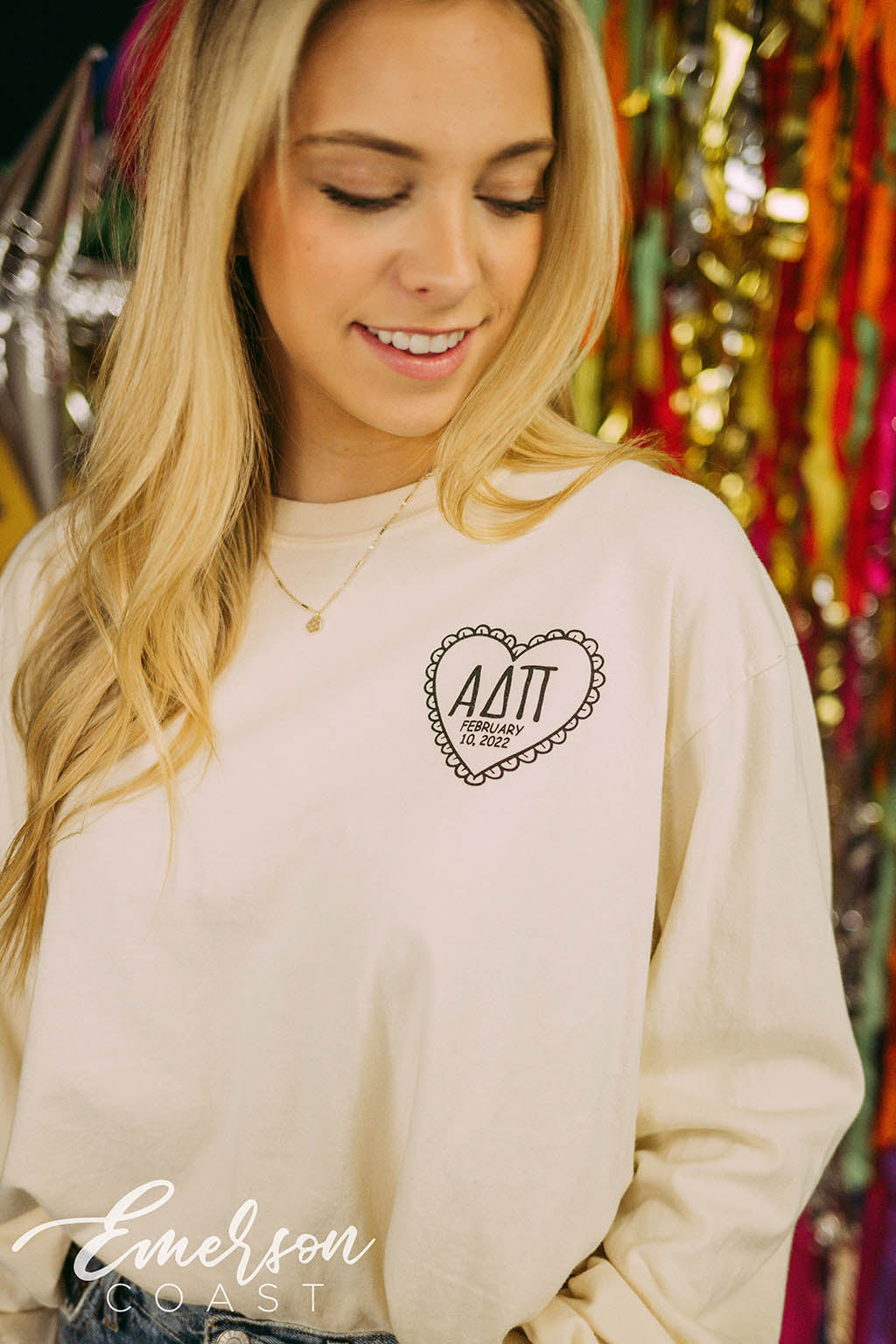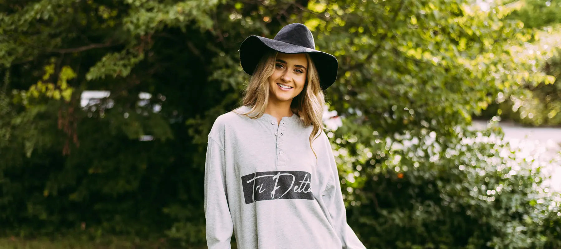 Tri Delta at Arkansas captured the magic of the Amalfi Coast for Bid Day with custom slouchy tees — white for members, cloud blue for new girls. Styled with flowy skirts and neck scarves, the whole vibe was straight out of a summer postcard.
