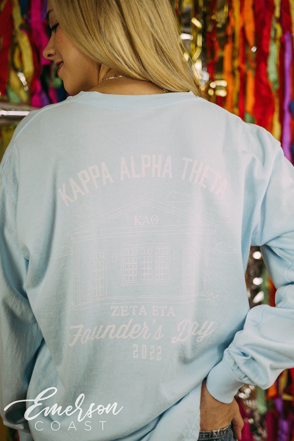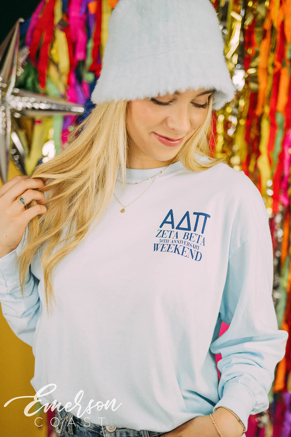 ZTA at Georgia Tech rocked custom teal slouchy tees for Recruitment, pairing them with white denim for a clean, polished look. The bold color choice made a statement while keeping things fun, fresh, and totally on brand.