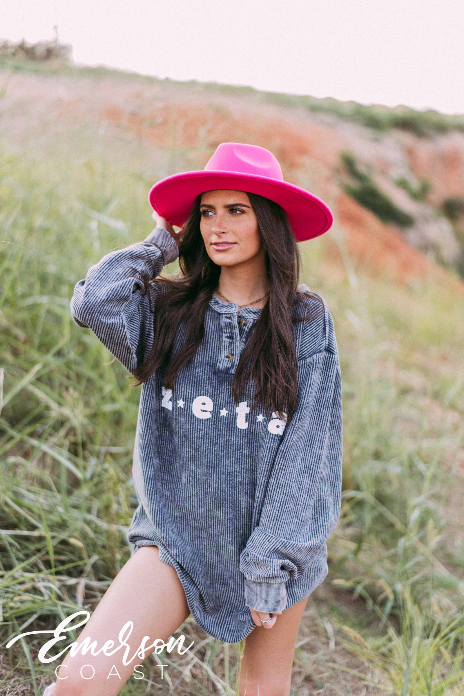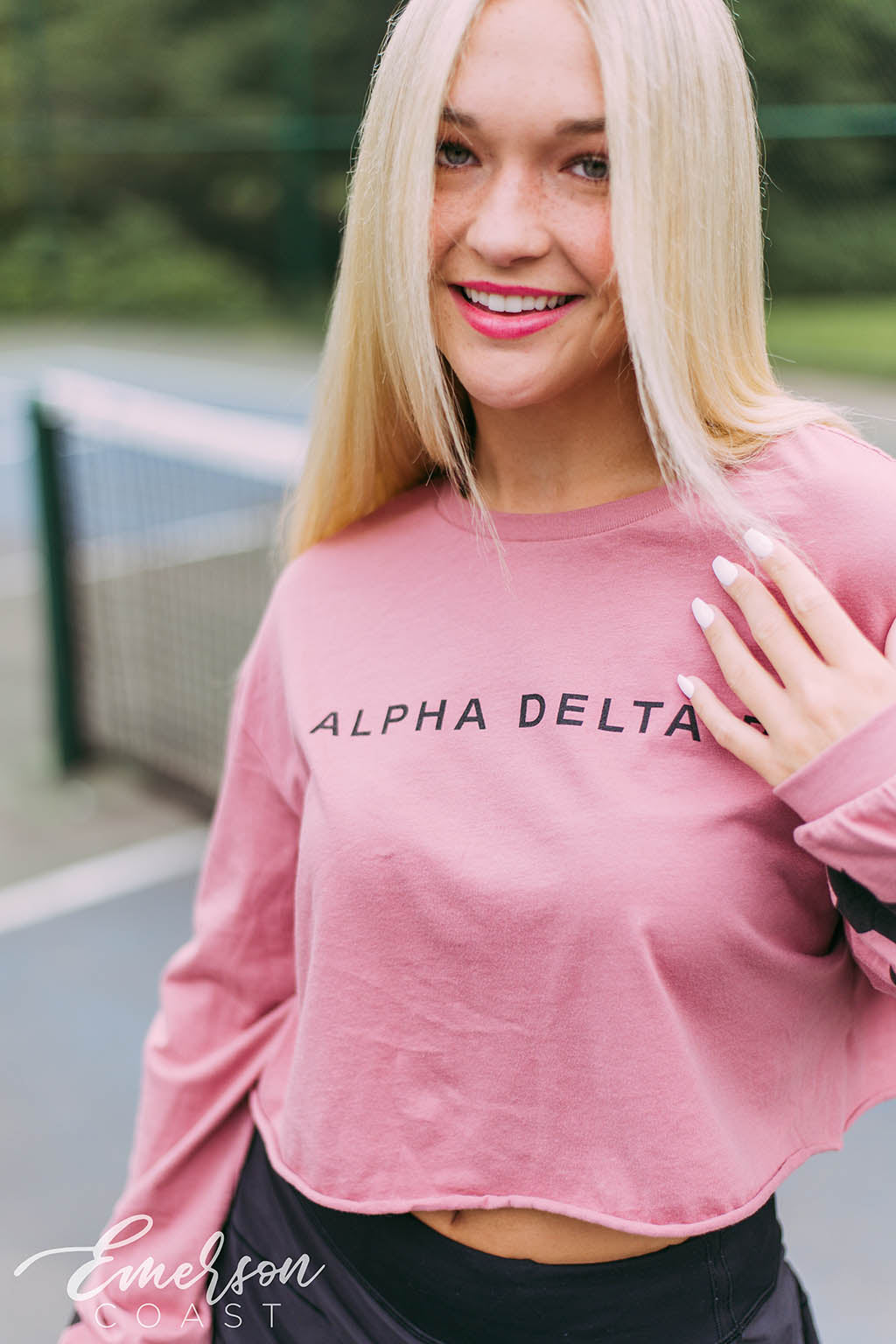 Gamma Phi at Oklahoma State floated into Bid Day with the dreamiest hot air balloon theme and the cutest pink colorblock ringer tees! Featuring soft pastel Greek letters, these tops added a fun pop of retro charm to an already magical day.