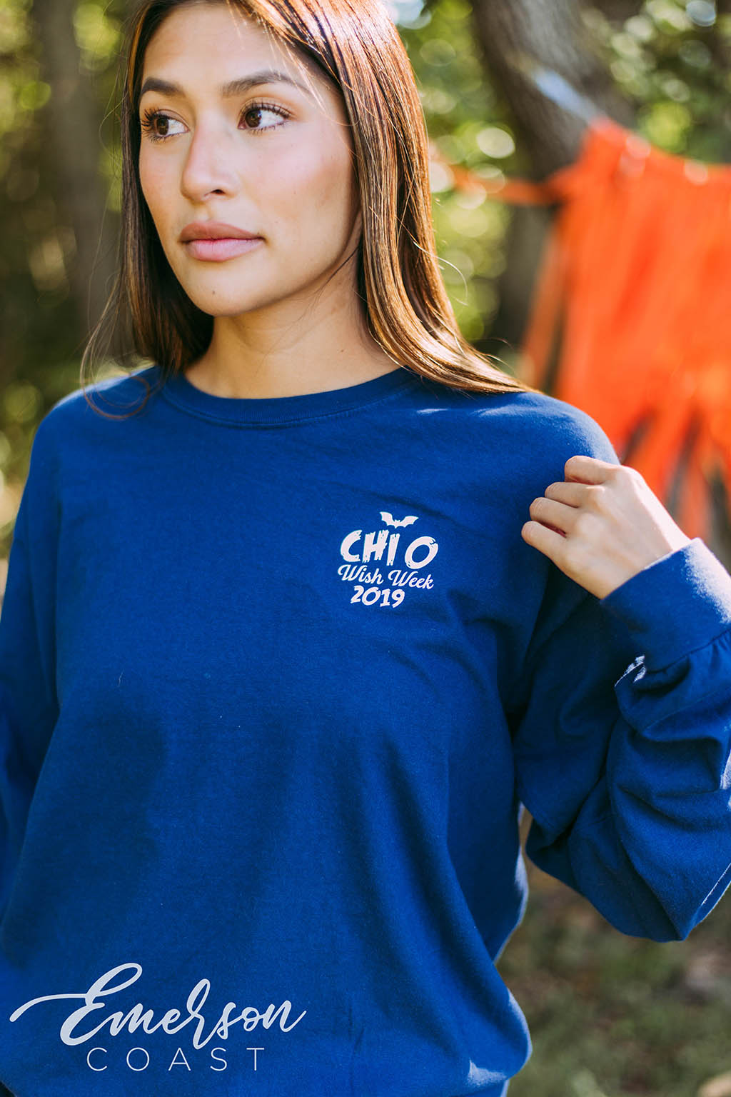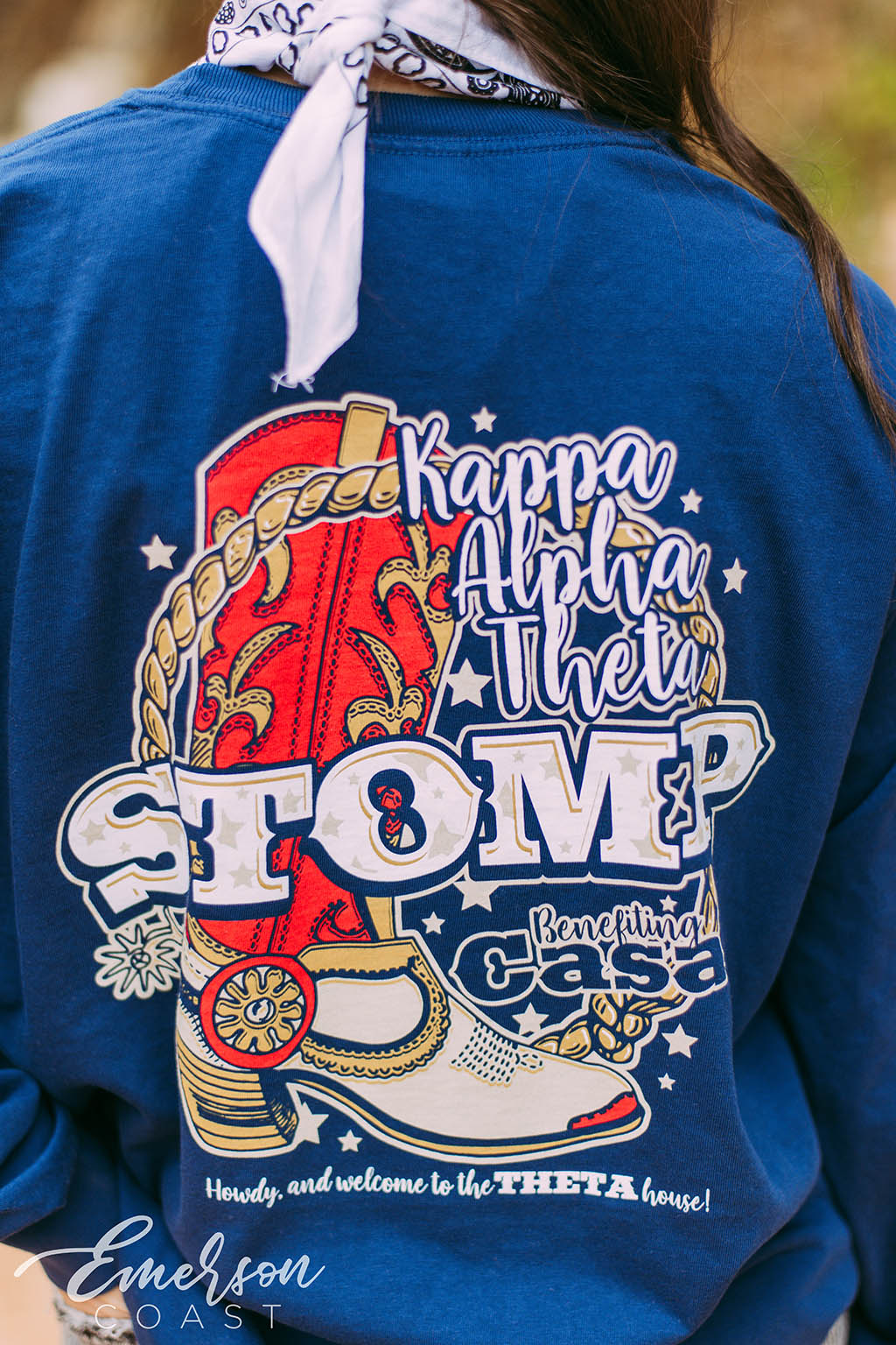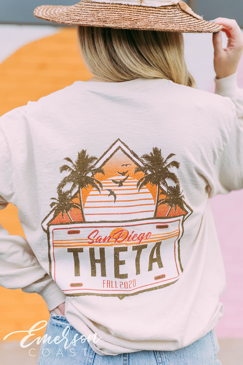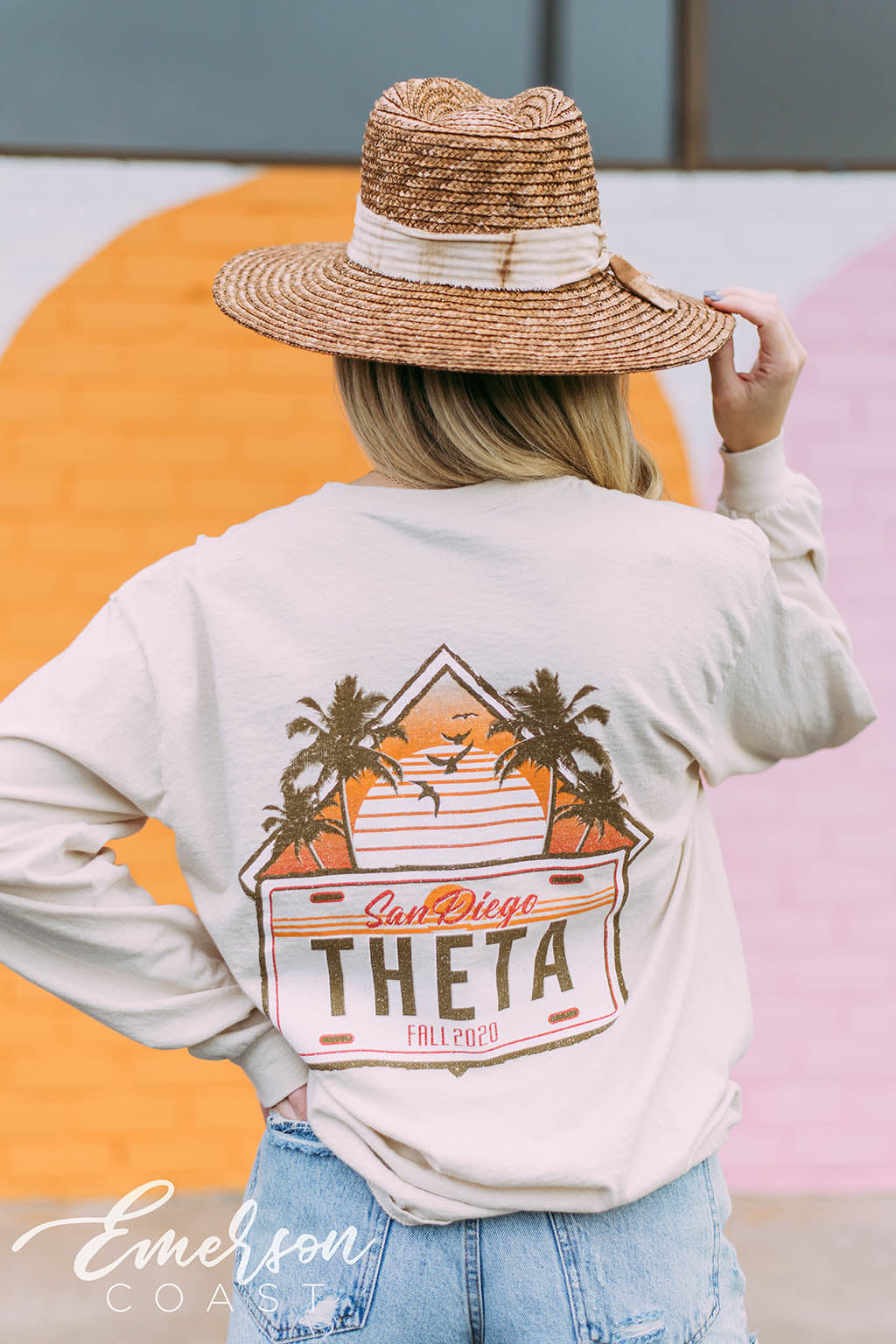 Tri Delta at Arkansas captured the magic of the Amalfi Coast for Bid Day with custom slouchy tees — white for members, cloud blue for new girls. Styled with flowy skirts and neck scarves, the whole vibe was straight out of a summer postcard.