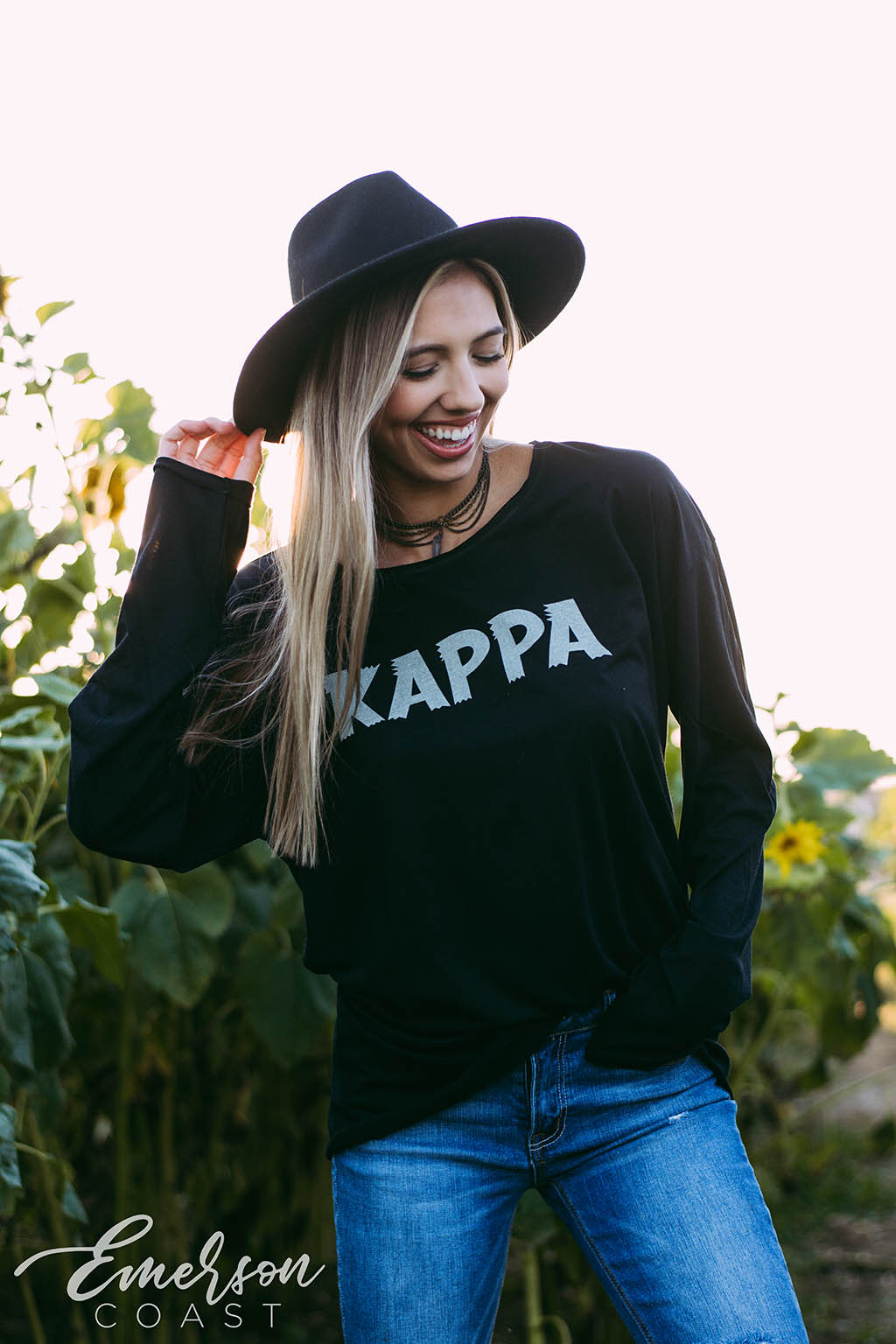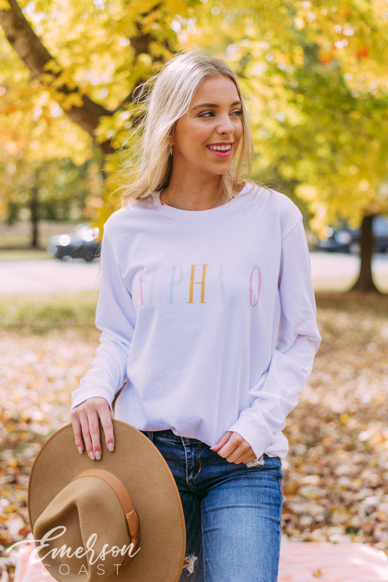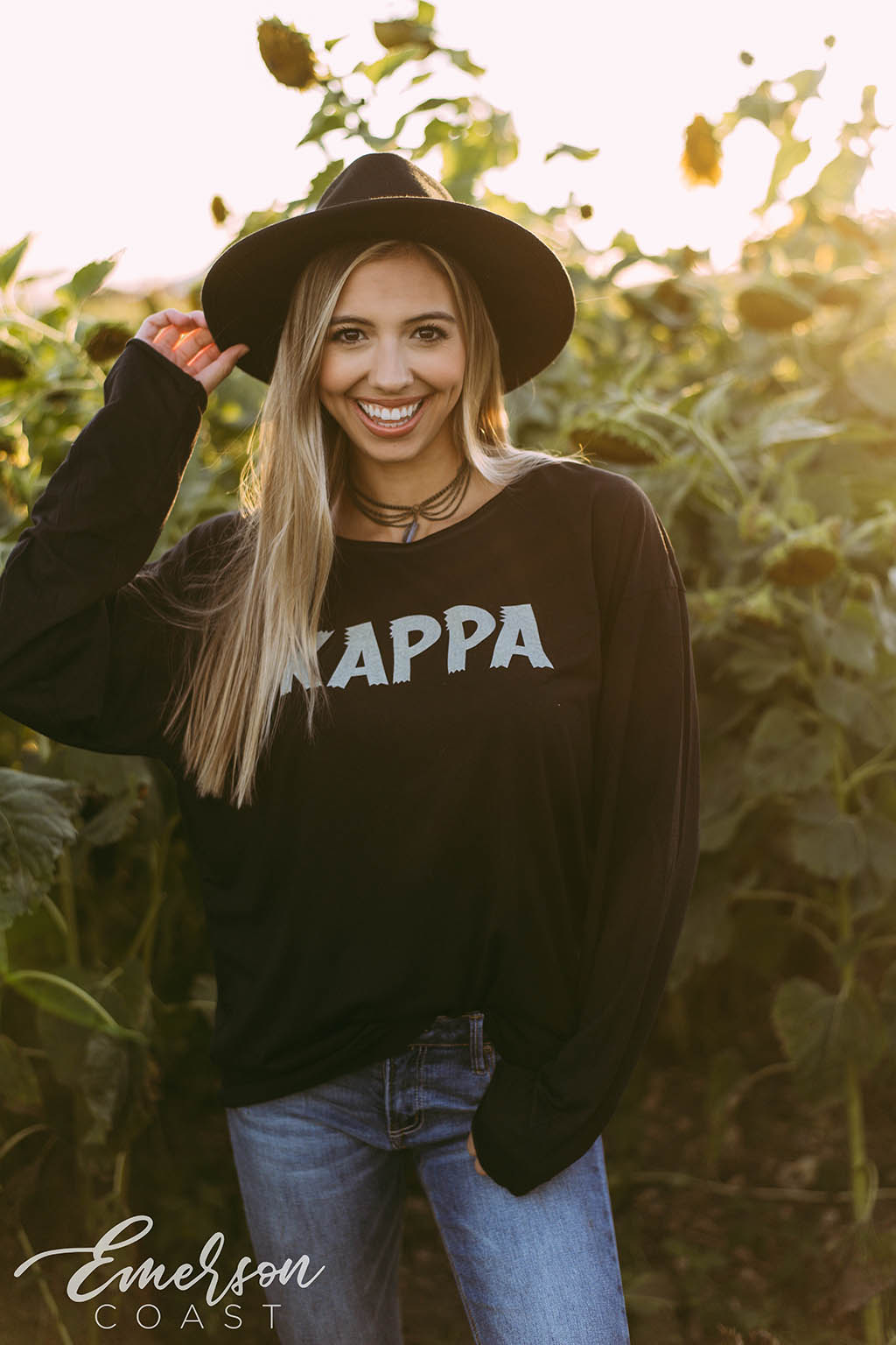 Gamma Phi at Oklahoma State floated into Bid Day with the dreamiest hot air balloon theme and the cutest pink colorblock ringer tees! Featuring soft pastel Greek letters, these tops added a fun pop of retro charm to an already magical day.