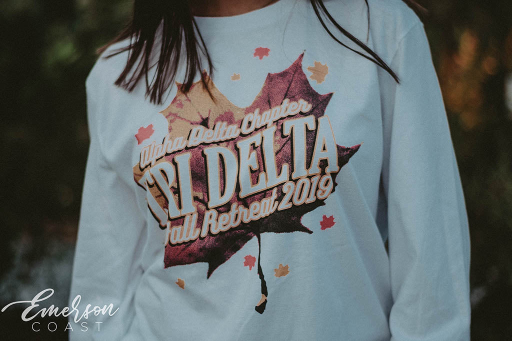 Tri Delta at Arkansas captured the magic of the Amalfi Coast for Bid Day with custom slouchy tees — white for members, cloud blue for new girls. Styled with flowy skirts and neck scarves, the whole vibe was straight out of a summer postcard.