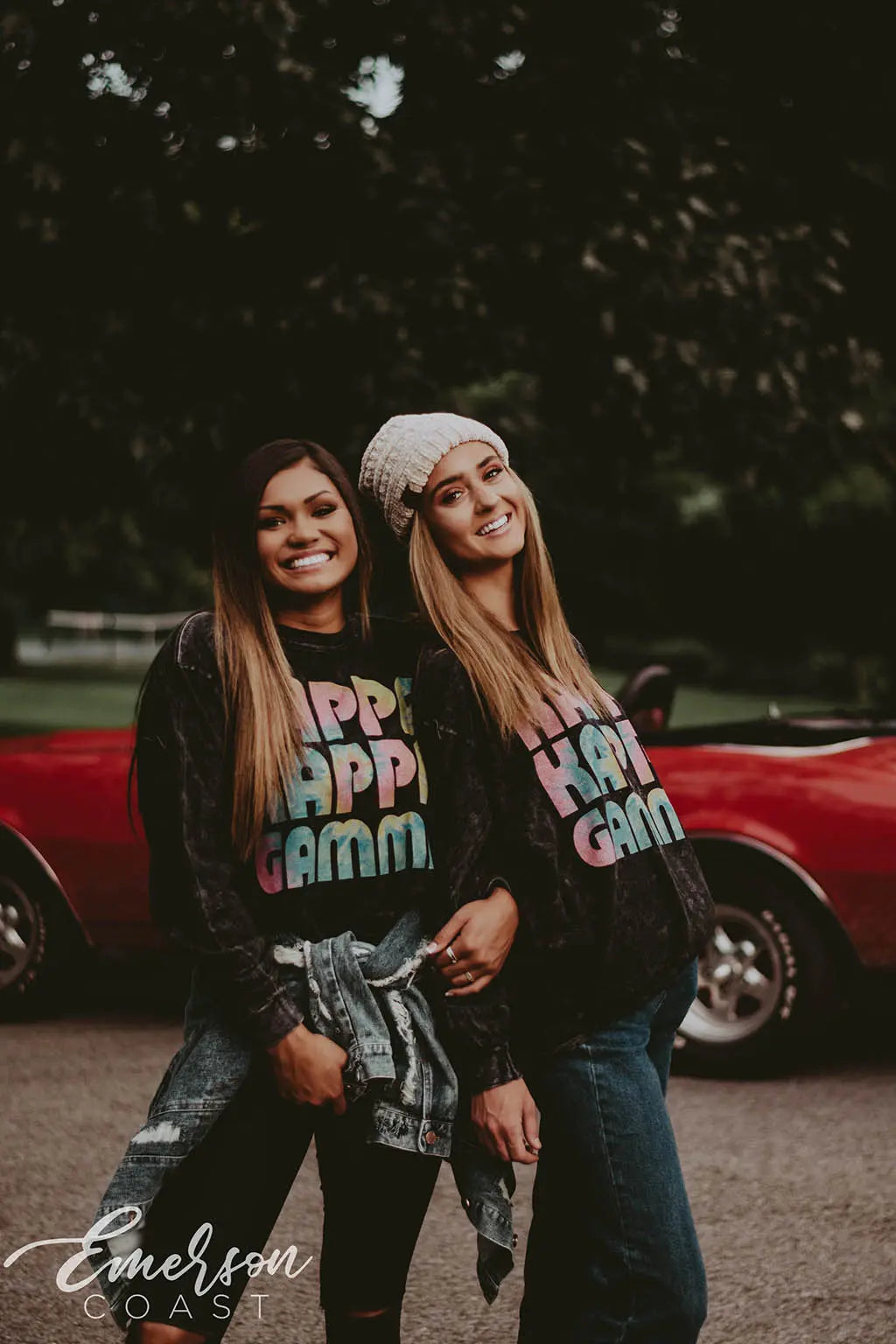 The Mineral Wash Long Sleeve is perfect for the fall. It comes in 3 different colors: black, gray and navy. This long sleeve fits mainly true to size with a little extra room. Its perfect for chillier months of the year to wear to class or it can be layered for a cold night at your sorority sisterhood event. Retro typography designs or outdoors designs look great on this style. Simply scroll through this page to get more inspiration on design, style, and event for your chapters next Mineral Wash Long Sleeve. The Mineral Wash Long Sleeve comes in sizes S-3XL.