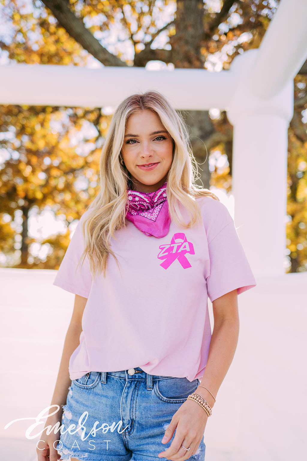ZTA at Georgia Tech rocked custom teal slouchy tees for Recruitment, pairing them with white denim for a clean, polished look. The bold color choice made a statement while keeping things fun, fresh, and totally on brand.