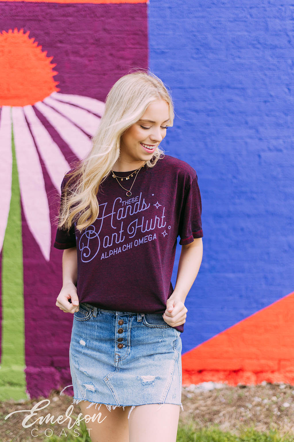 Shine bight with the Alpha Chi Omega Acid Wash Philanthropy Tee!