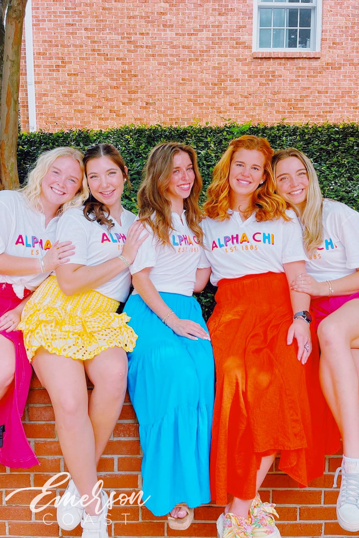 The sisters you choose will become your friends for life, and there’s no going back once you decide to pledge. Because of this, recruitment is a super special time in Greek life. This is when you get to showcase your sisterhood and attract like-minded women to join your chapter. No matter your sorority, recruitment is the time to focus on what makes your group great, whether it be your focus on service, your commitment to growth, your passion for creativity, or your reputation for excellence. Recruitment is not the time to hide your shine or be modest; it’s the time to showcase what being in your sorority is all about and what kind of women are in your sorority. It’s important to be unique during this time, so recruits can choose where they want to be. Sorority Recruitment Shirts Recruitment week is not the time to have basic sorority recruitment apparel. Many companies produce basic designs on overused clothing styles that make every chapter look exactly the same. When you’re trying to pick out your future sisters from the crowd of potential pledges, it’s hard to showcase your individuality if your sorority recruitment T-shirts are just like everyone else’s. The main purpose of sorority recruitment shirts is to show potential pledges exactly what your group is all about. The style of shirt and the type of design should show off your chapter’s aesthetic. If you put thought and personality into your shirt design, like-minded women will be drawn to your cause. At Emerson Coast, unique apparel is all we do. We are obsessed with giving sororities the resources to make clothing that reflects who they are and what they stand for. Our recruitment week shirts are no different. Our designers have created trendy, cool shirts that catch attention wherever they go. We have design styles ranging fromretrotomodern,in every color of the rainbow. Our sorority recruitment shirts come inbasic T-shirt stylesif that’s what you’re looking for, but we also have some adorablebabydoll optionsoredgy ringer teesif you want something different for your base. Our designs are always changeable, so if you like a font but don’t like the color, we can change it. If you have a vision for a shirt that you can’t find anywhere, we’d love to be the ones to help you create it. Our designers love collaborating with sorority sisters and will make you a free proof of your design so you can be sure it’s exactly what you want. Emerson Coast Sorority Recruitment Apparel We’ve streamlined our process from start to finish, meaning that you will never have to worry about sluggish communication or vague turnaround times. We usually get an order to you in two weeks, but we can usually accommodate if you have a last-minute job. Our passion is working with sororities to create unique apparel that works for everyone. Don’t waste another recruitment season in sorority shirts that don’t have personality.Designyour sorority’s next recruitment shirt with us today.