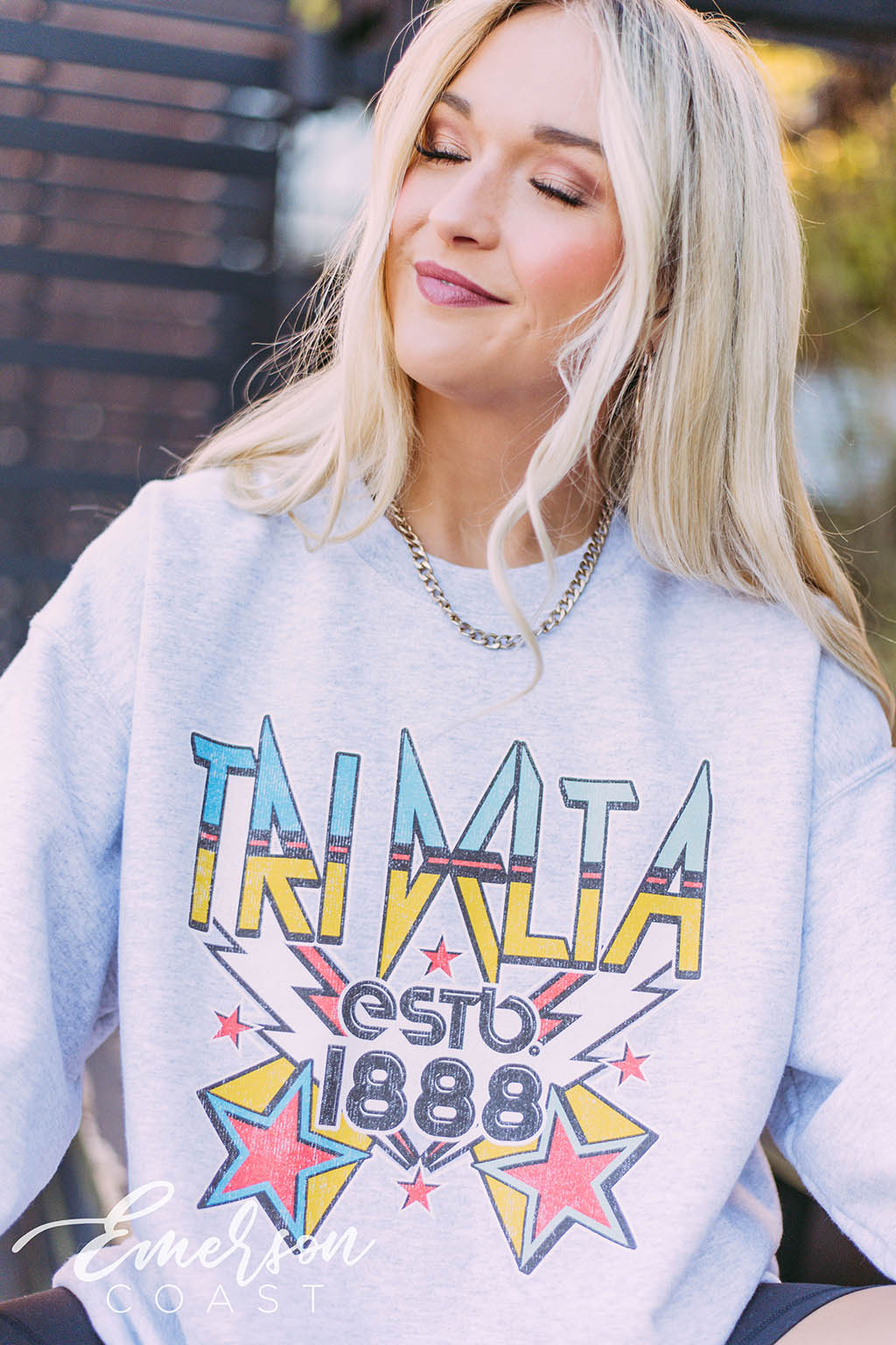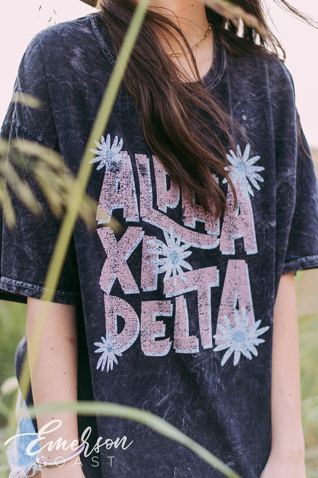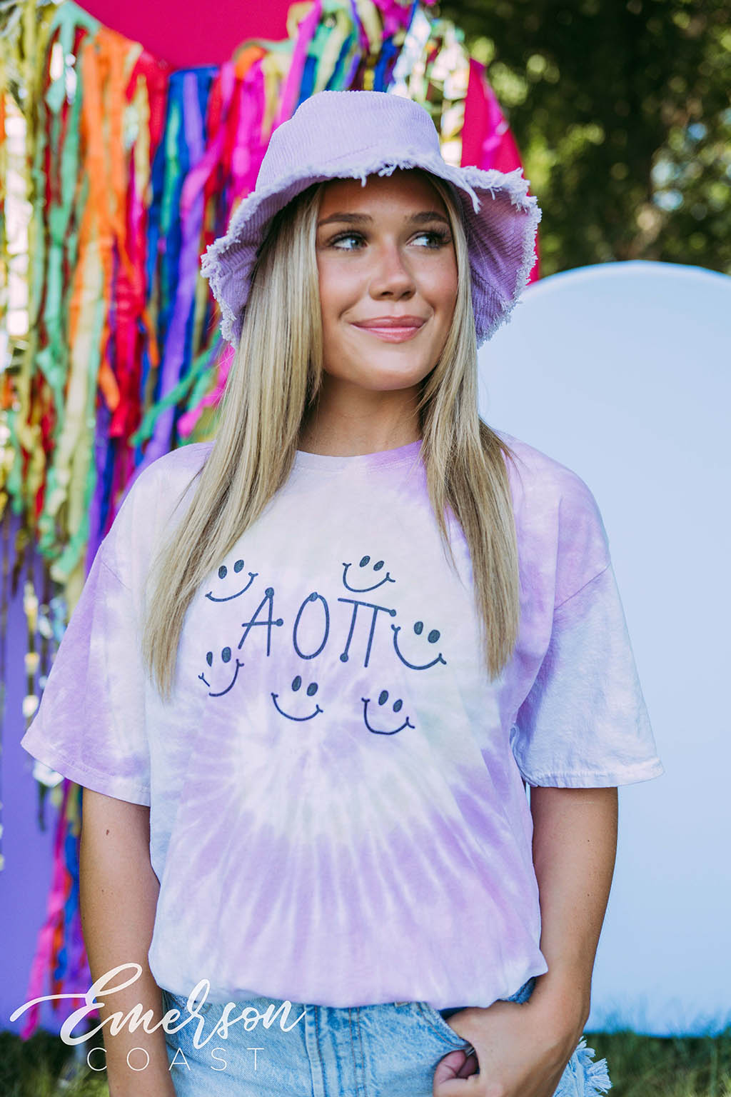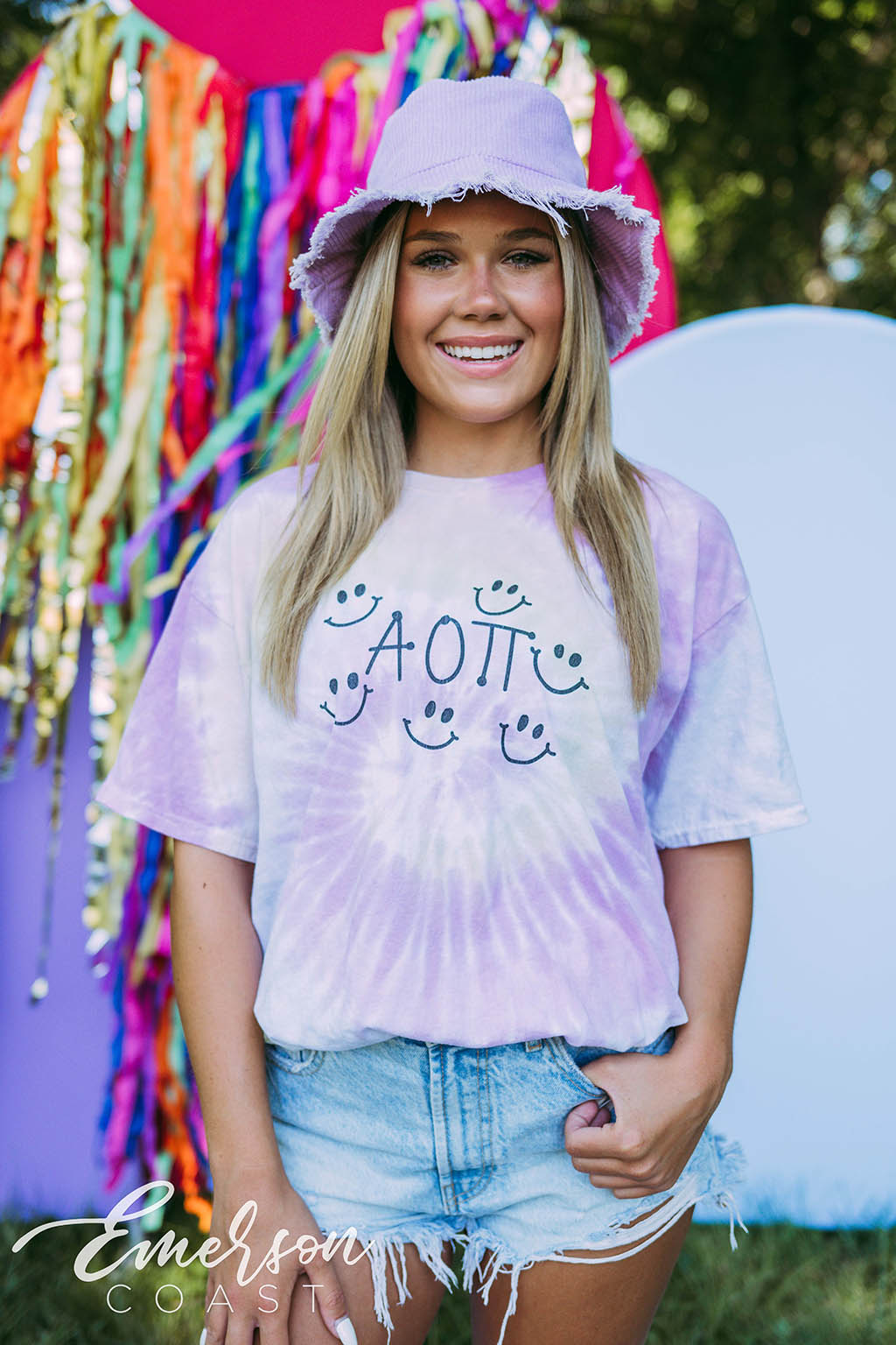 Tri Delta at Arkansas captured the magic of the Amalfi Coast for Bid Day with custom slouchy tees — white for members, cloud blue for new girls. Styled with flowy skirts and neck scarves, the whole vibe was straight out of a summer postcard.
