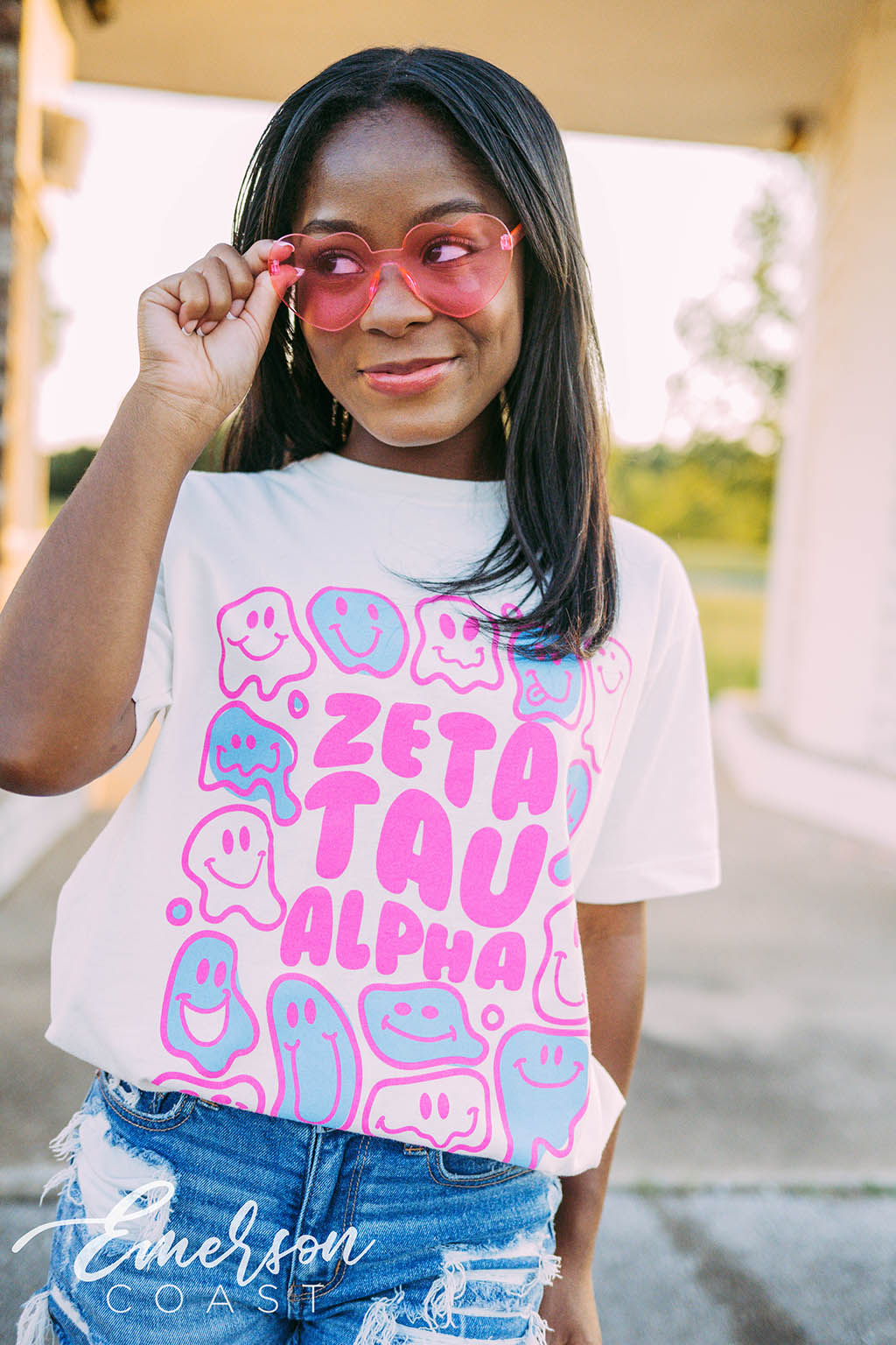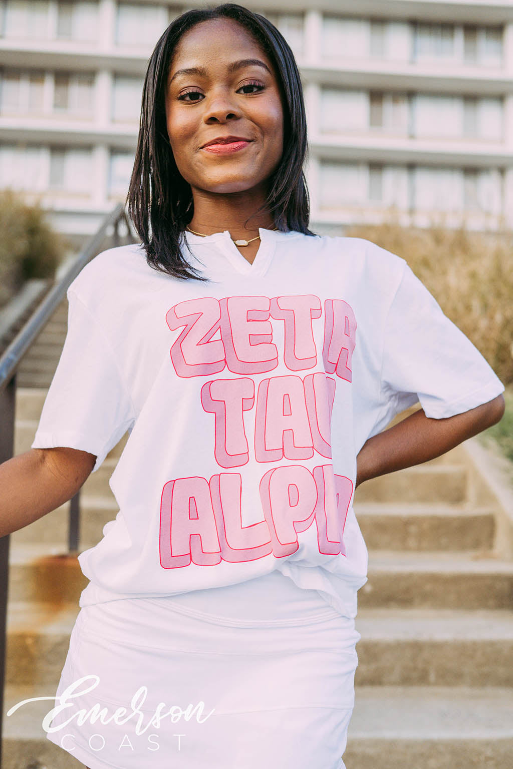 ZTA at Georgia Tech rocked custom teal slouchy tees for Recruitment, pairing them with white denim for a clean, polished look. The bold color choice made a statement while keeping things fun, fresh, and totally on brand.