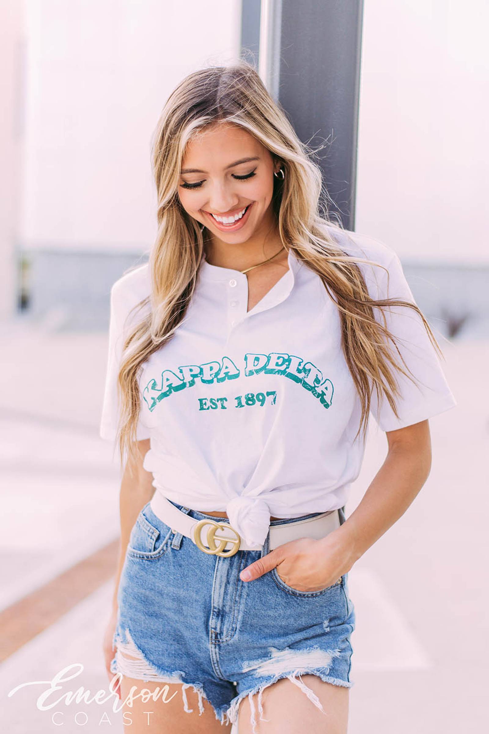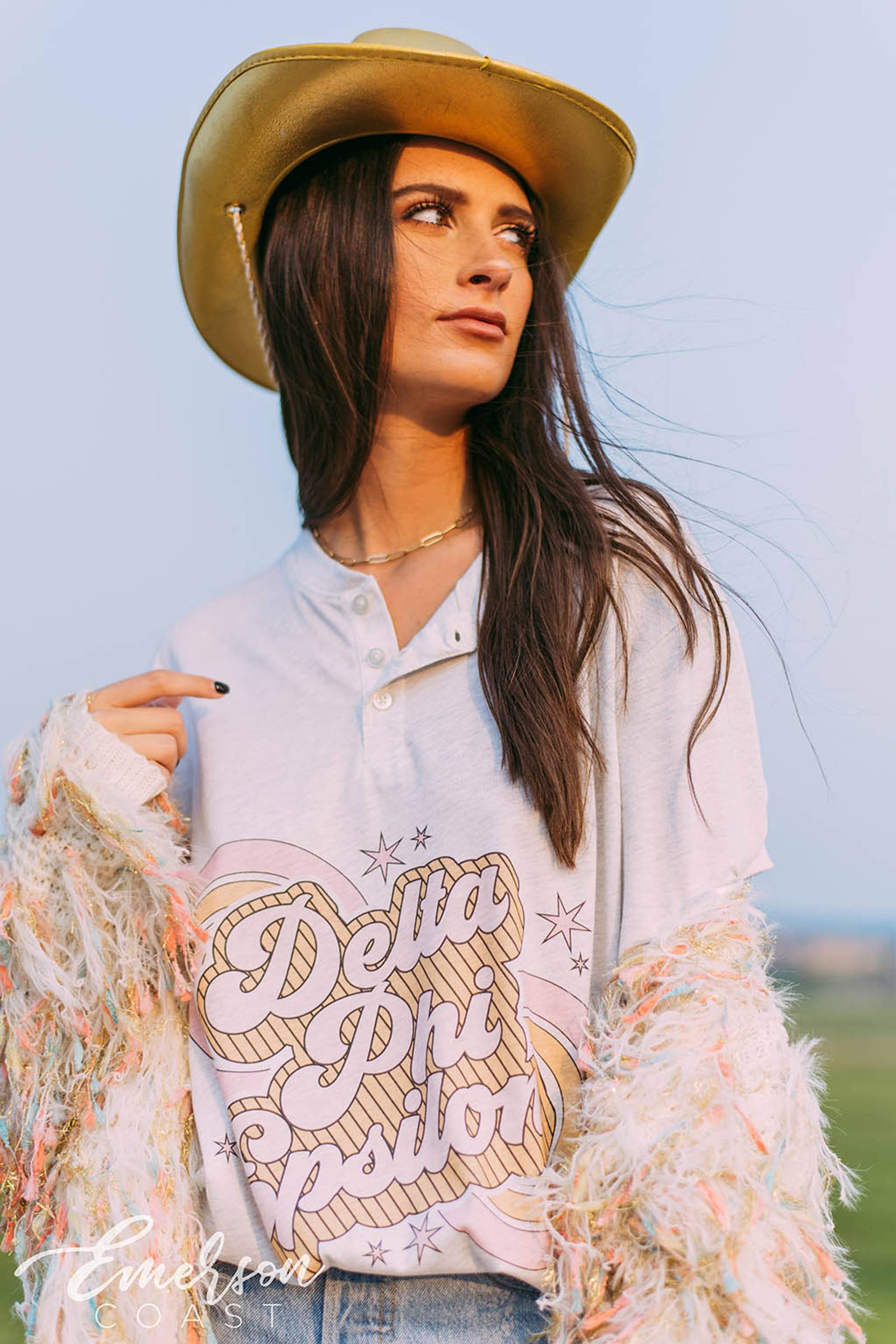 Make a pastel statement in the Delta Zeta PR Henley Tee!