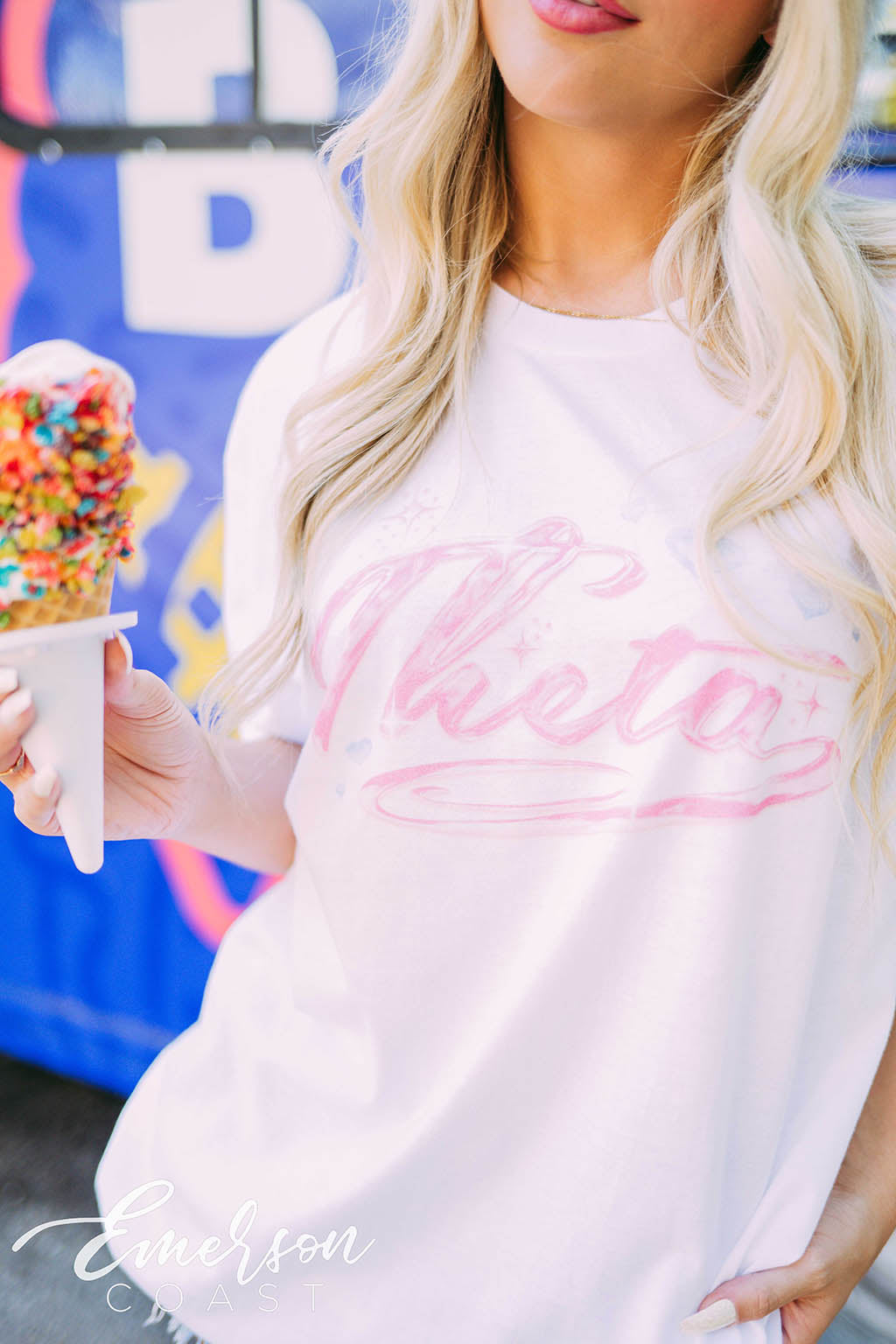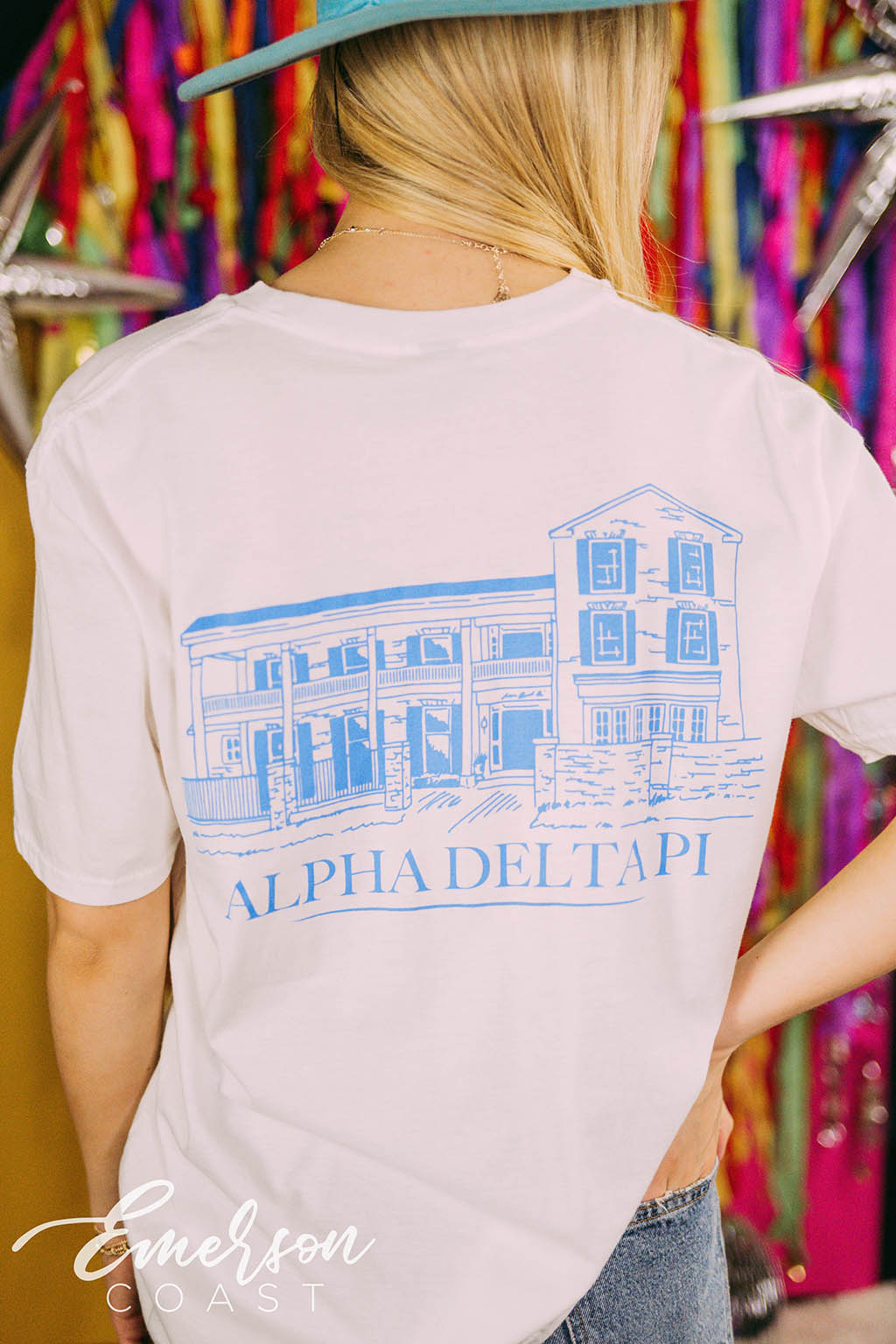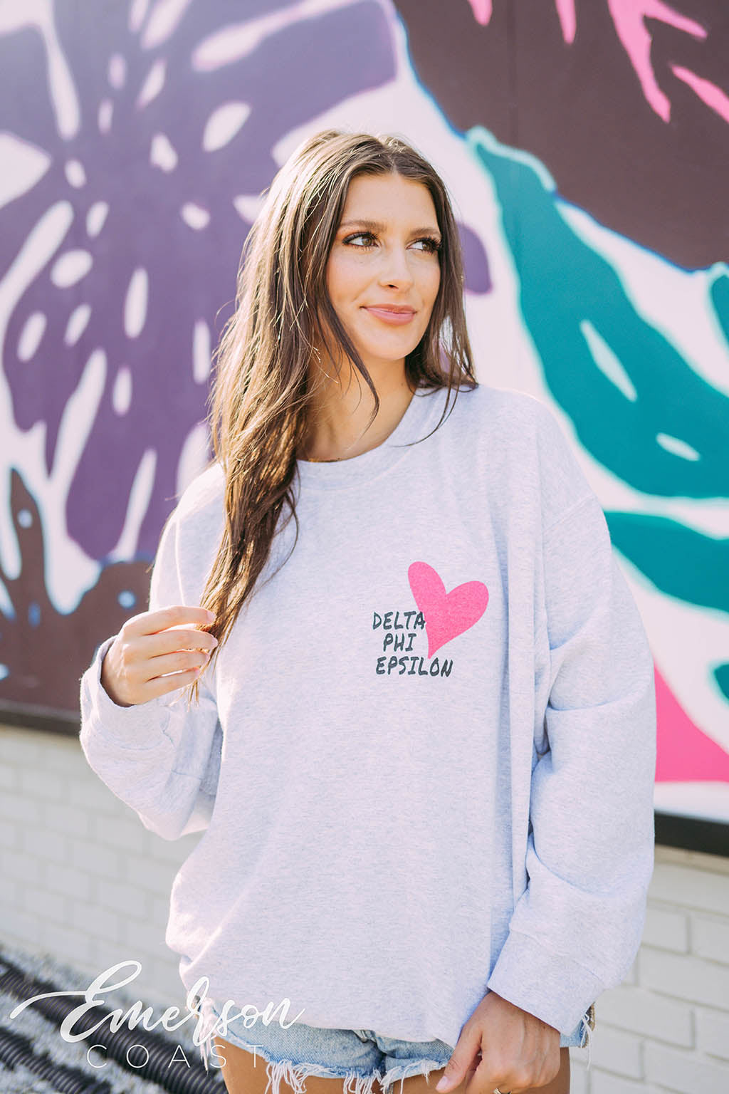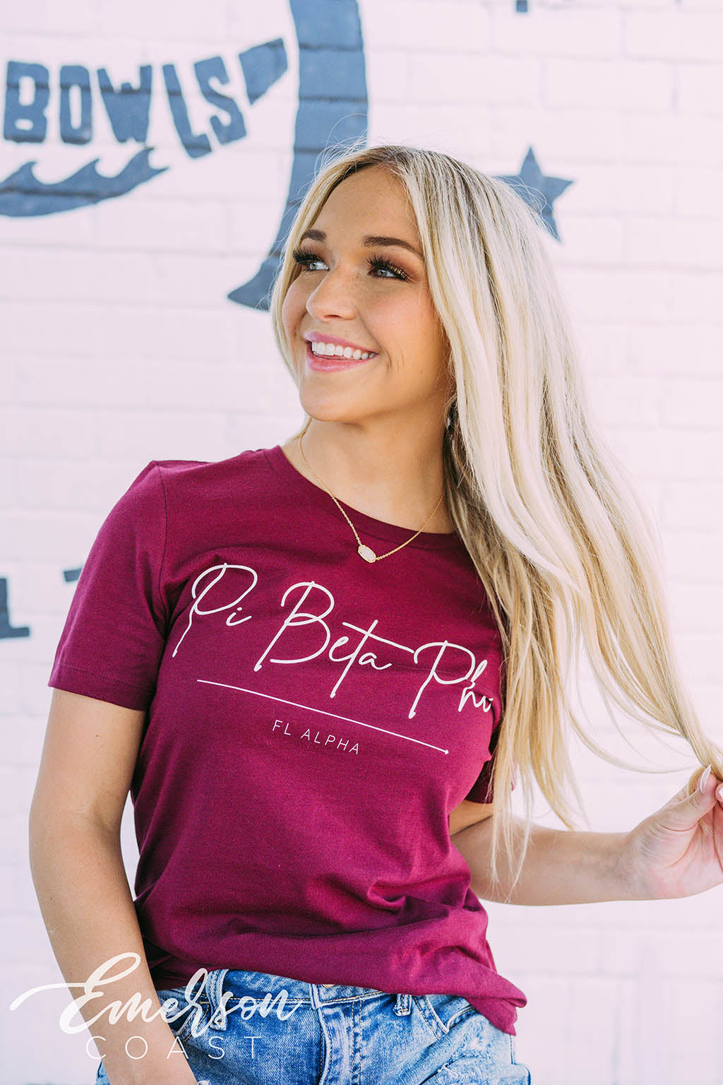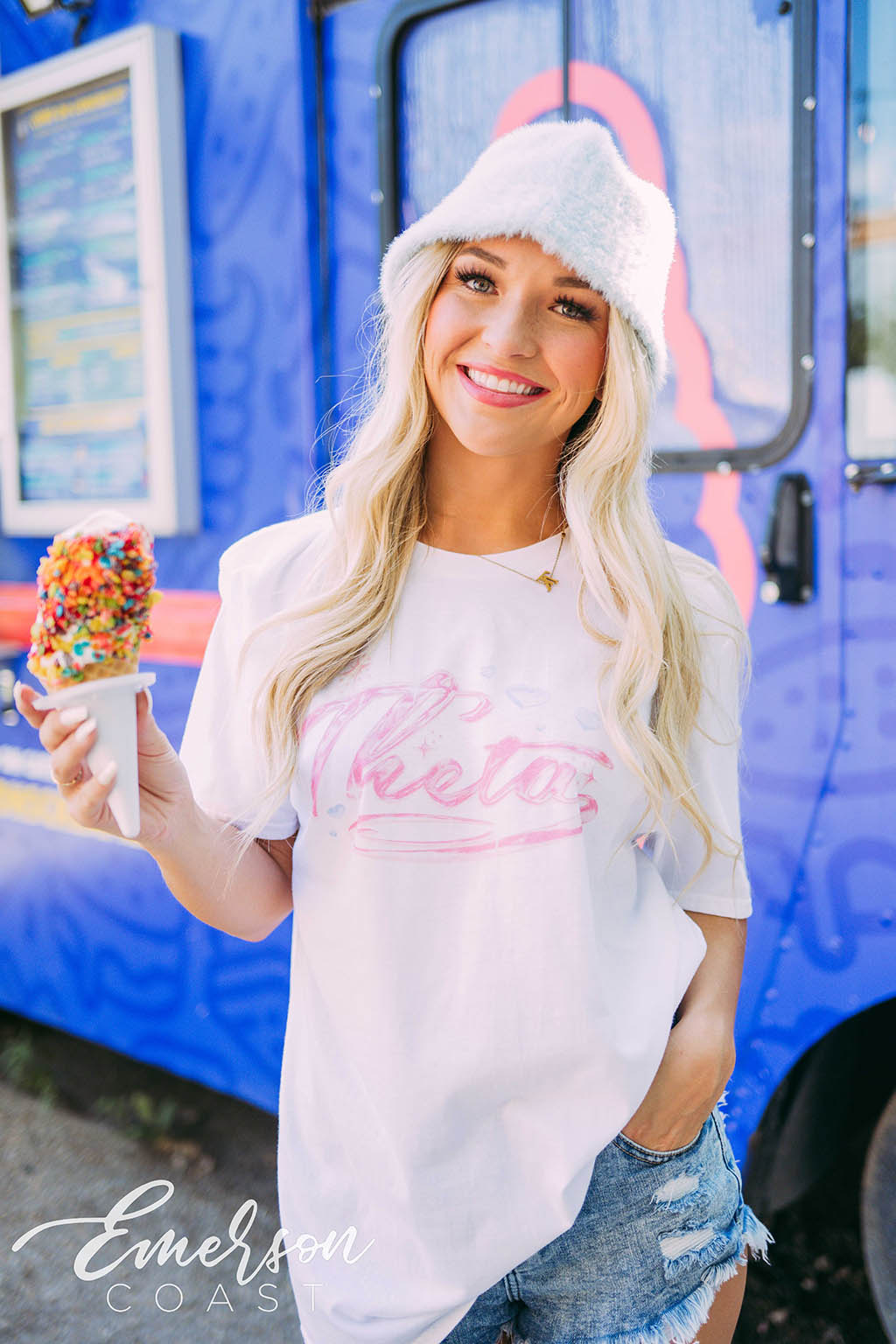 Pi Phi at Auburn made hearts melt with their white baby tees for Bid Day, featuring a sweet red heart and the phrase “I’m so happy we met.” A perfect, feel-good look to kick off sisterhood with major charm.