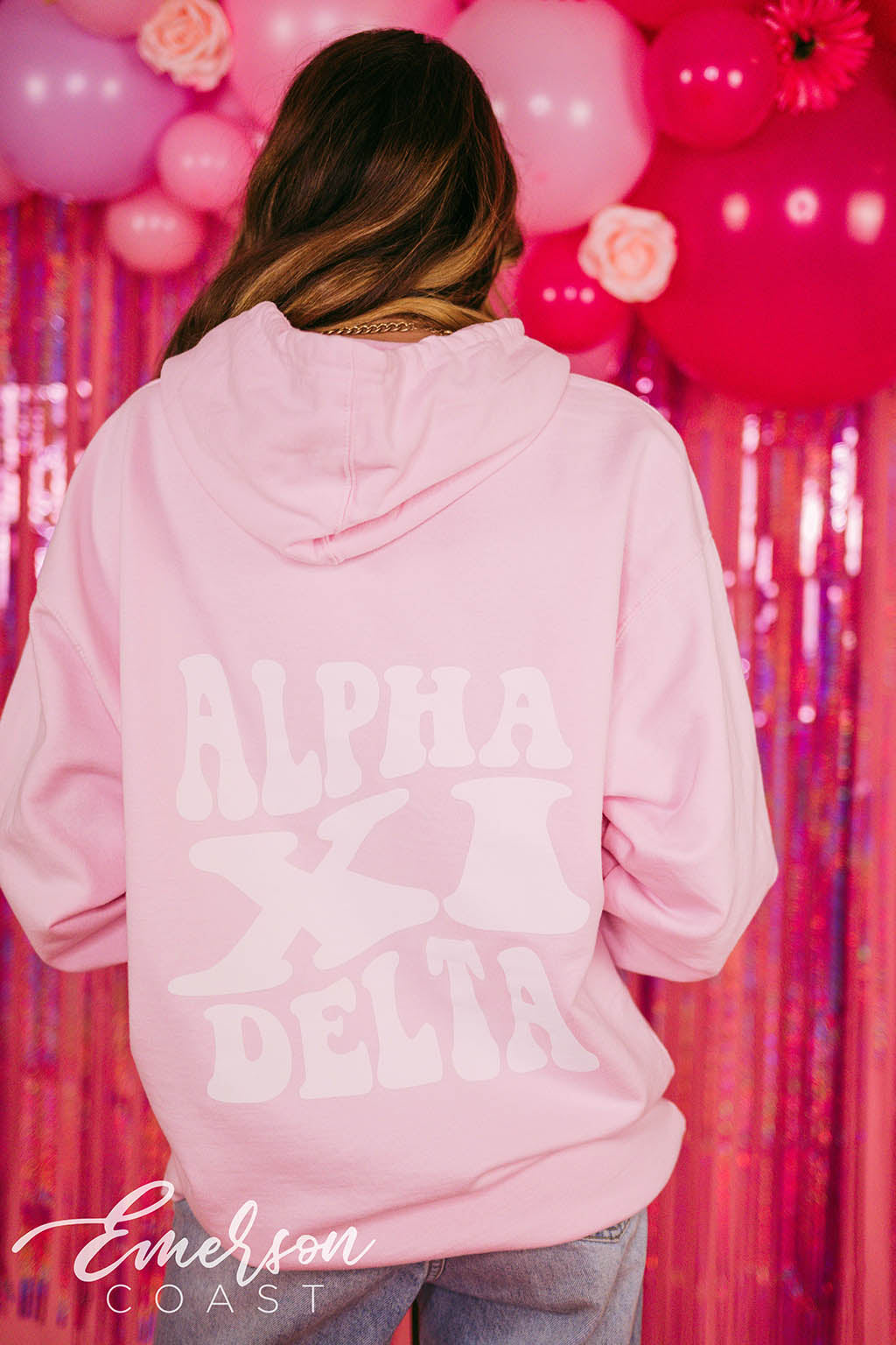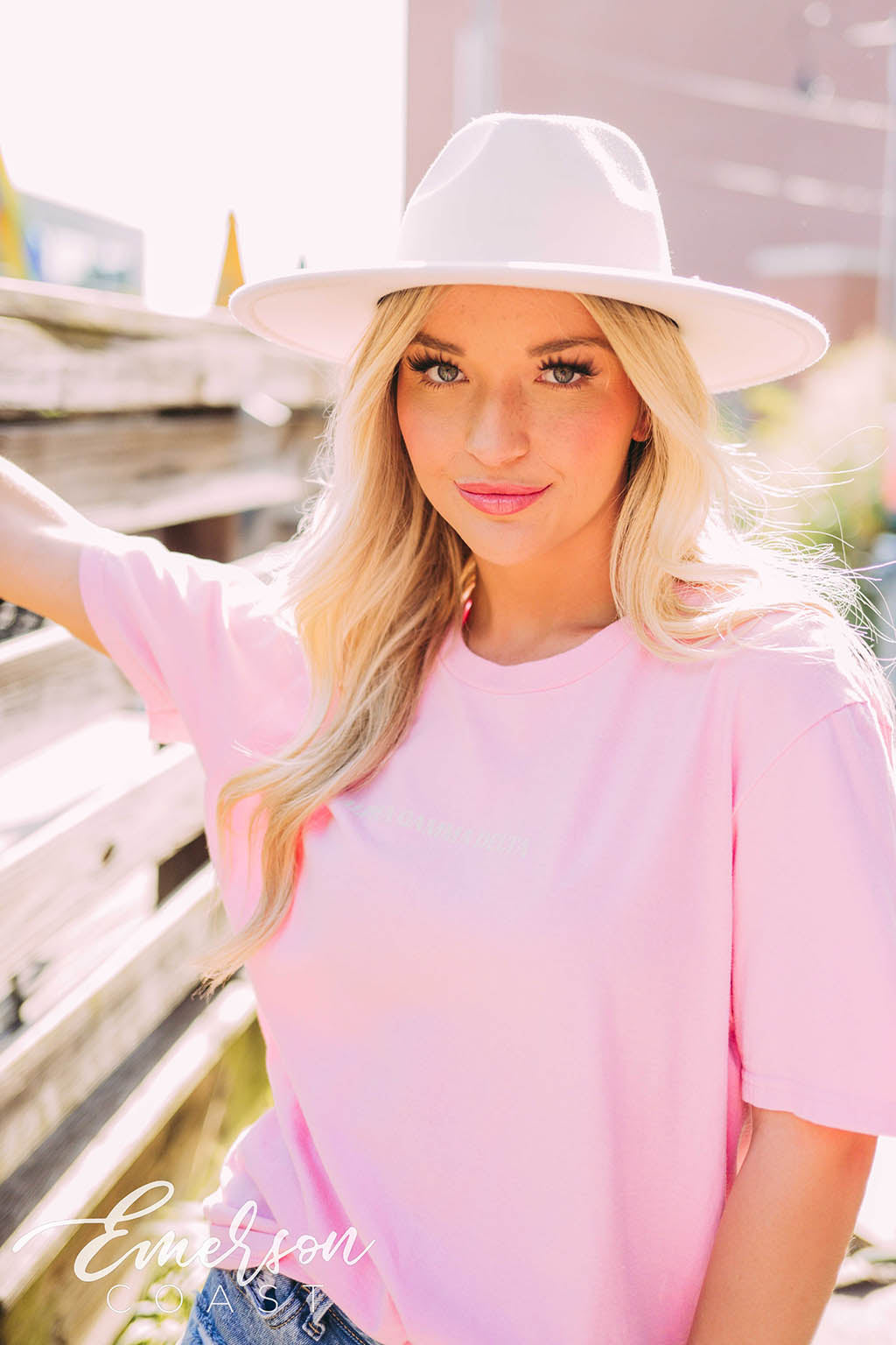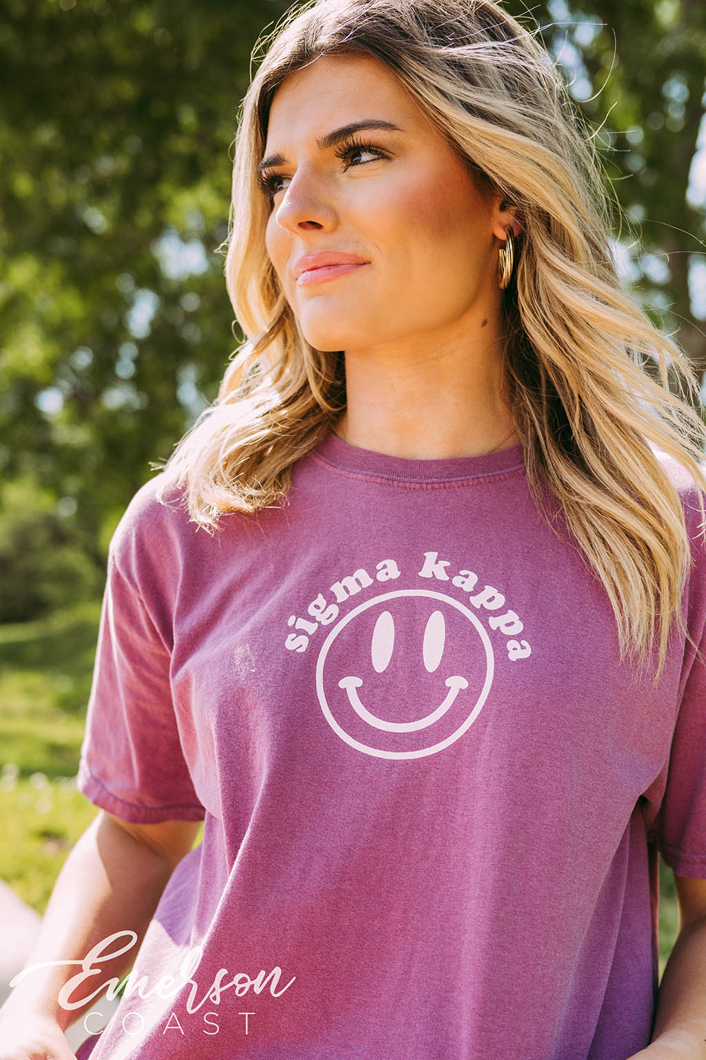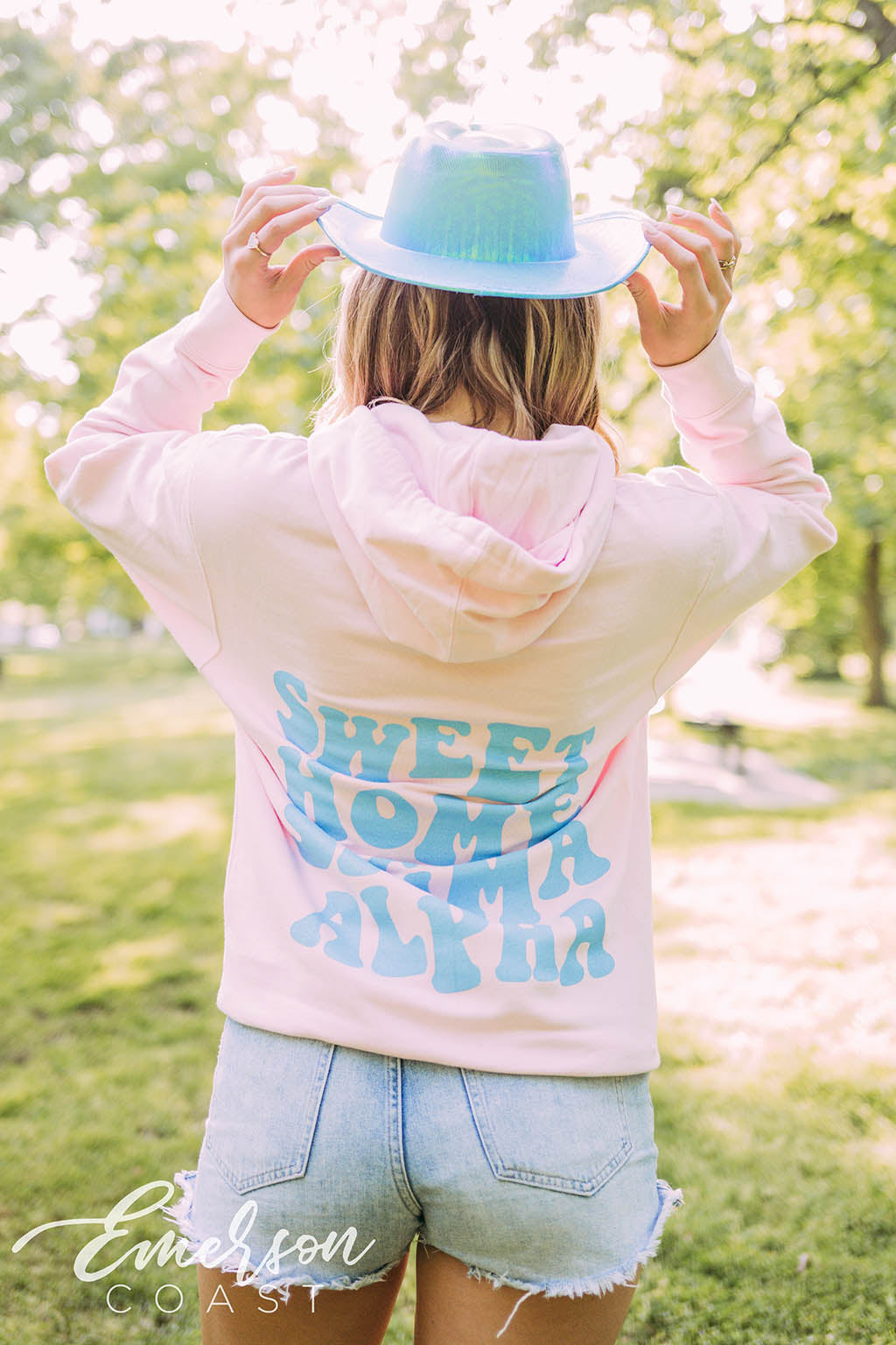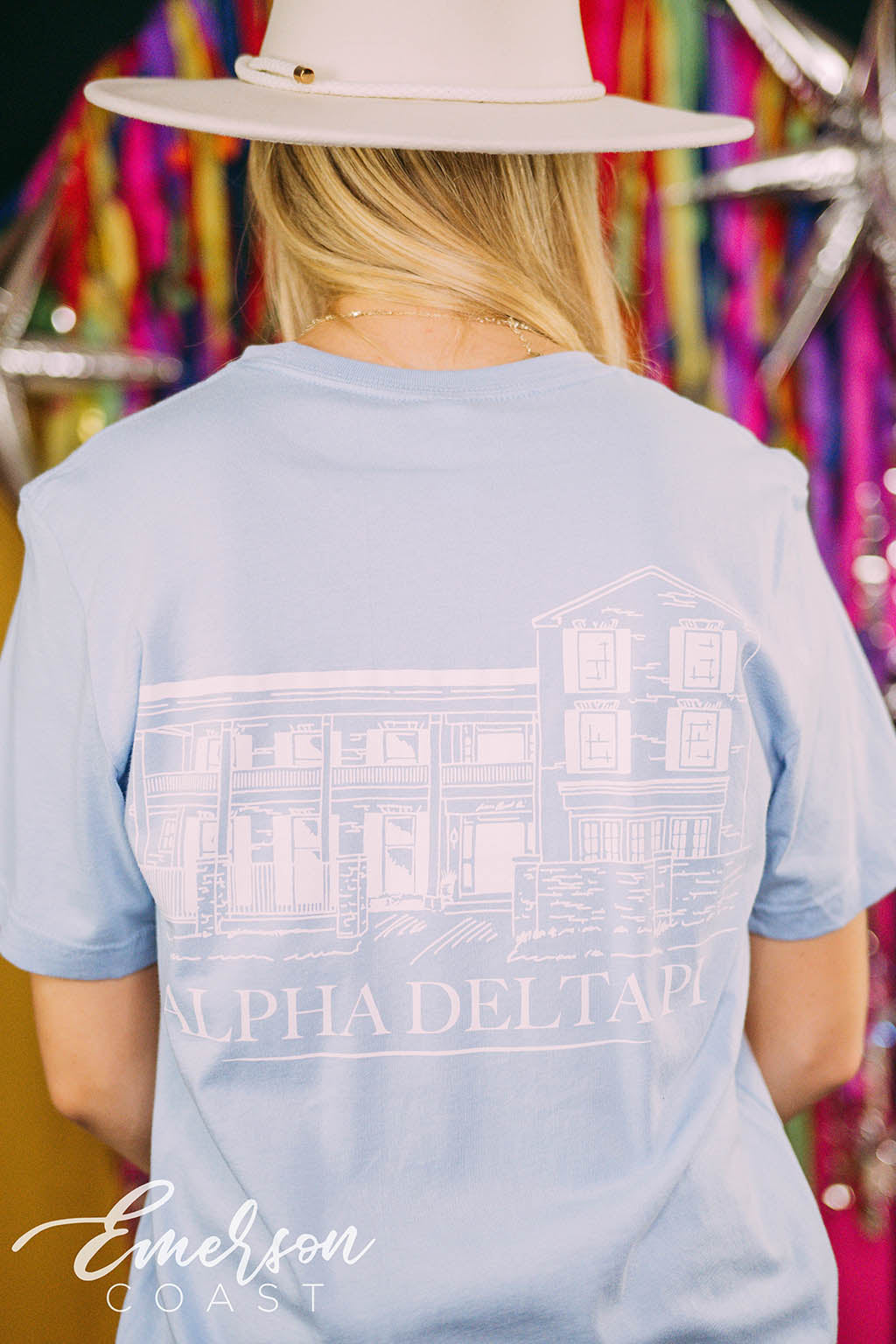 Pi Phi at Auburn made hearts melt with their white baby tees for Bid Day, featuring a sweet red heart and the phrase “I’m so happy we met.” A perfect, feel-good look to kick off sisterhood with major charm.