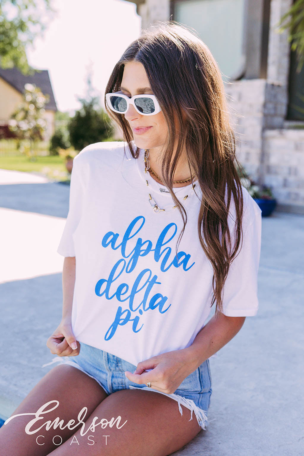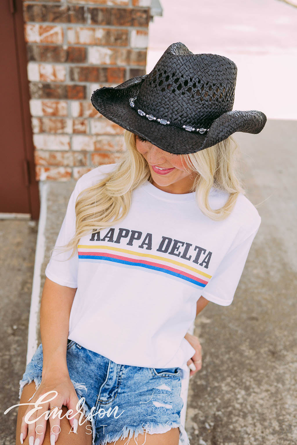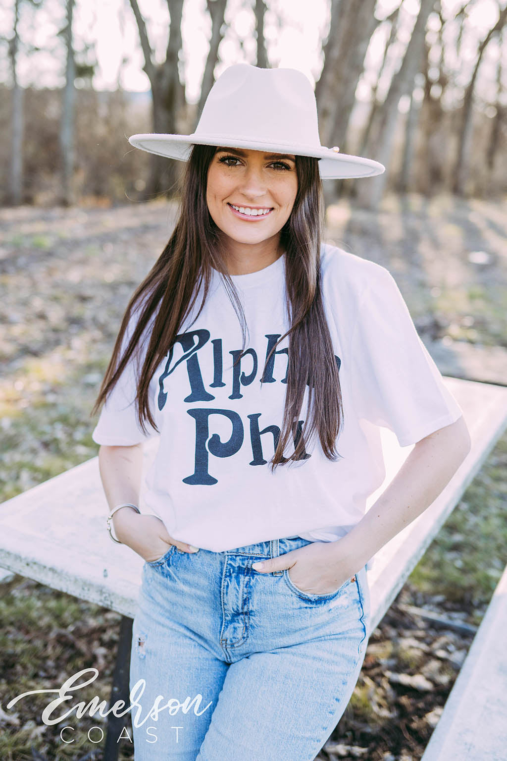 KKG at Florida State kept it effortlessly cool for Open Round with white slouchy tees styled with classic denim. Simple, chic, and easy to accessorize — the perfect uniform for making first impressions and showing off their signature style.