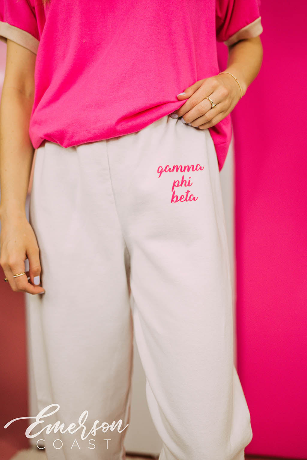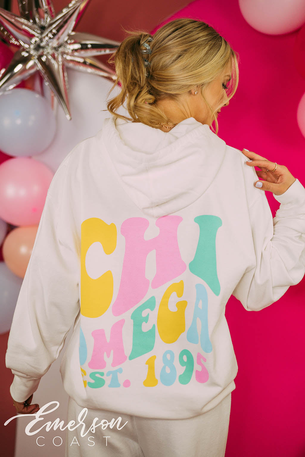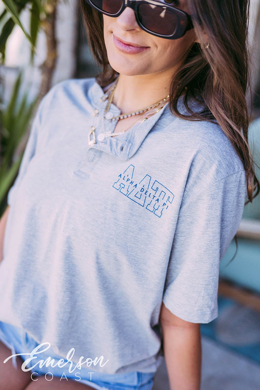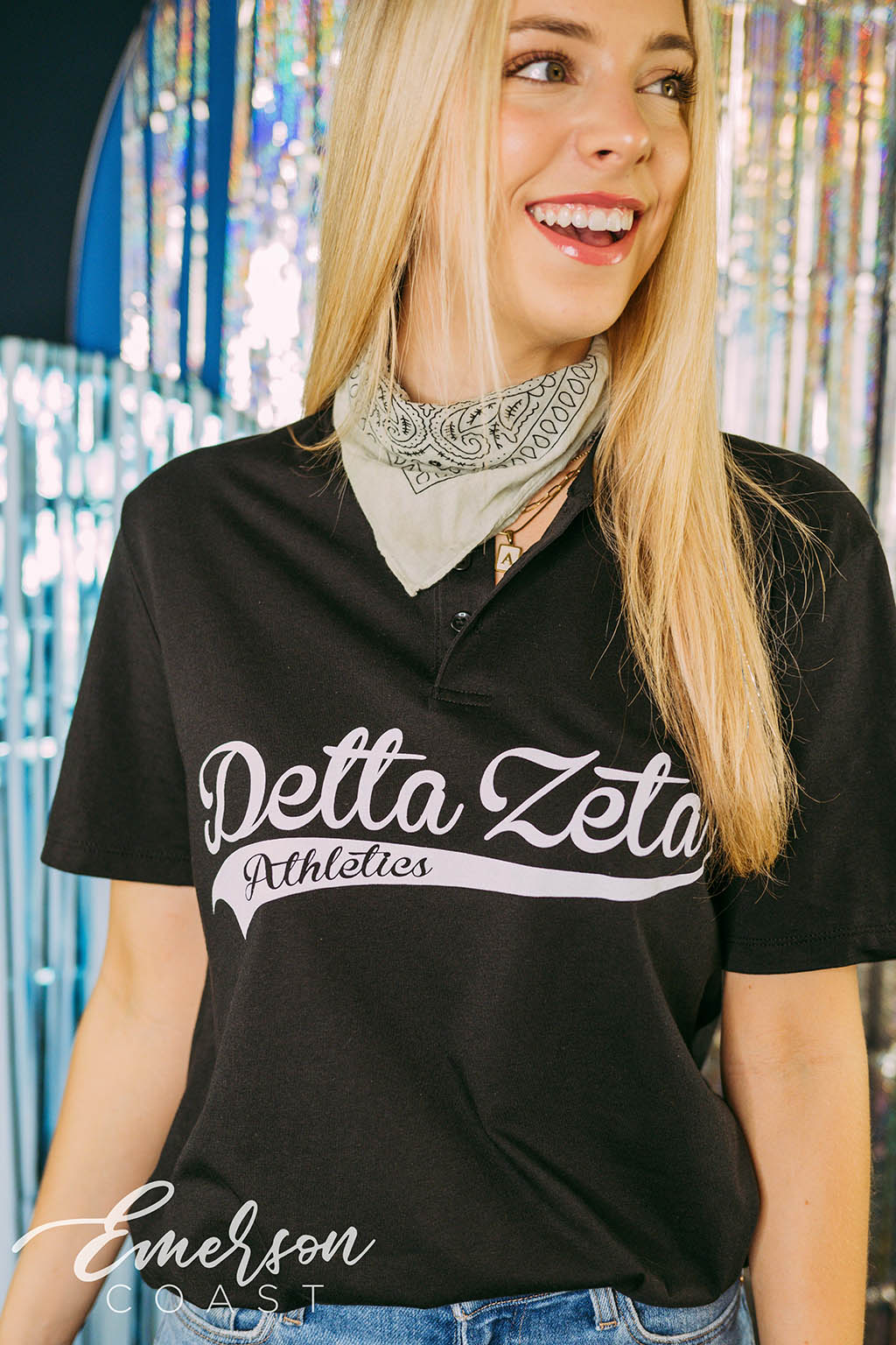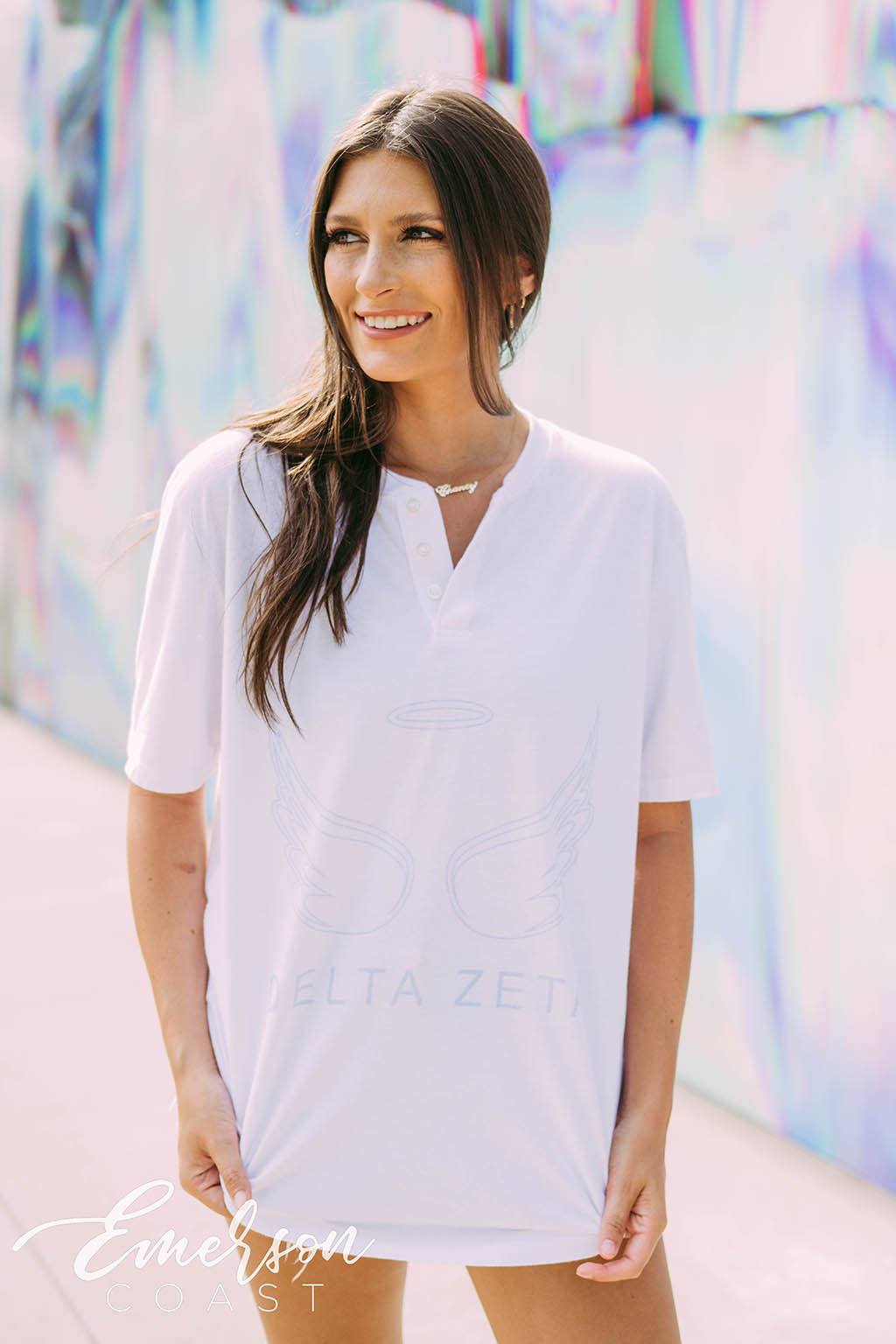 Delta Gamma at Texas A&M kept things timeless with custom white letter jerseys featuring bold Greek letters, paired with crisp white tanks for Bid Day. Clean, elevated, and full of spirit — their new members definitely felt the love in style!