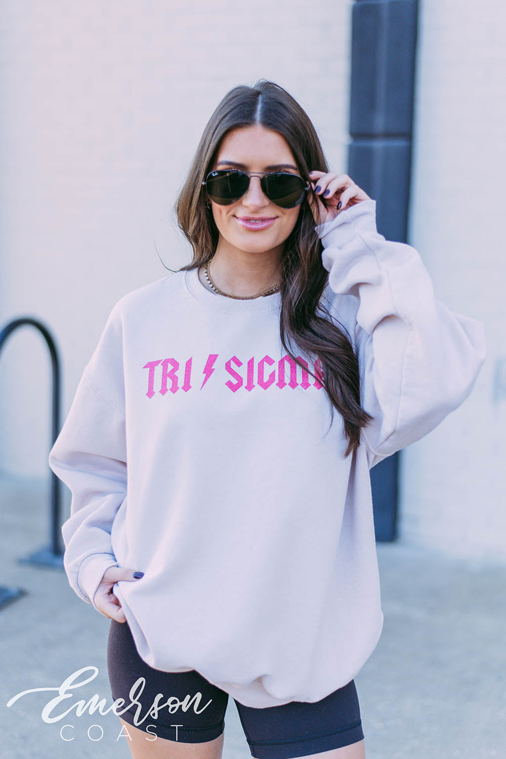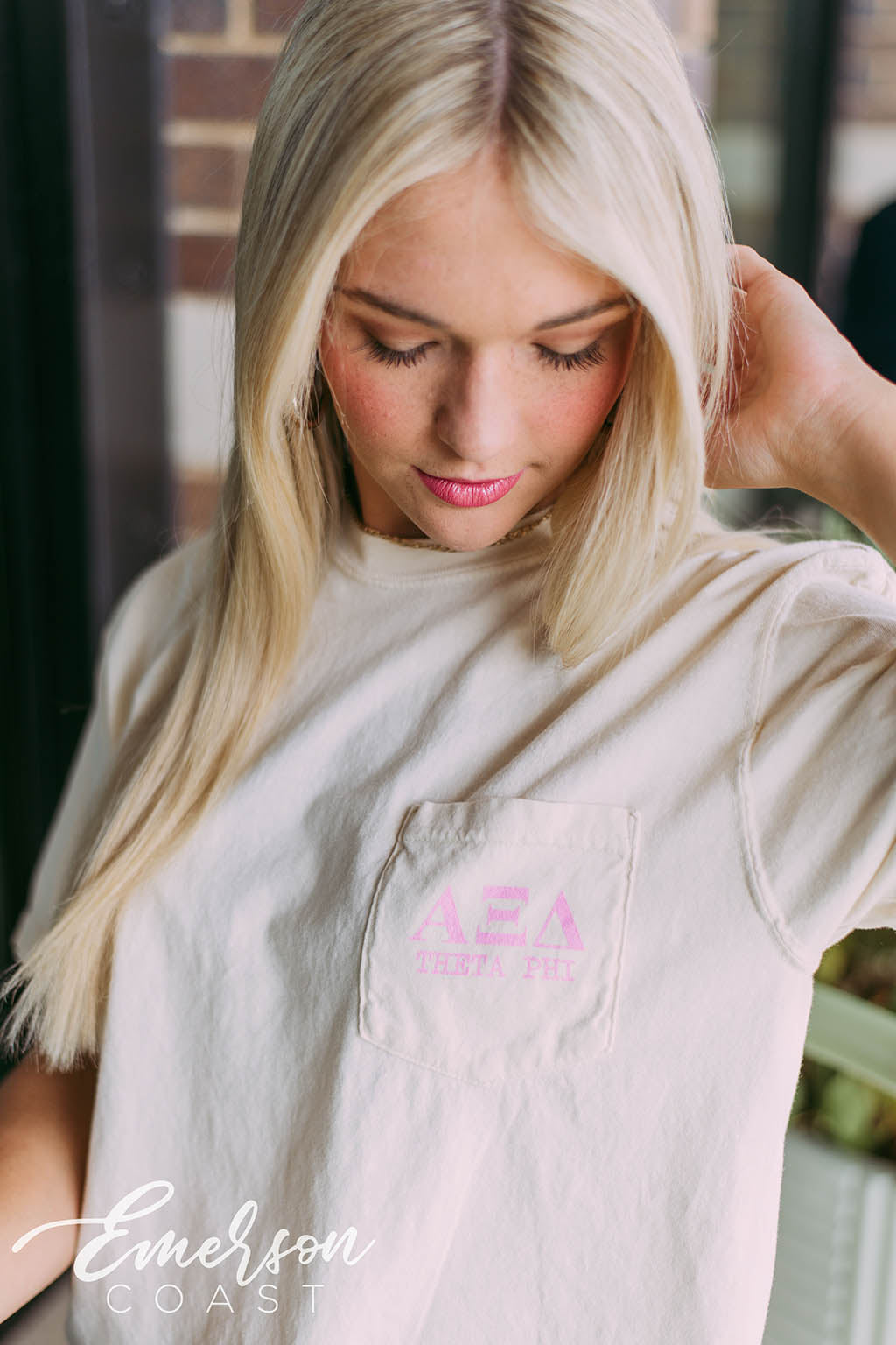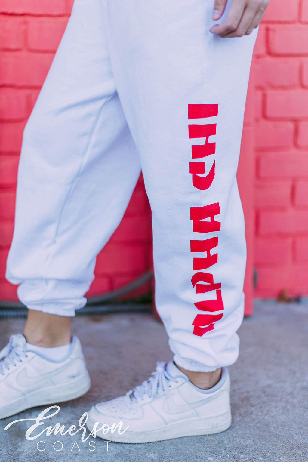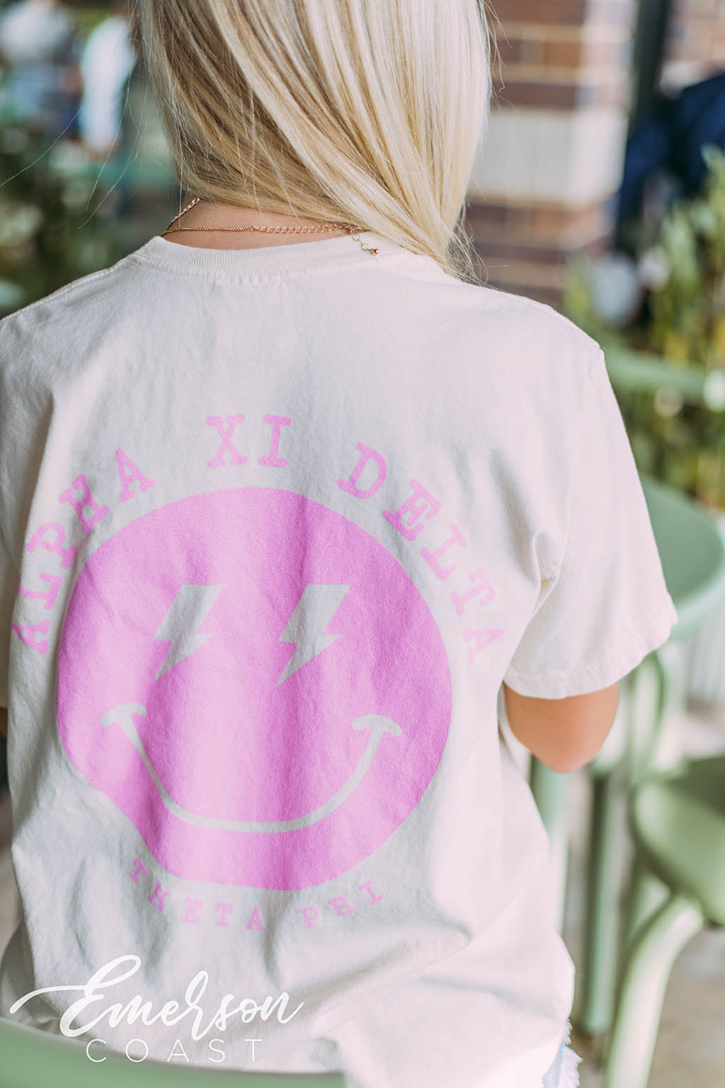 Pi Phi at Auburn made hearts melt with their white baby tees for Bid Day, featuring a sweet red heart and the phrase “I’m so happy we met.” A perfect, feel-good look to kick off sisterhood with major charm.