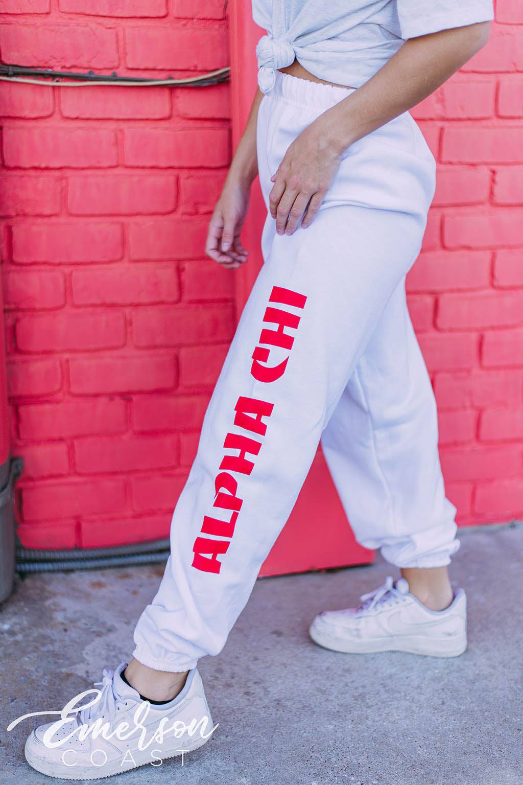Delta Gamma at Texas A&M kept things timeless with custom white letter jerseys featuring bold Greek letters, paired with crisp white tanks for Bid Day. Clean, elevated, and full of spirit — their new members definitely felt the love in style!