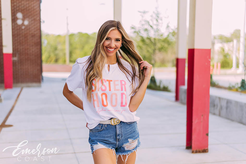 The Notch Tee is an Emerson Coast chapter favorite that is is perfect for all types of events. It is flattering on all body types which means it's ideal for any event such as recruitment, philanthropy, and spring break. The tee features a little notch on the neckline, perfect for accessorizing. The Notch tee is a spring staple that you can easily dress up or dress down. Mix up your everyday tshirt with the notch tee.