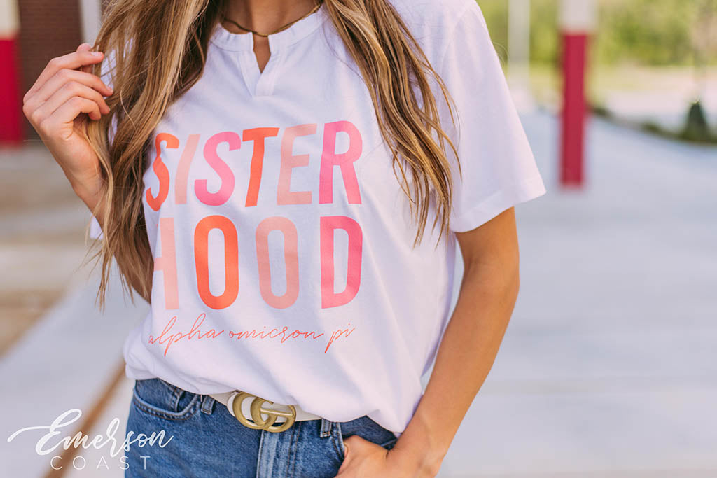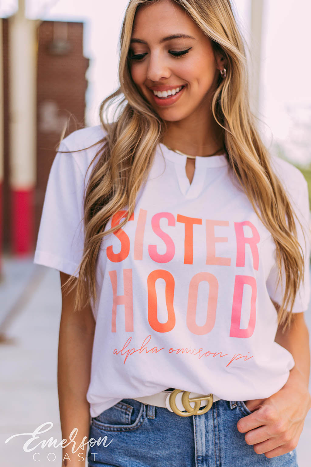 You'll be feeling peachy in the Alpha Omicron Pi Sisterhood Notch Tee!