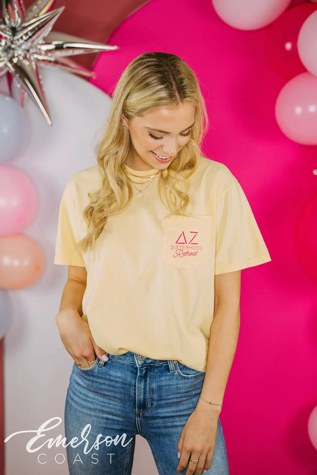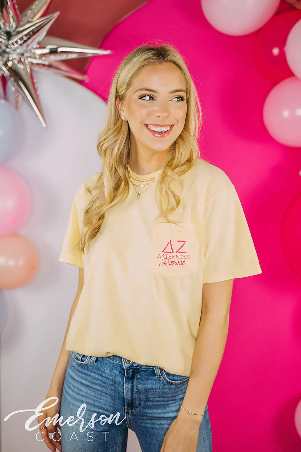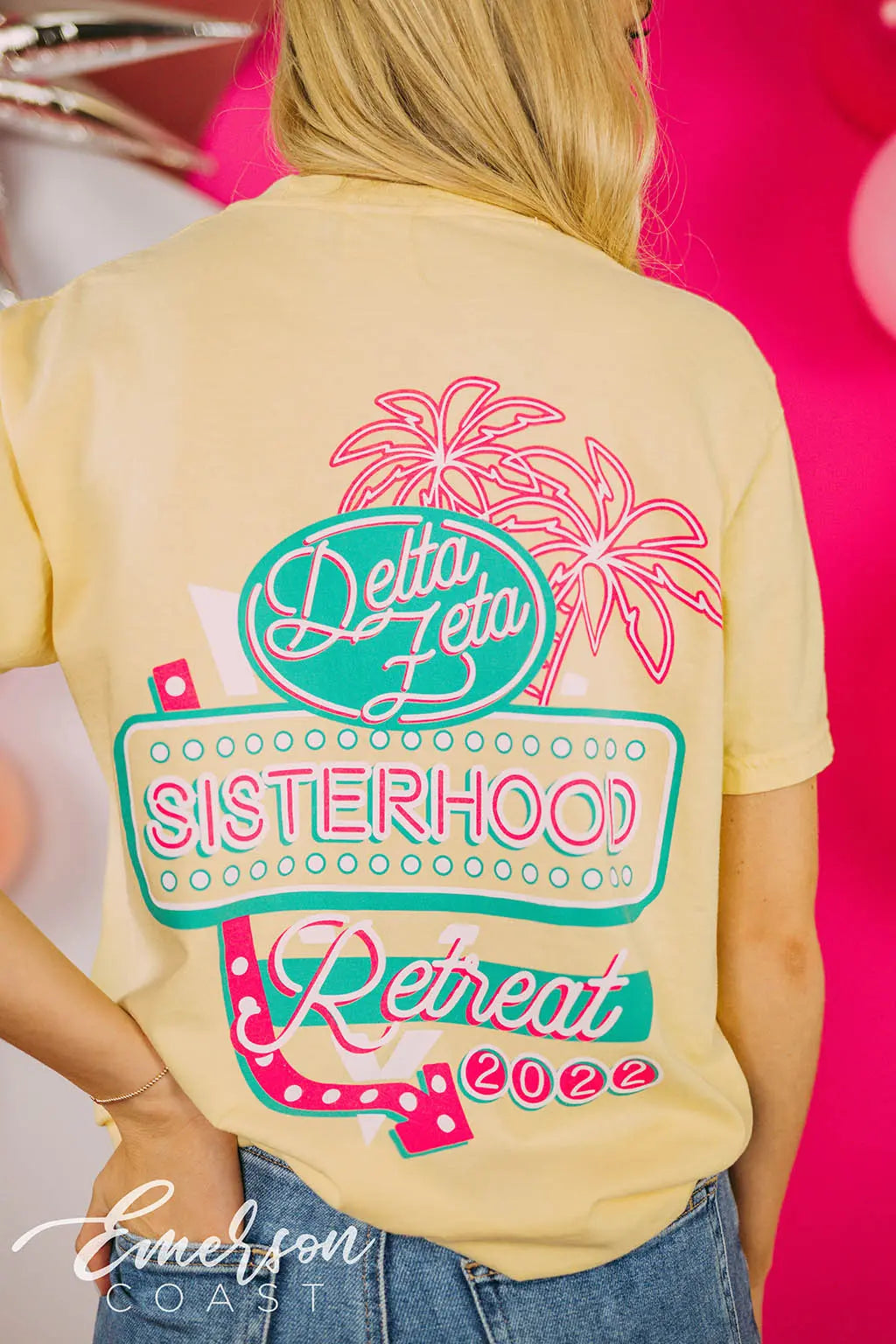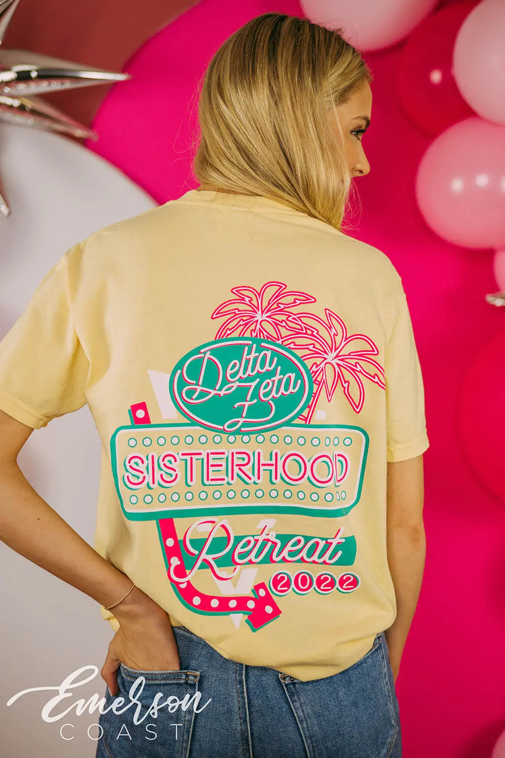 Go back in time with the Delta Zeta Hollywood Sisterhood Retreat Tee!