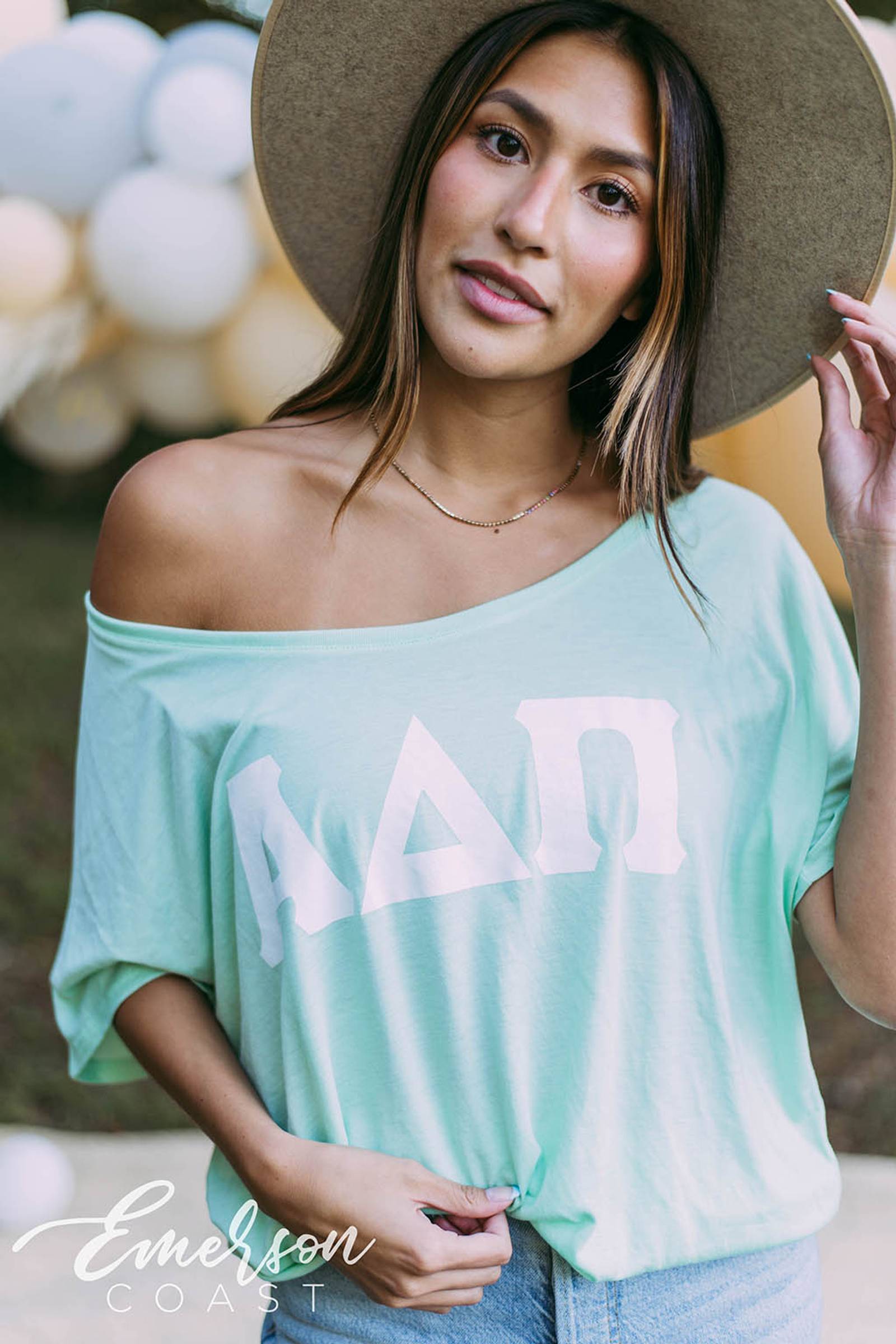 This mint slouchy tee is such a fun pop of color to add to any chapter event.