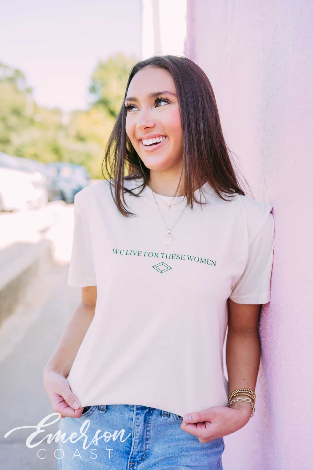 KKG at Florida State kept it effortlessly cool for Open Round with white slouchy tees styled with classic denim. Simple, chic, and easy to accessorize — the perfect uniform for making first impressions and showing off their signature style.