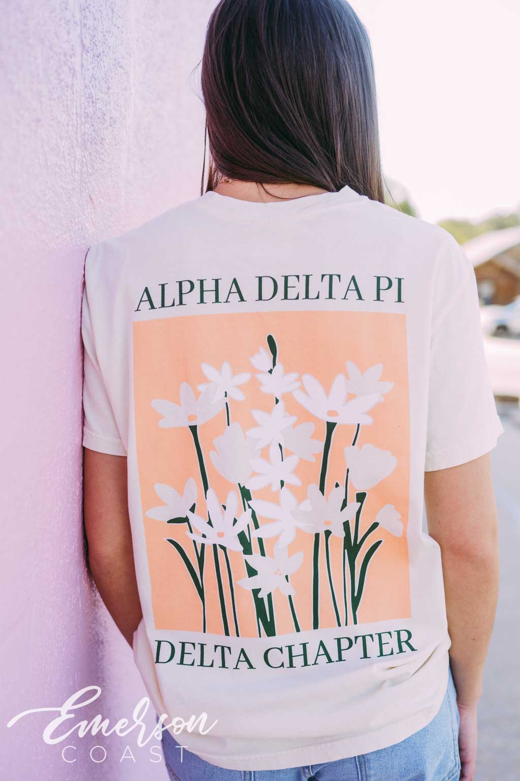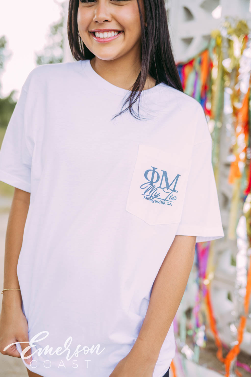 Pi Phi at Auburn made hearts melt with their white baby tees for Bid Day, featuring a sweet red heart and the phrase “I’m so happy we met.” A perfect, feel-good look to kick off sisterhood with major charm.