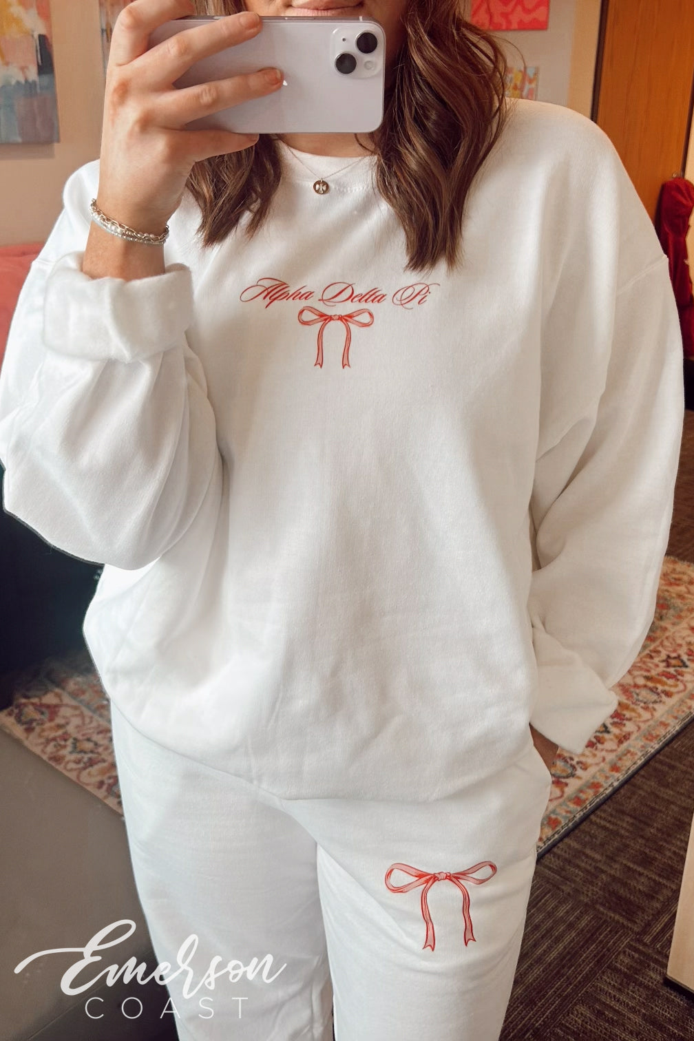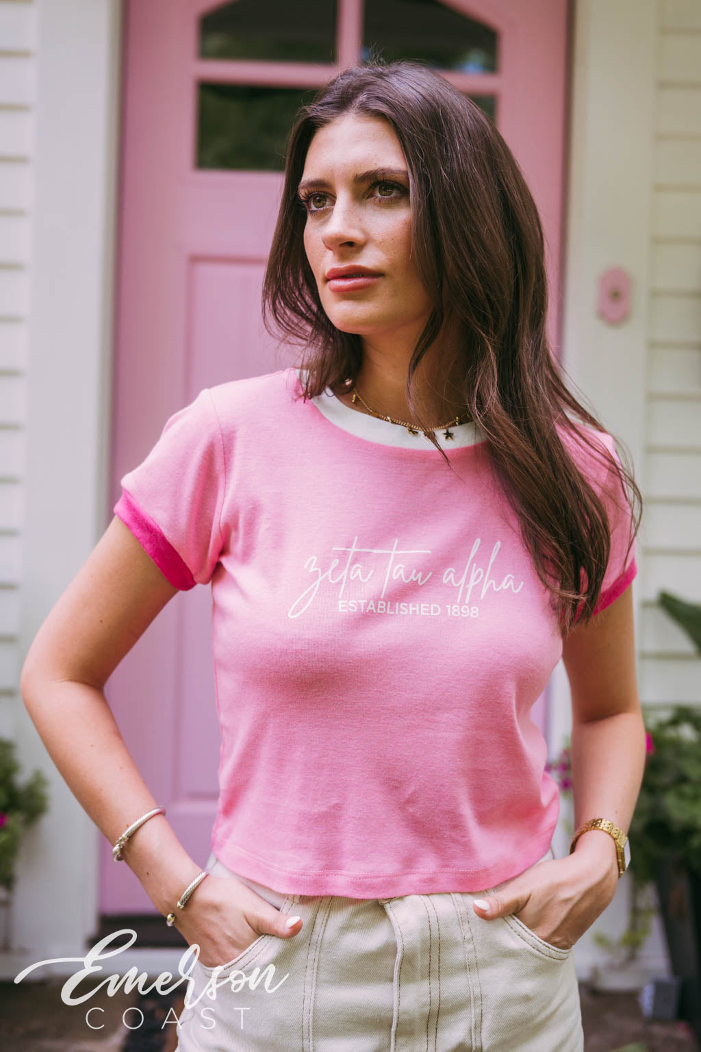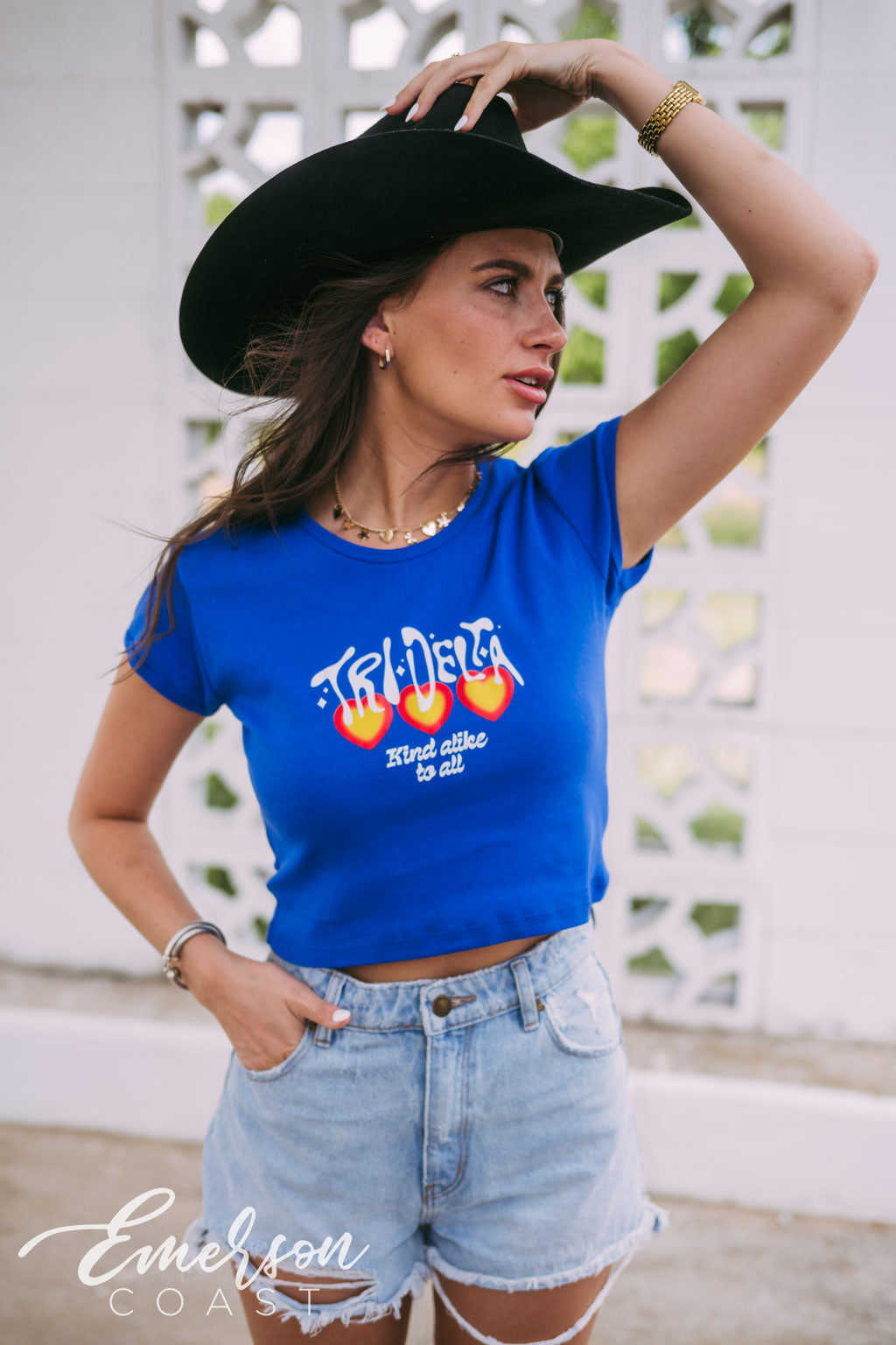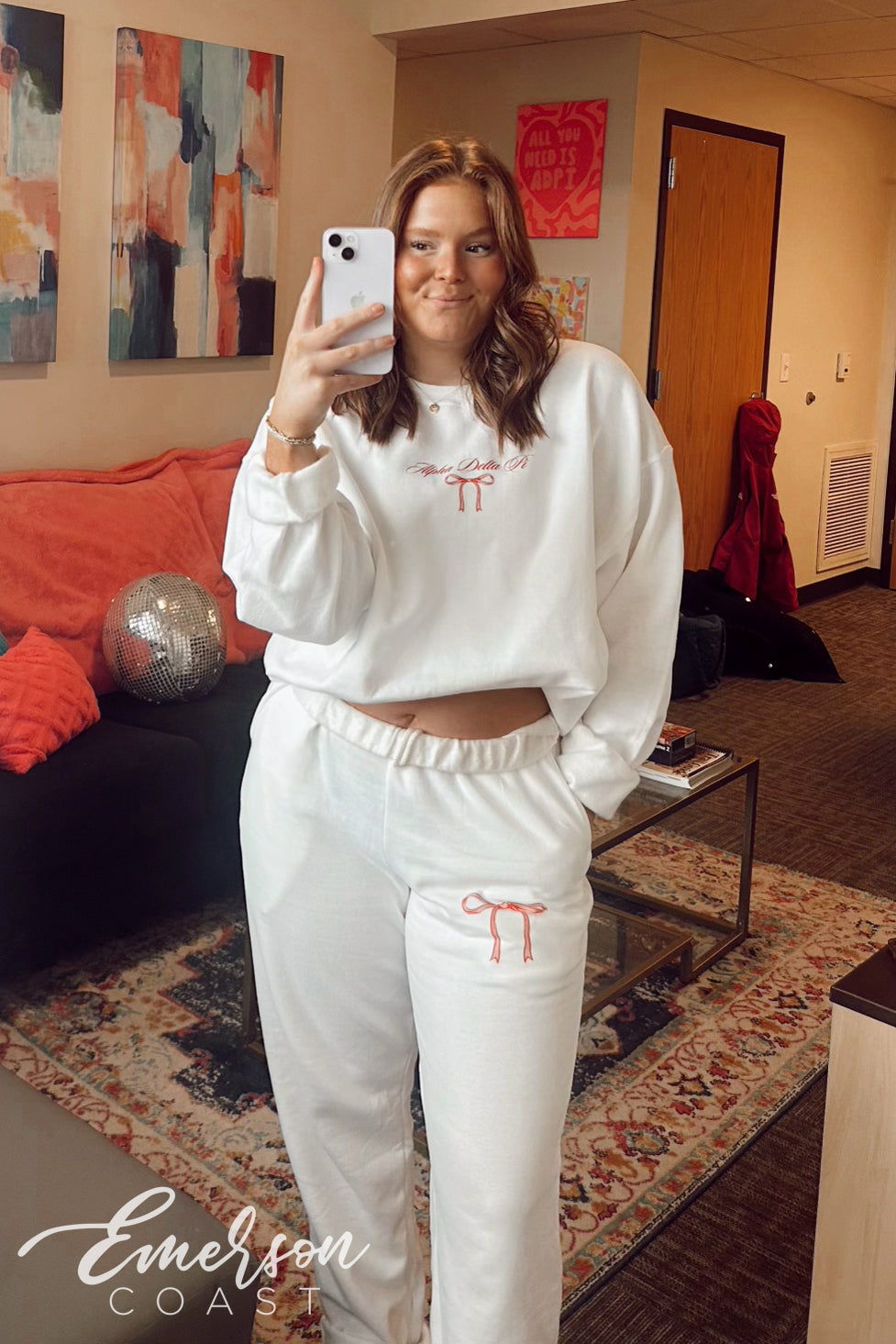 Pi Phi at Auburn made hearts melt with their white baby tees for Bid Day, featuring a sweet red heart and the phrase “I’m so happy we met.” A perfect, feel-good look to kick off sisterhood with major charm.