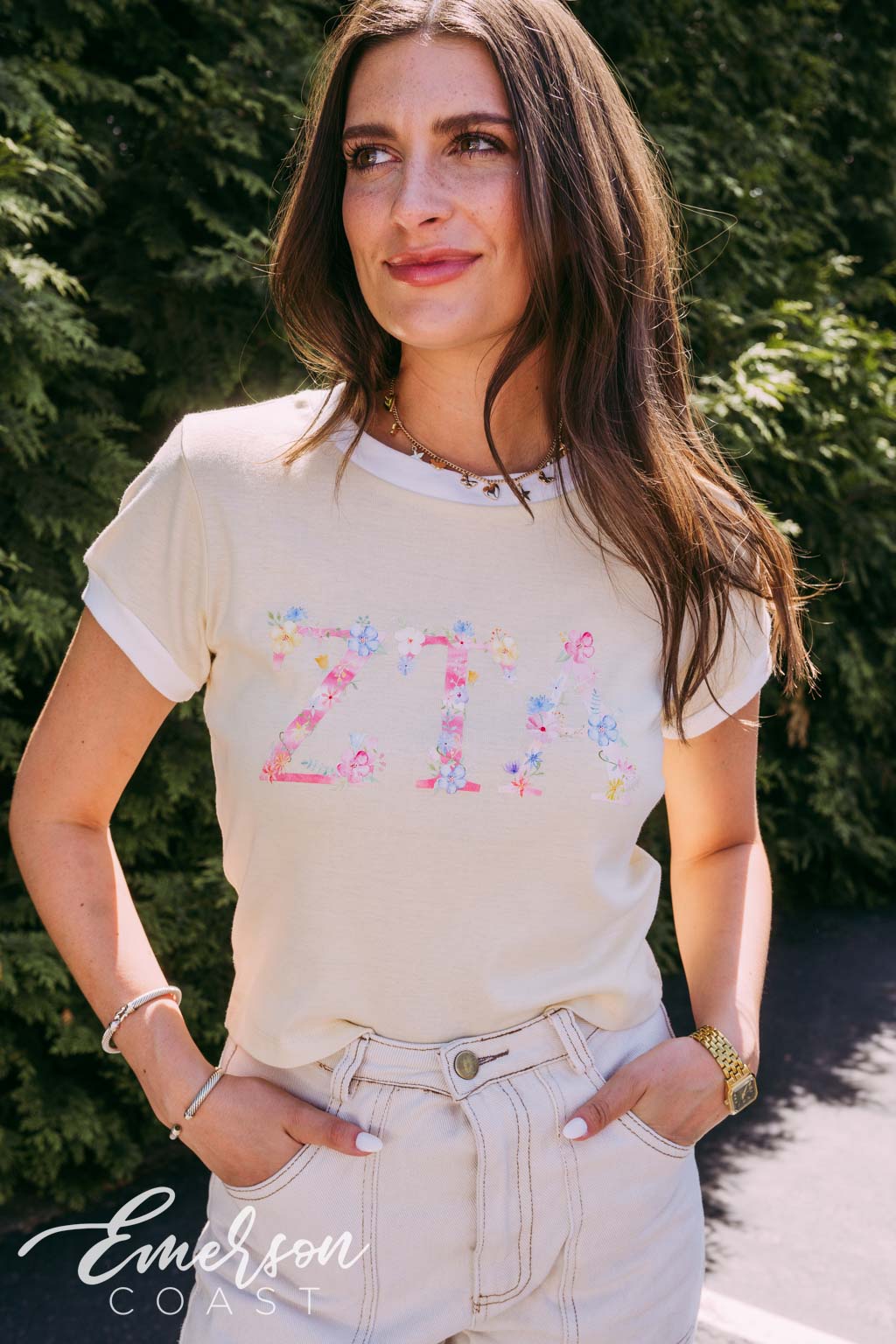 KKG at Florida State kept it effortlessly cool for Open Round with white slouchy tees styled with classic denim. Simple, chic, and easy to accessorize — the perfect uniform for making first impressions and showing off their signature style.
