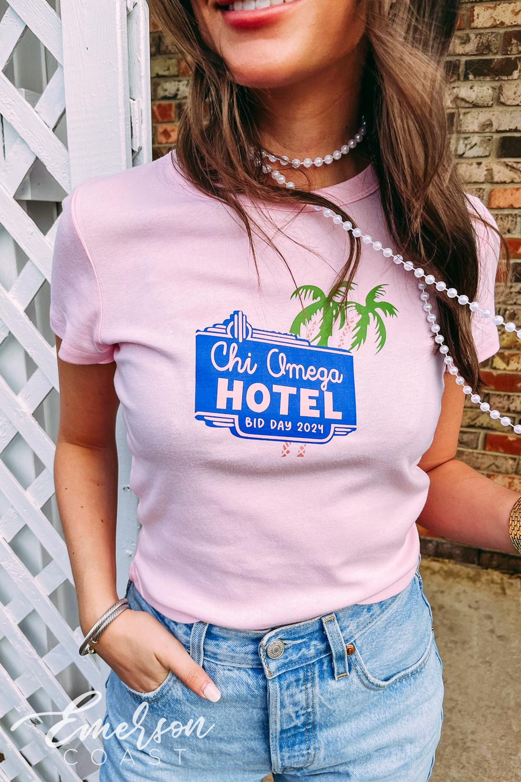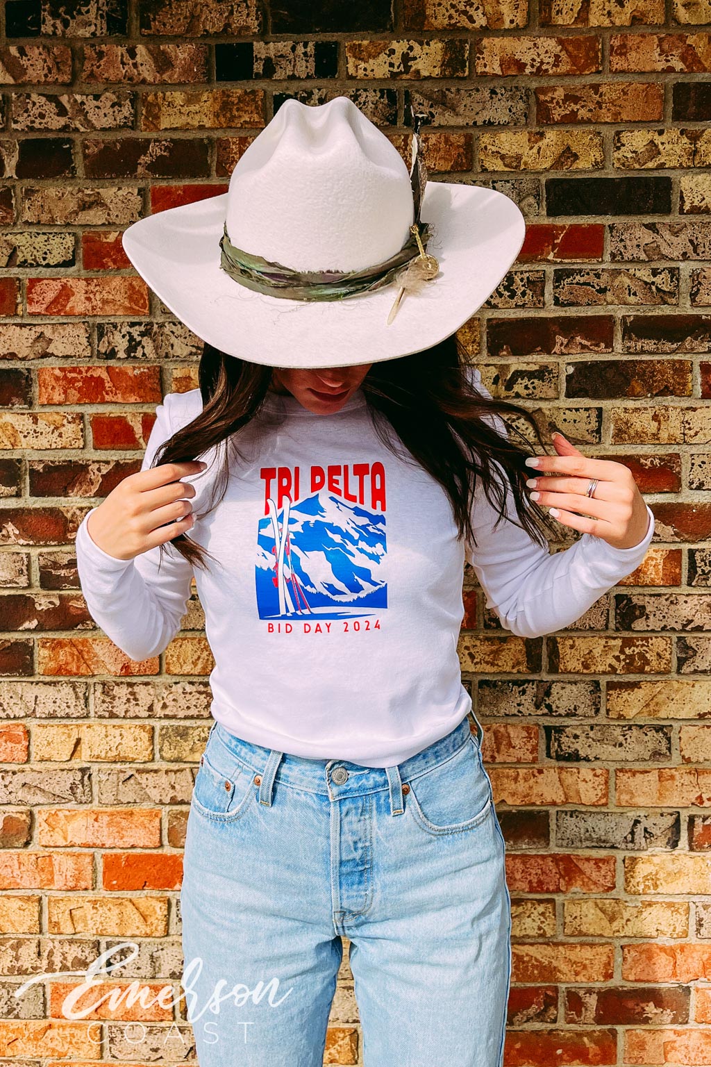 KKG at Florida State kept it effortlessly cool for Open Round with white slouchy tees styled with classic denim. Simple, chic, and easy to accessorize — the perfect uniform for making first impressions and showing off their signature style.