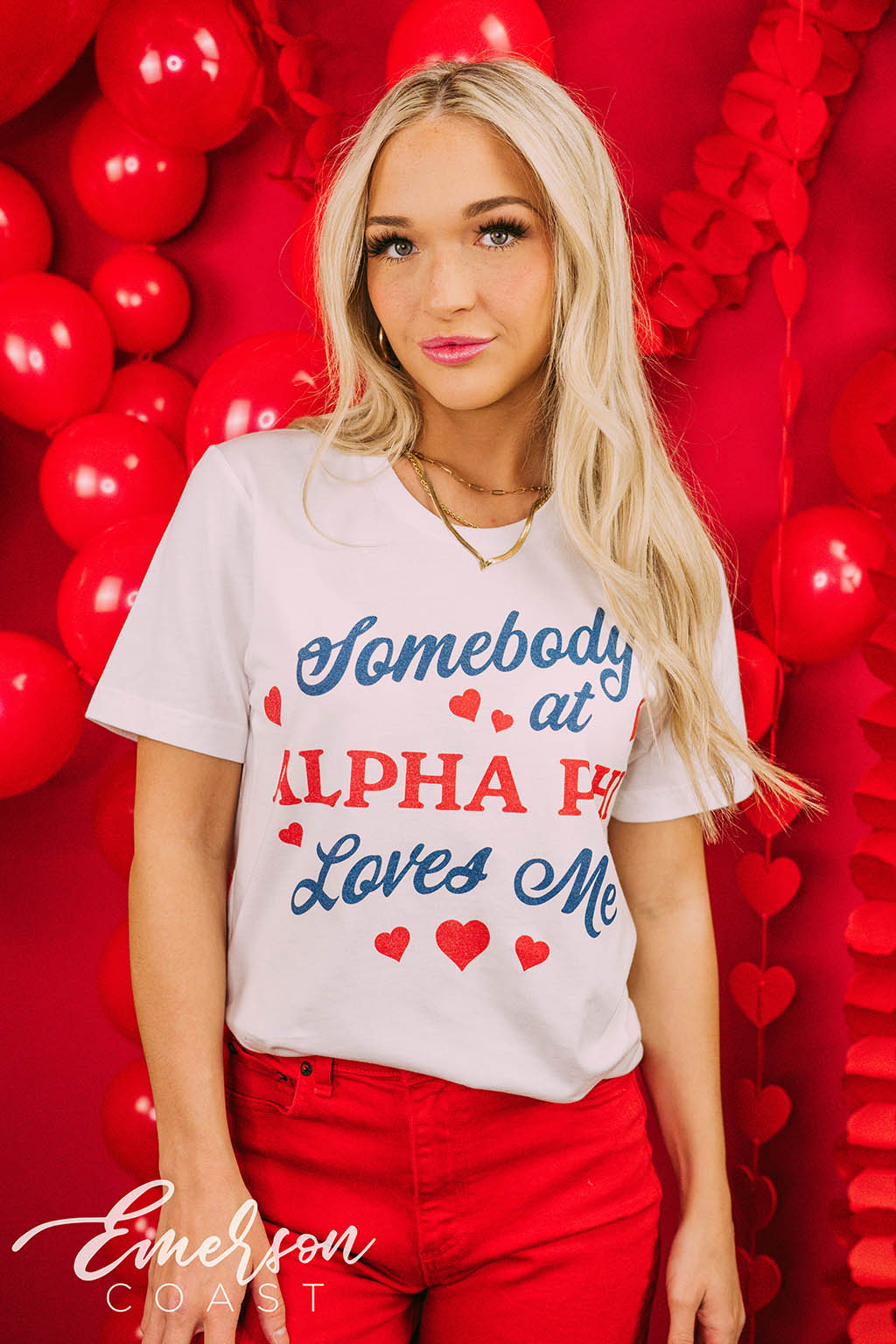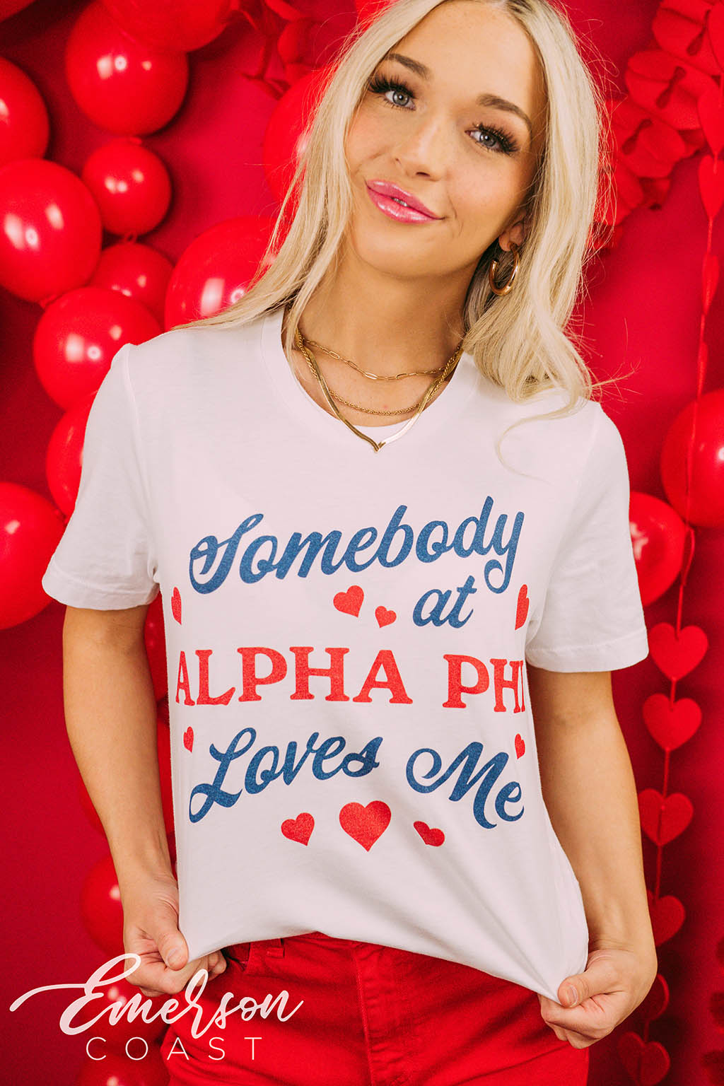 Pi Phi at Auburn made hearts melt with their white baby tees for Bid Day, featuring a sweet red heart and the phrase “I’m so happy we met.” A perfect, feel-good look to kick off sisterhood with major charm.