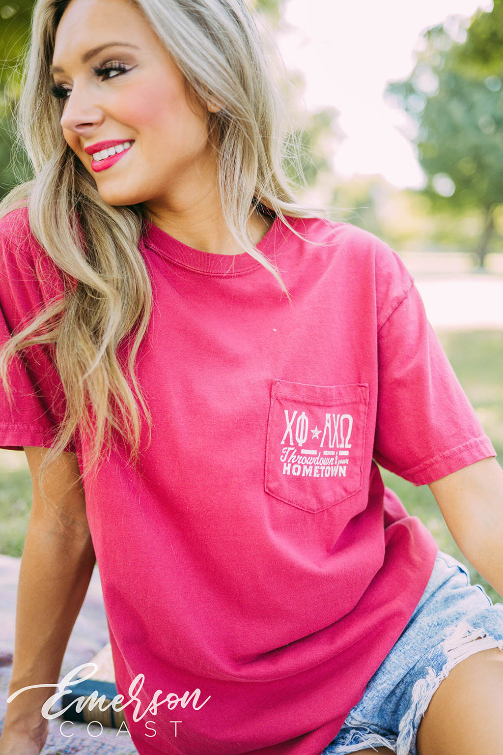Pi Phi at Auburn made hearts melt with their white baby tees for Bid Day, featuring a sweet red heart and the phrase “I’m so happy we met.” A perfect, feel-good look to kick off sisterhood with major charm.