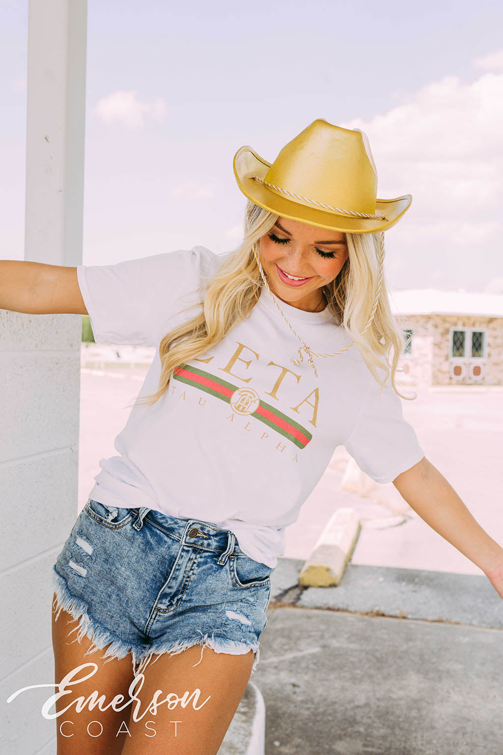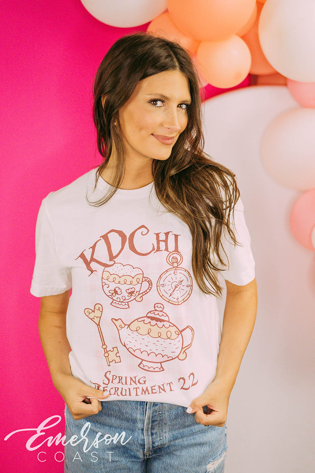 KKG at Florida State kept it effortlessly cool for Open Round with white slouchy tees styled with classic denim. Simple, chic, and easy to accessorize — the perfect uniform for making first impressions and showing off their signature style.