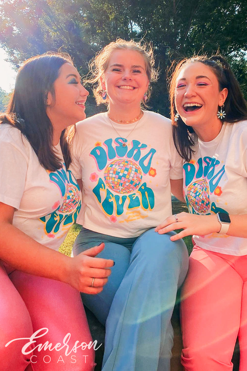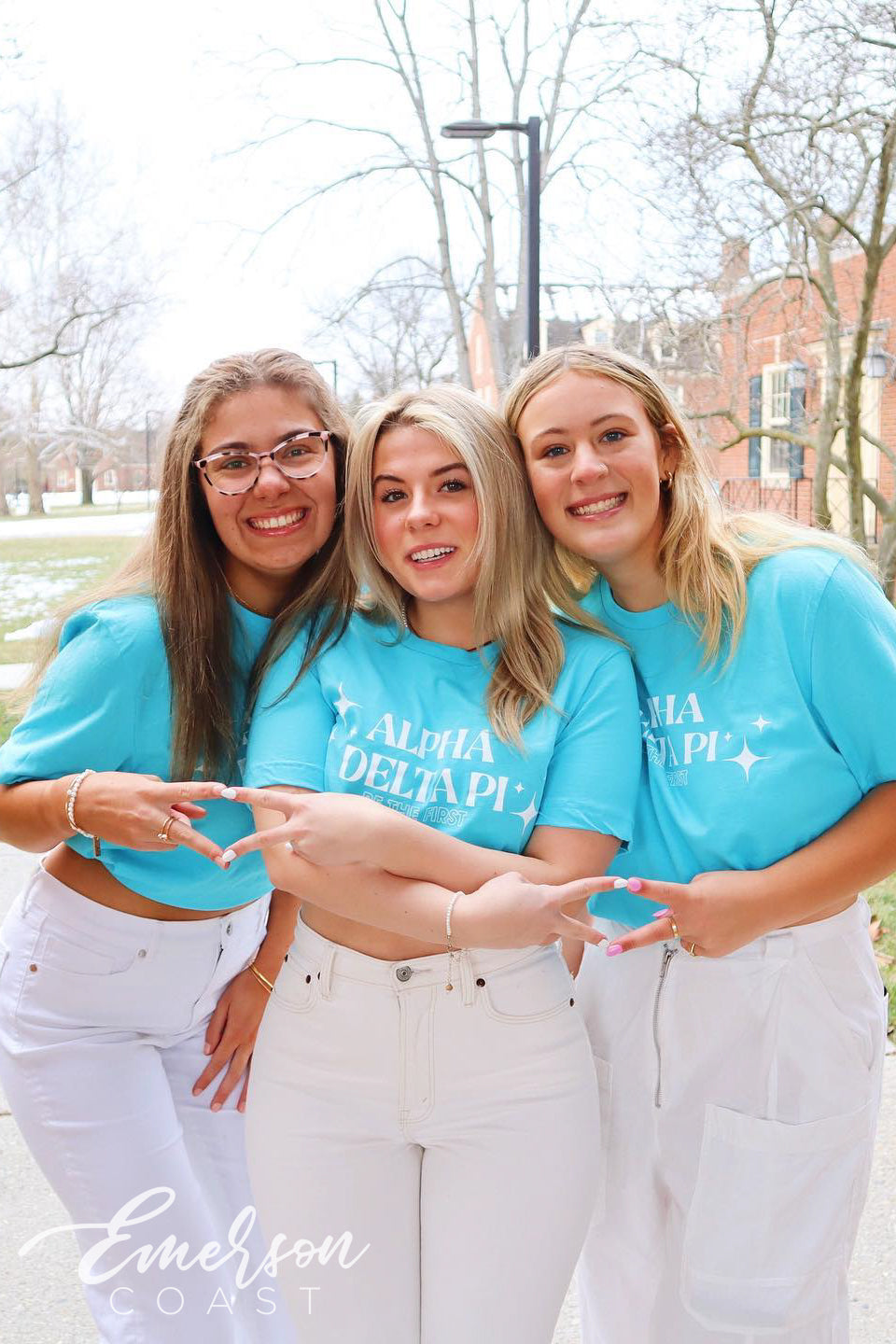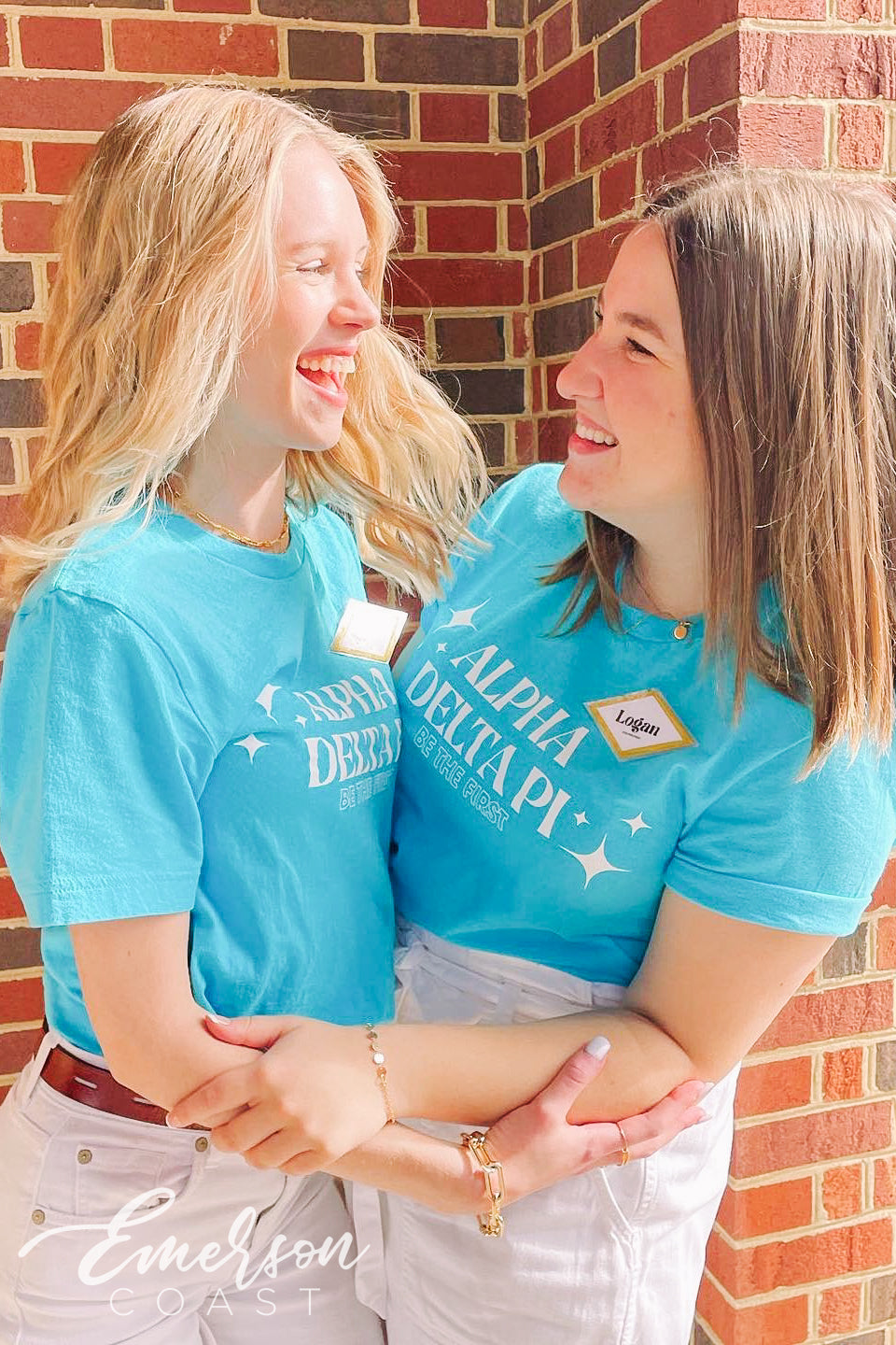 Pi Phi at Auburn made hearts melt with their white baby tees for Bid Day, featuring a sweet red heart and the phrase “I’m so happy we met.” A perfect, feel-good look to kick off sisterhood with major charm.
