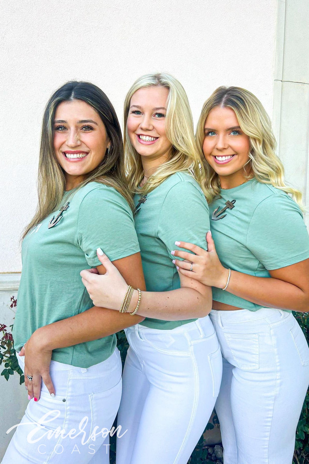 KKG at Florida State kept it effortlessly cool for Open Round with white slouchy tees styled with classic denim. Simple, chic, and easy to accessorize — the perfect uniform for making first impressions and showing off their signature style.